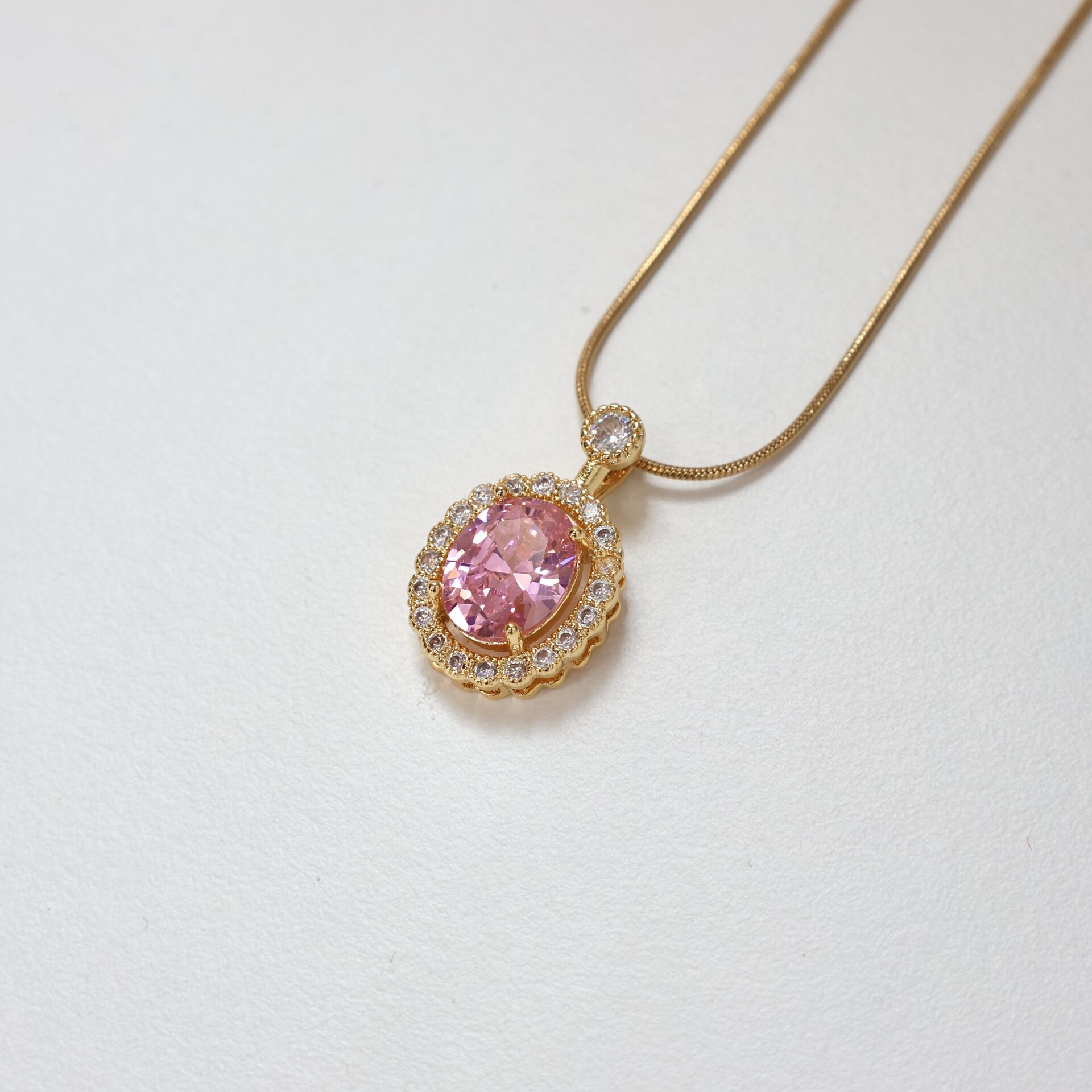Çelik Pembe Taşlı Kolye