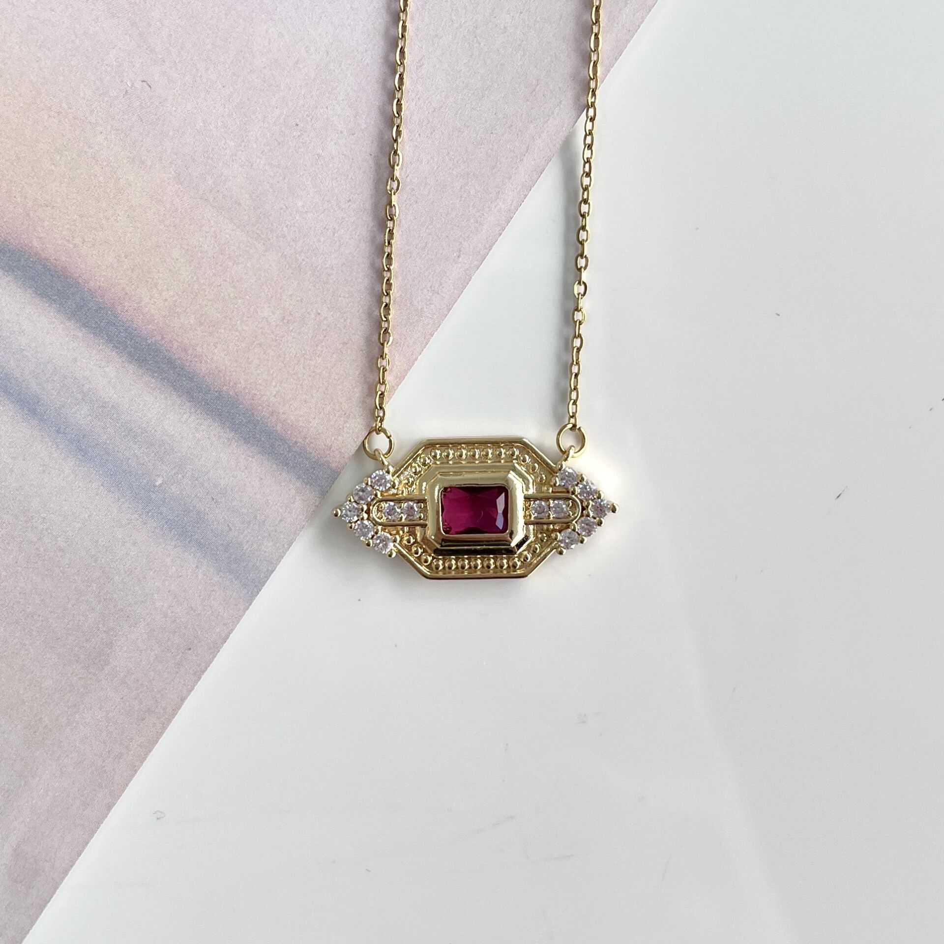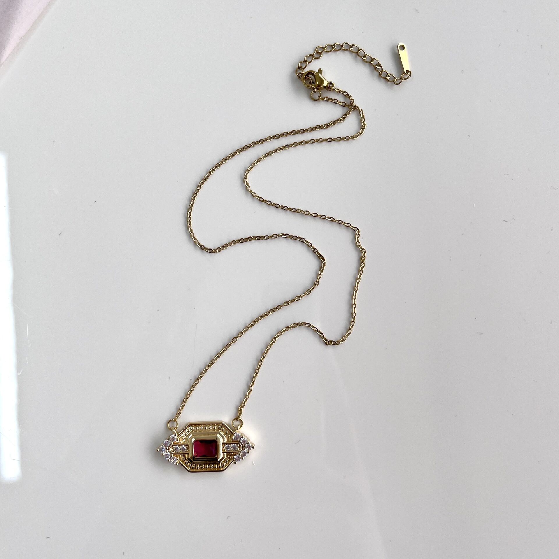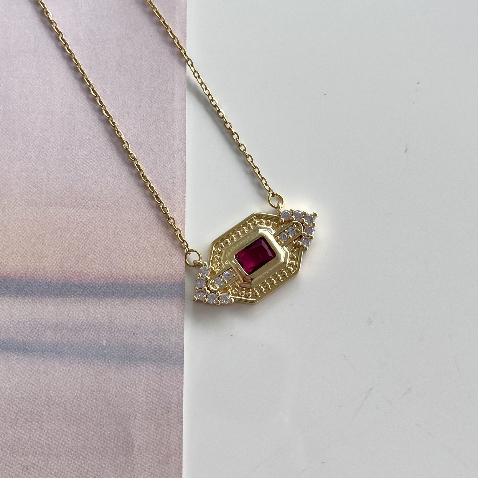 Çelik Pembe Taşlı Kolye