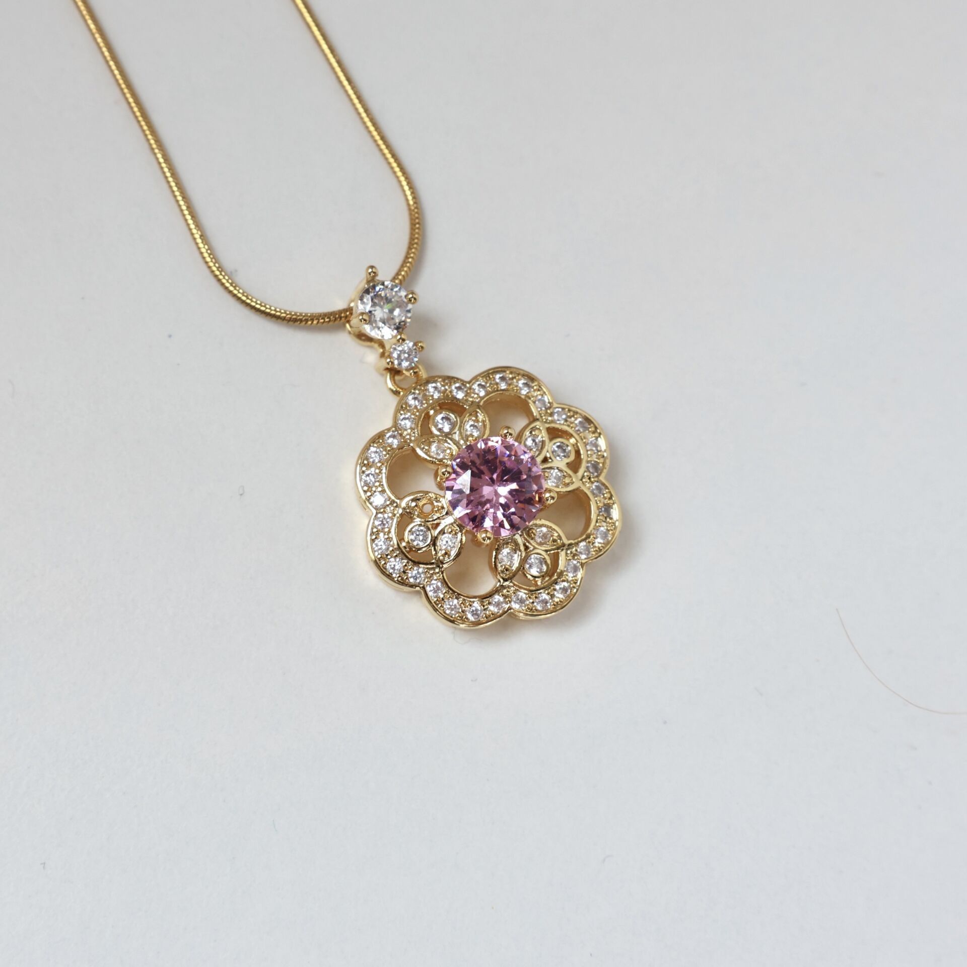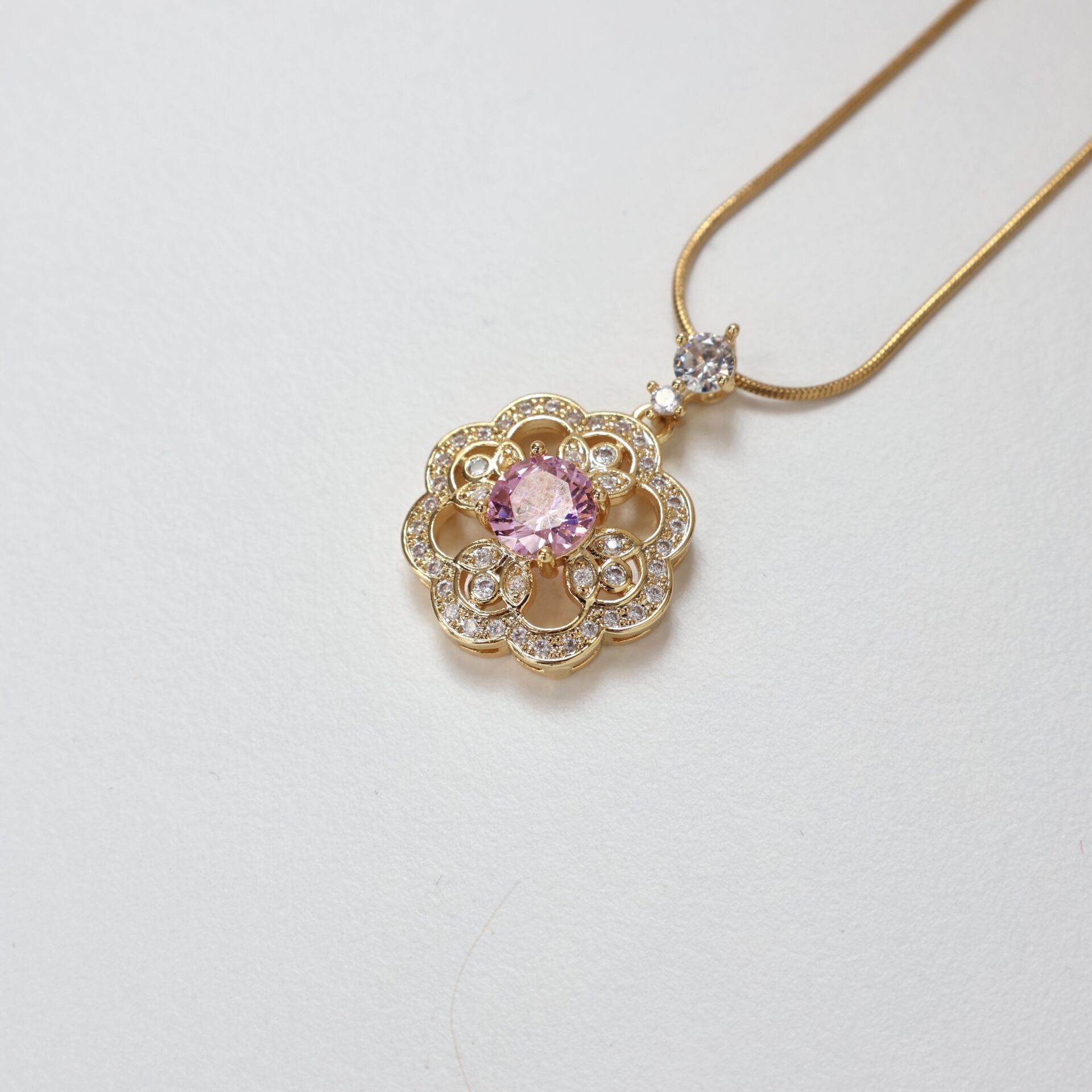 Çelik Pembe Taşlı Kolye