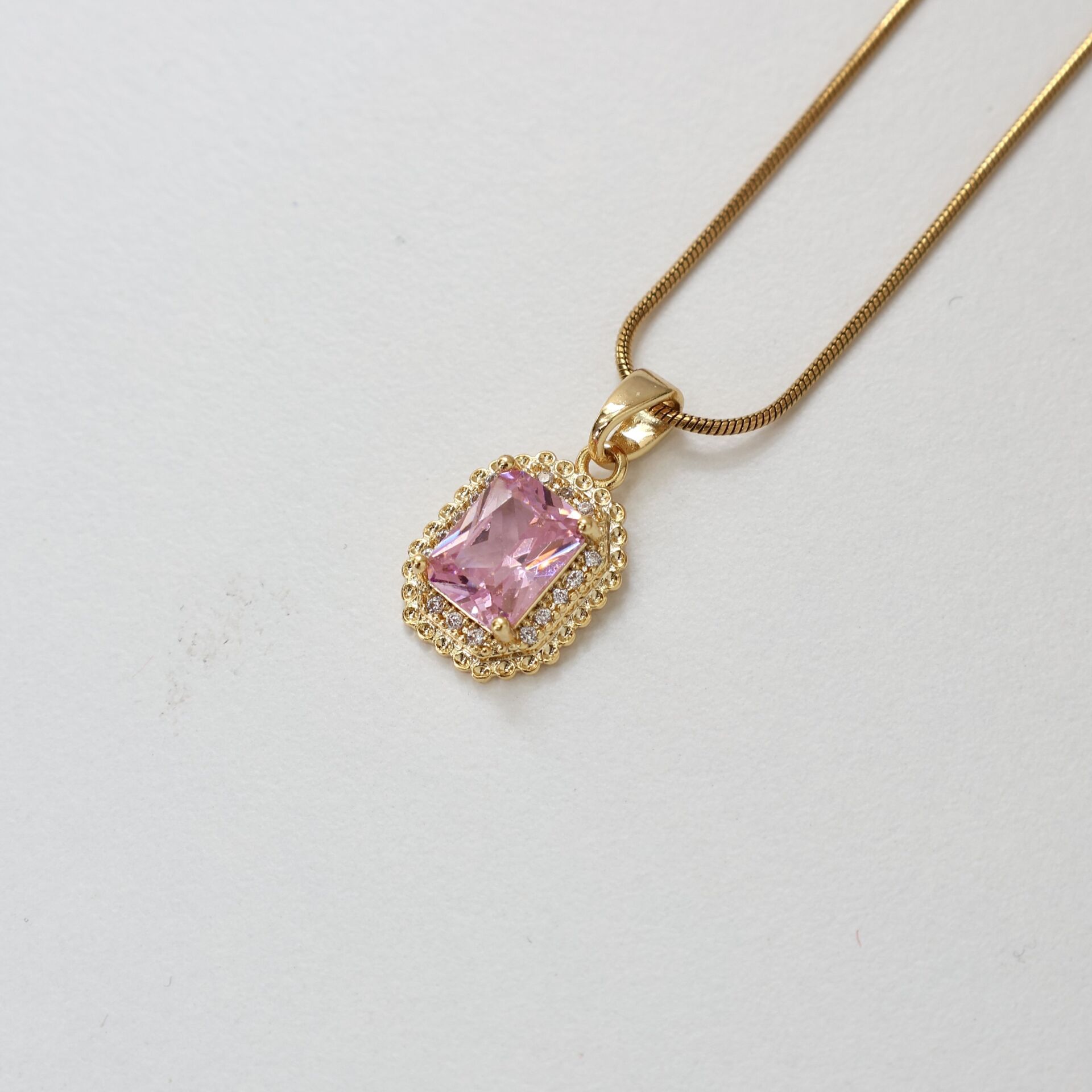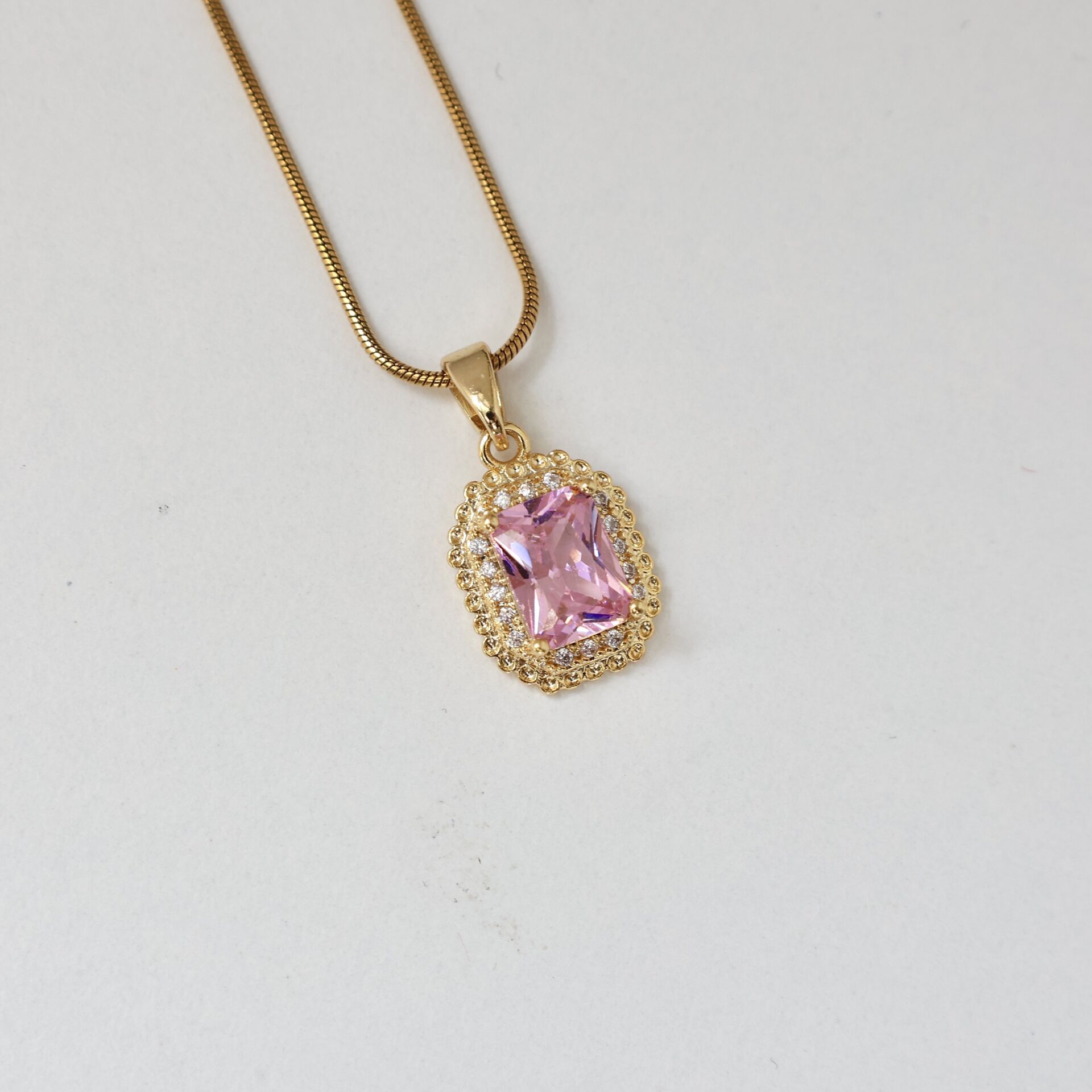 Çelik Pembe Taşlı Kolye