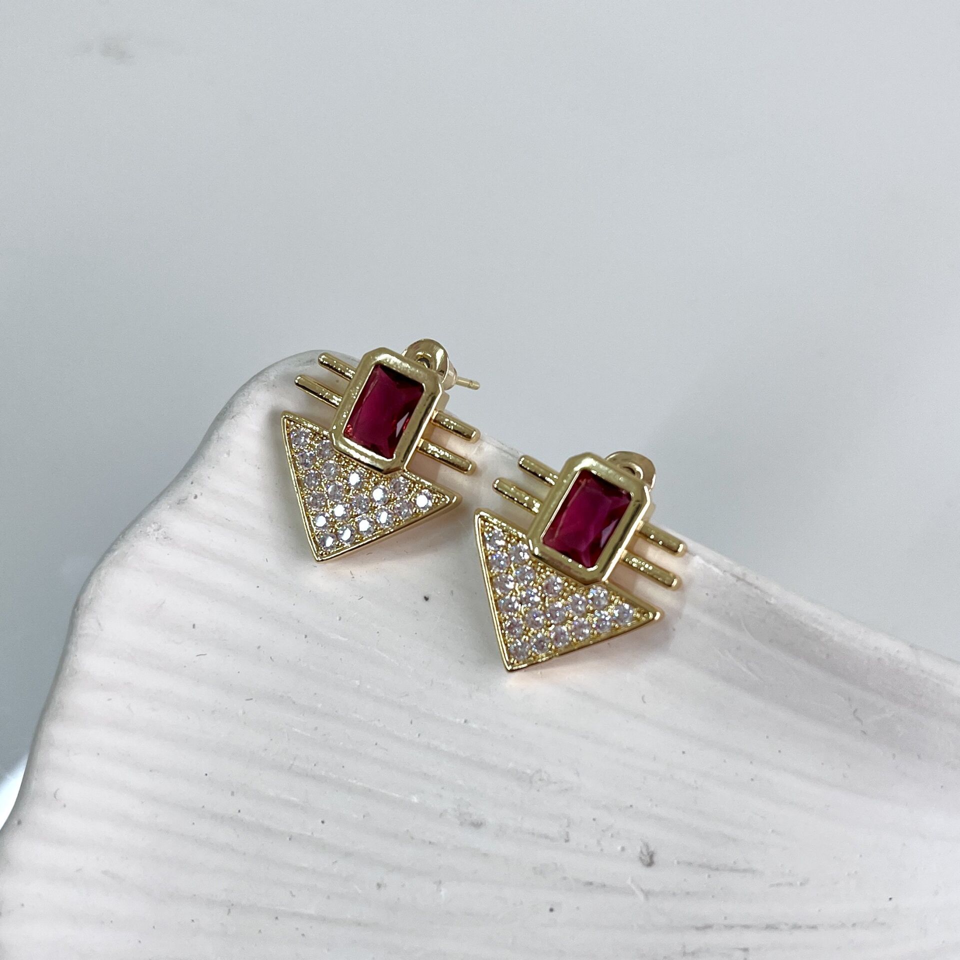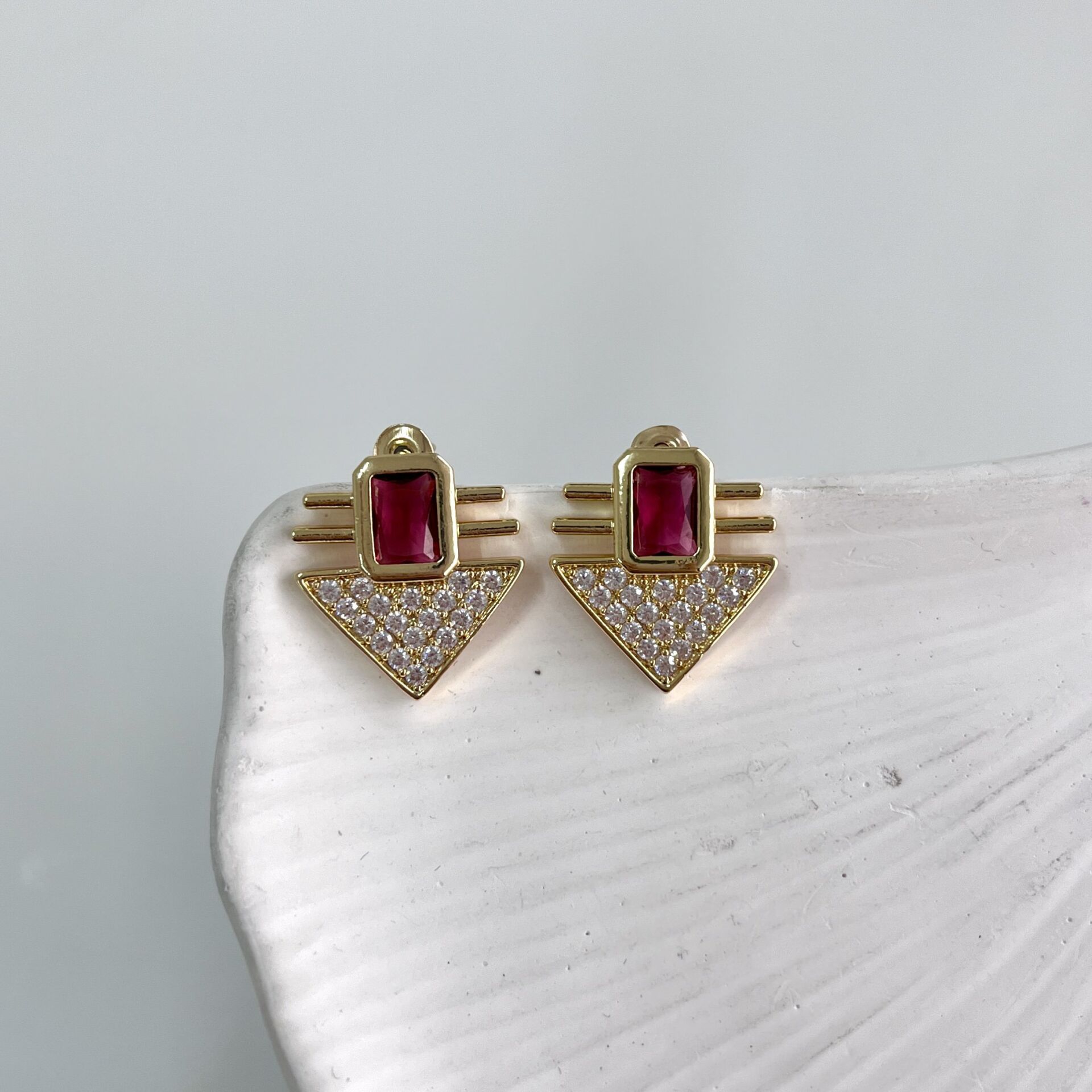Çelik Pembe Taşlı Küpe
