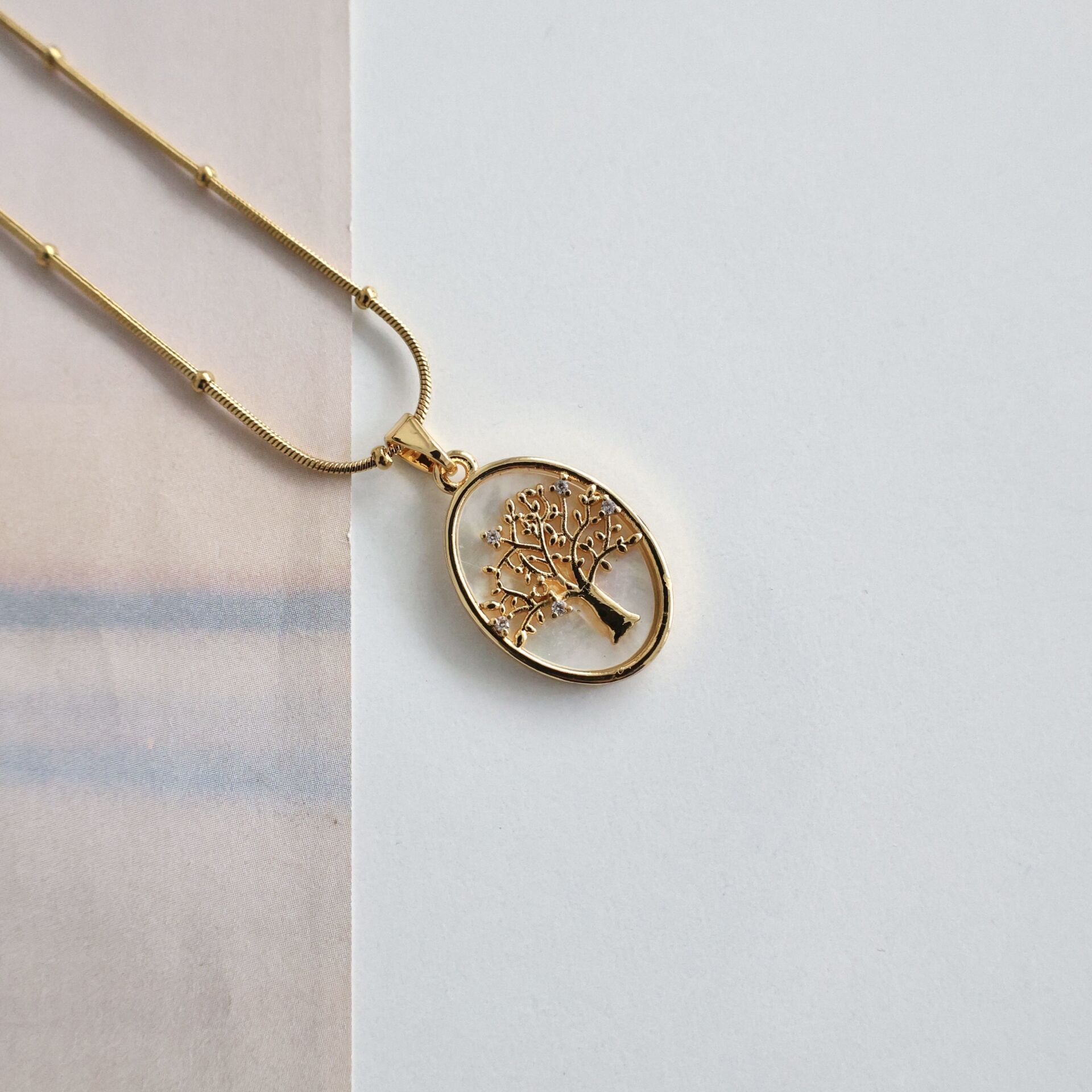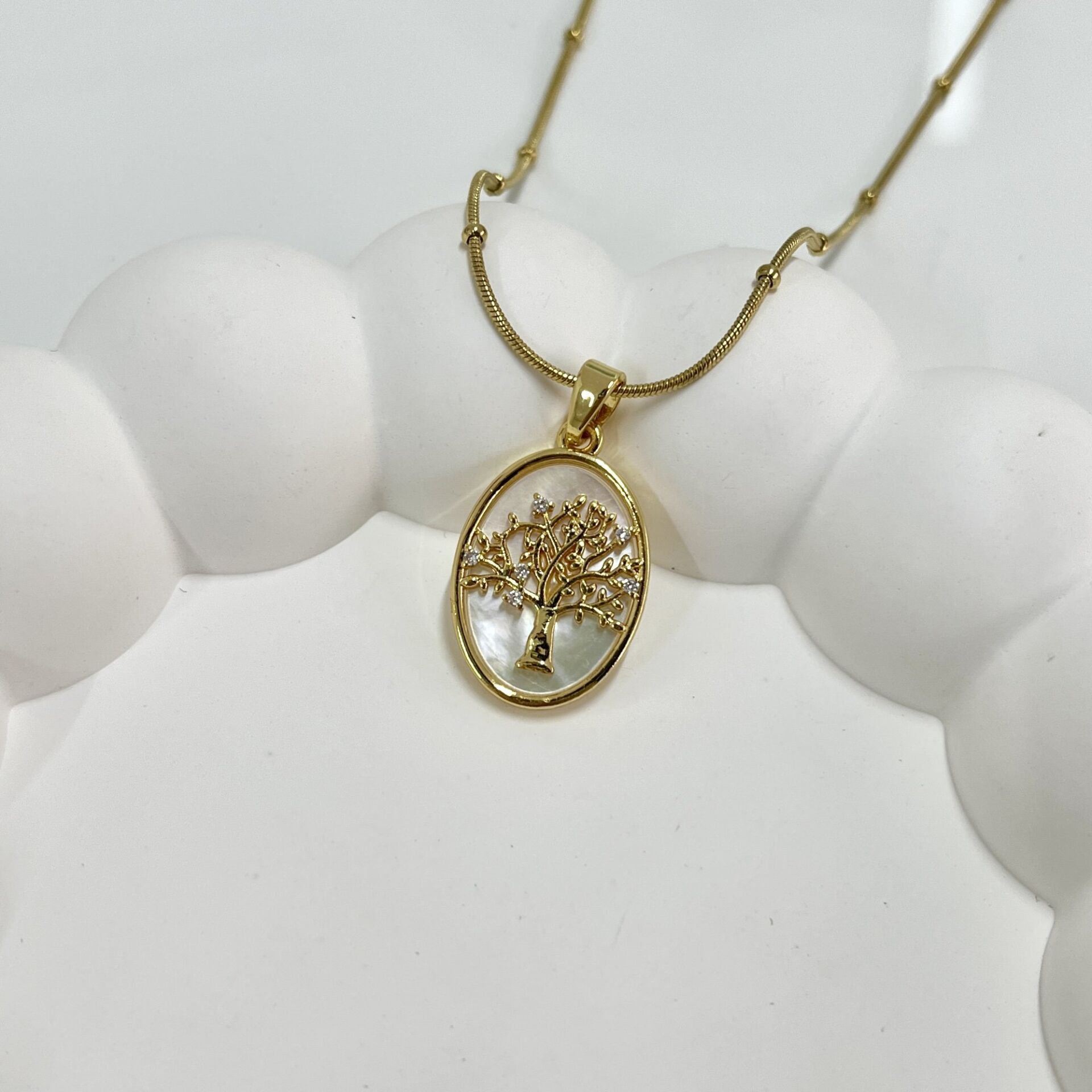 Çelik Sedef Taşı Ağaç Kolye