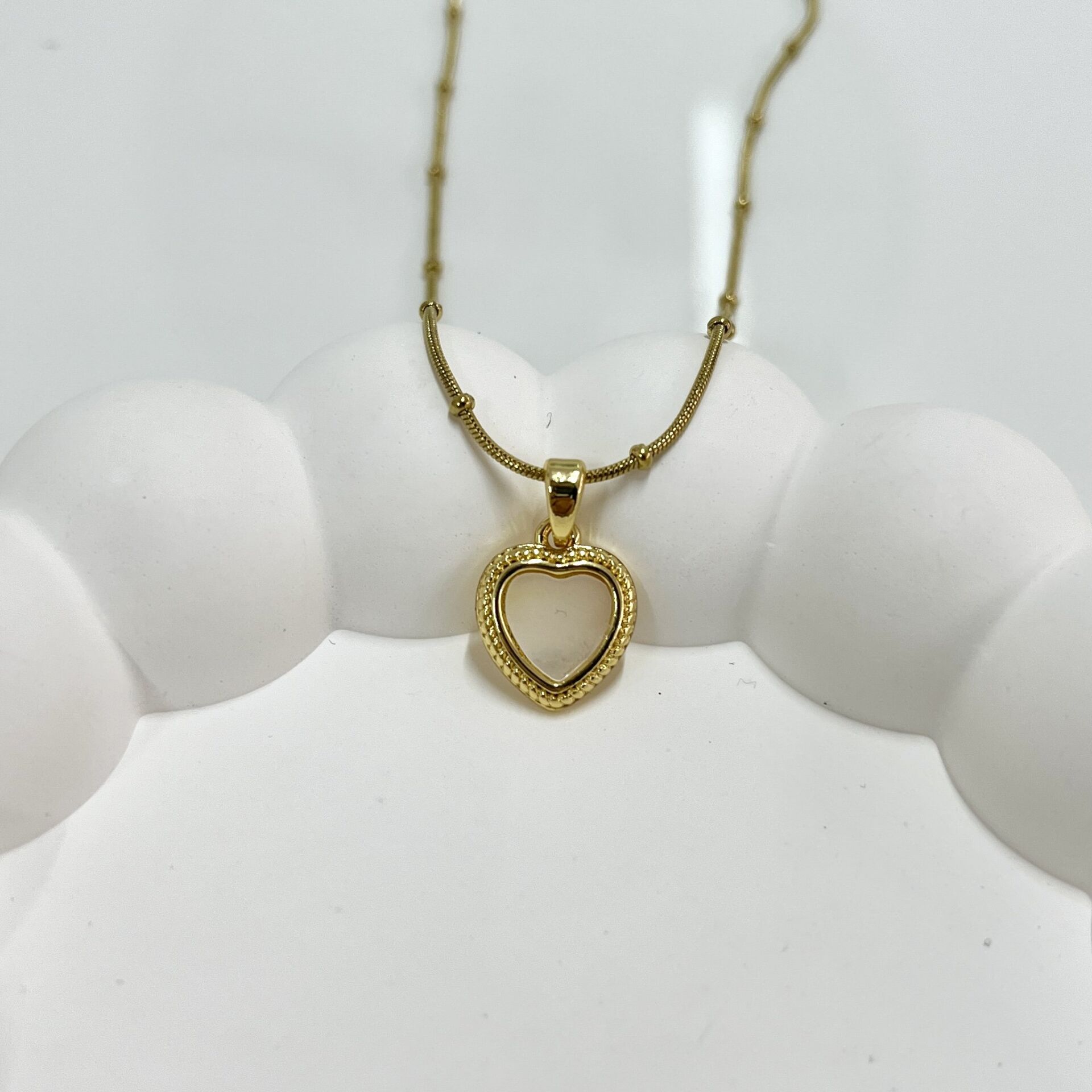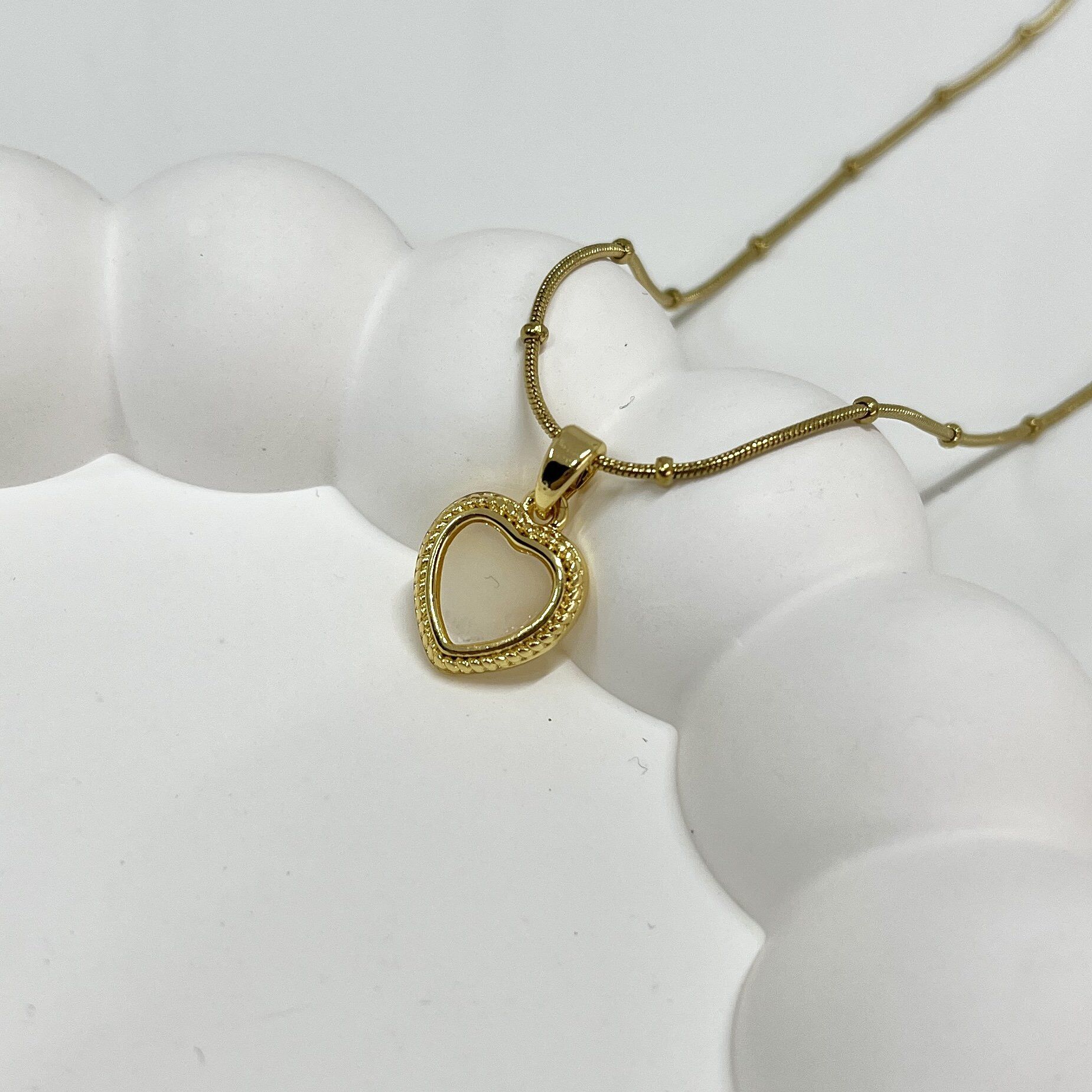 Çelik Sedef Taşı Kalp Kolye