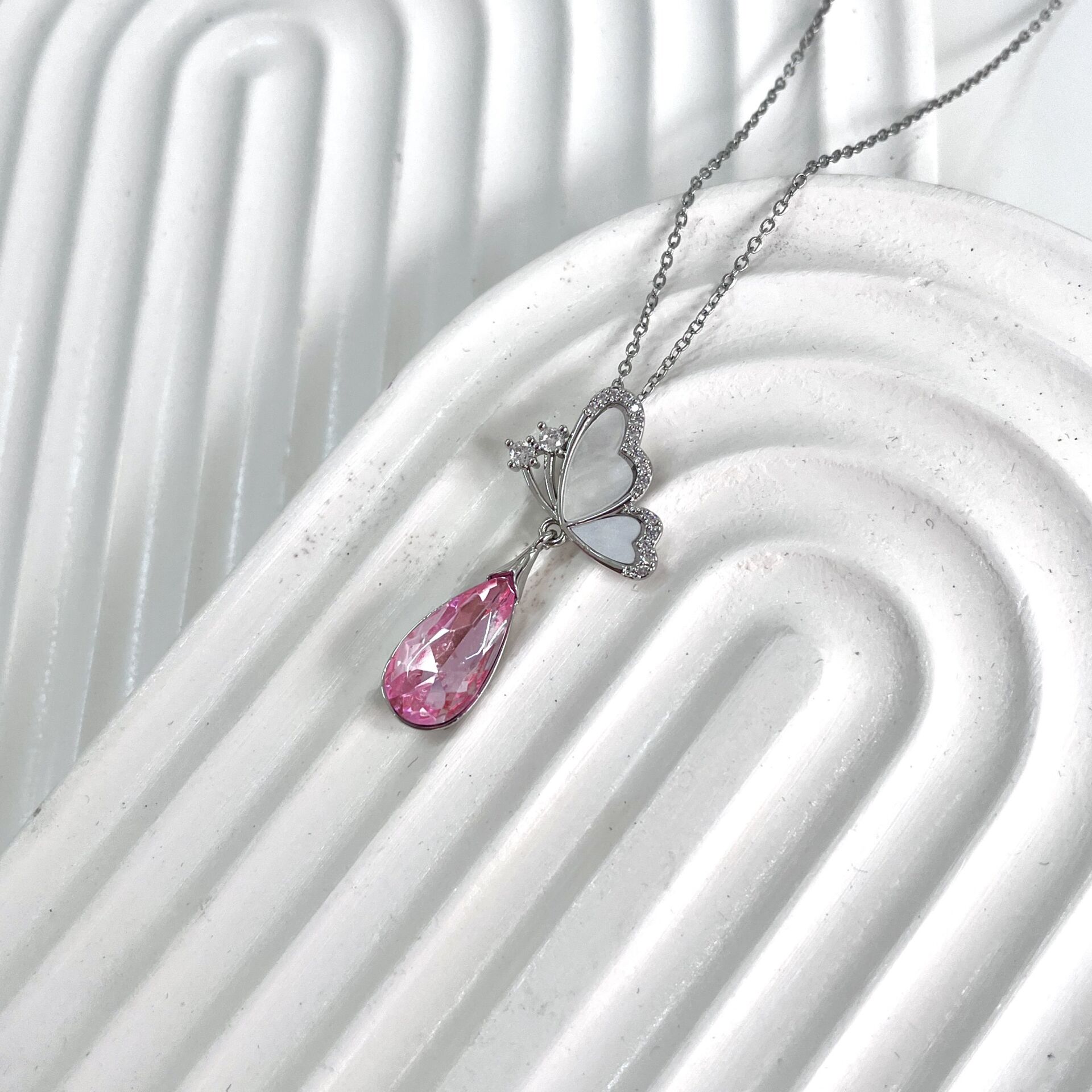 Çelik Sedef Taşı Kelebek Kolye M3EH6E6VC8 Çelik Sedef Taşı Kelebek Kolye