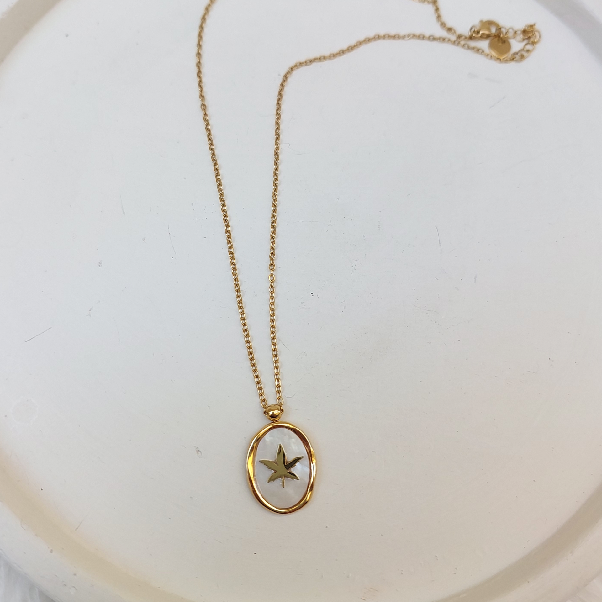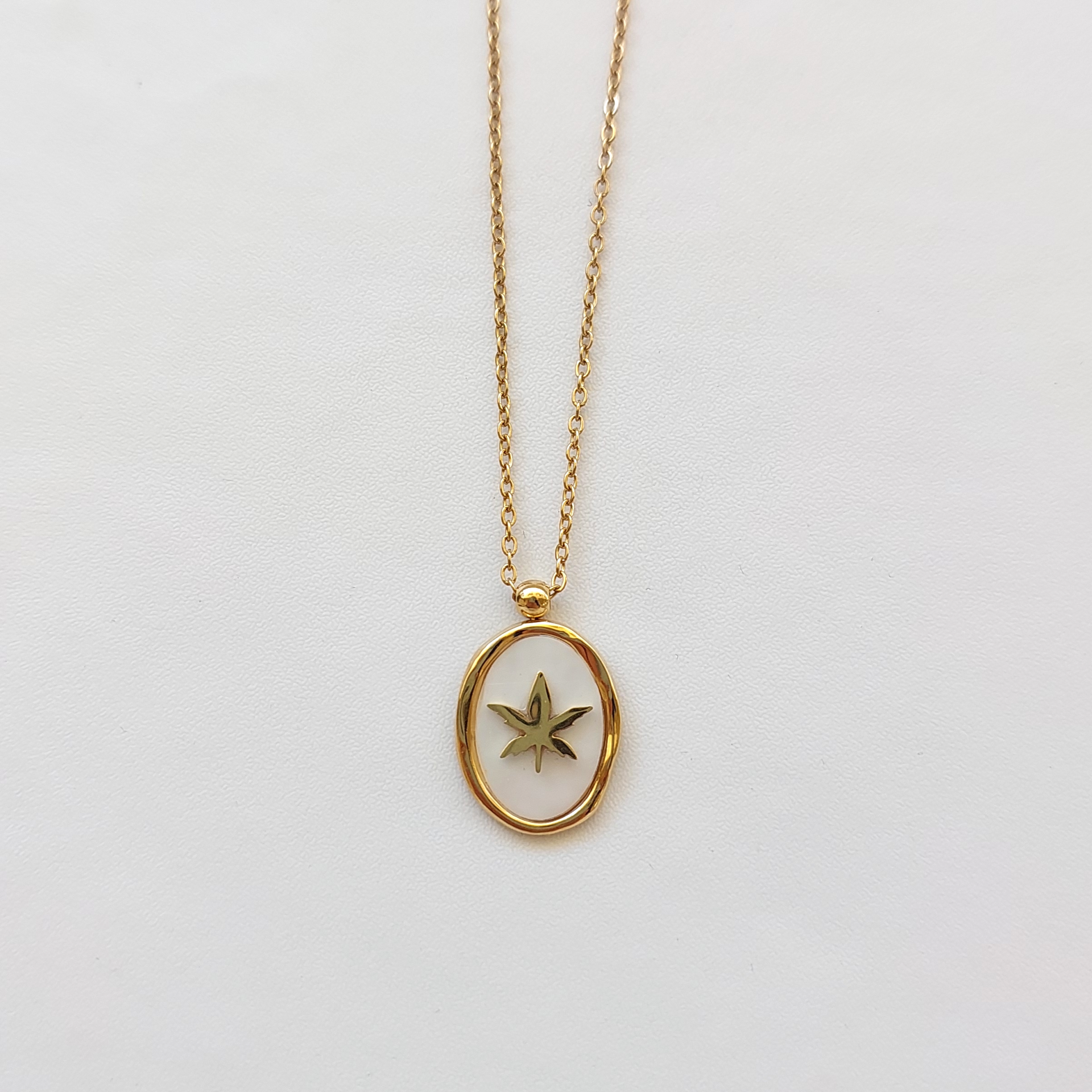 Çelik Sedef Taşı Yaprak Kolye