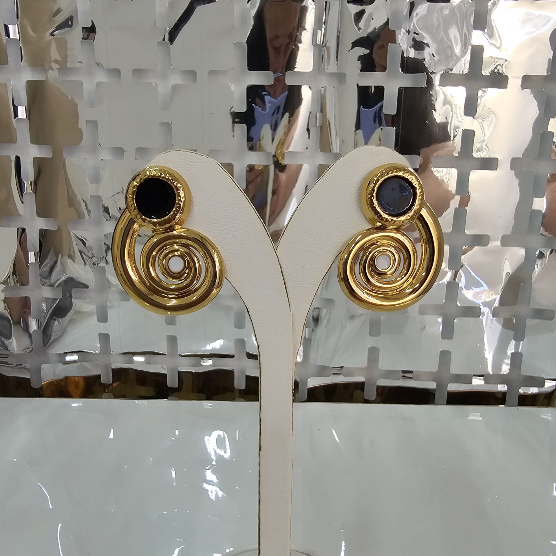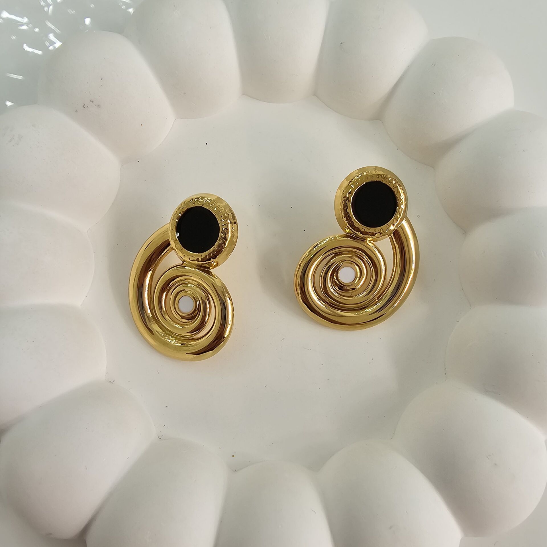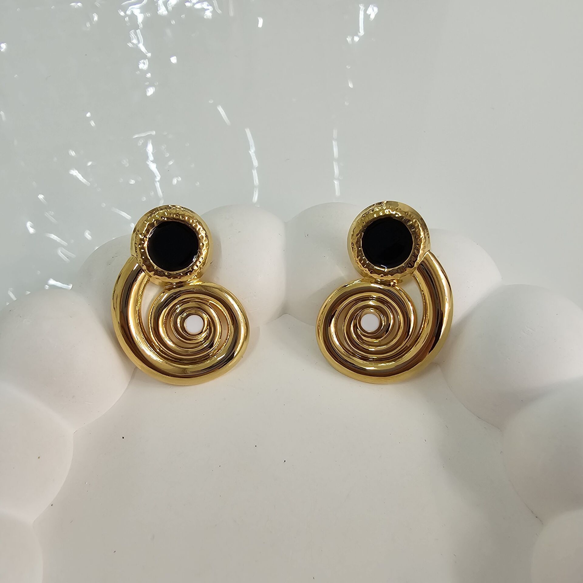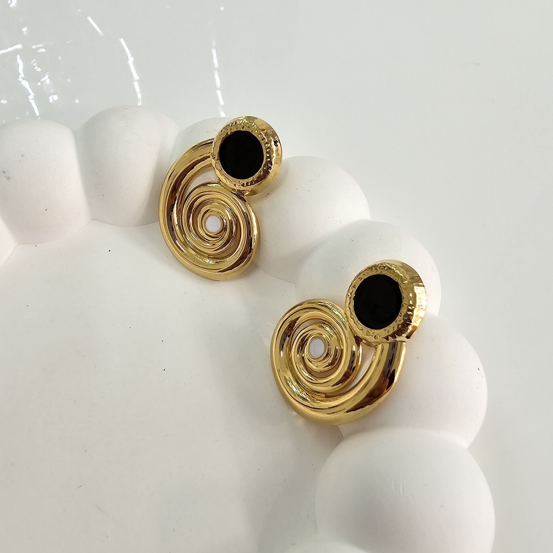 Çelik Siyah Beyaz Mineli Küpe