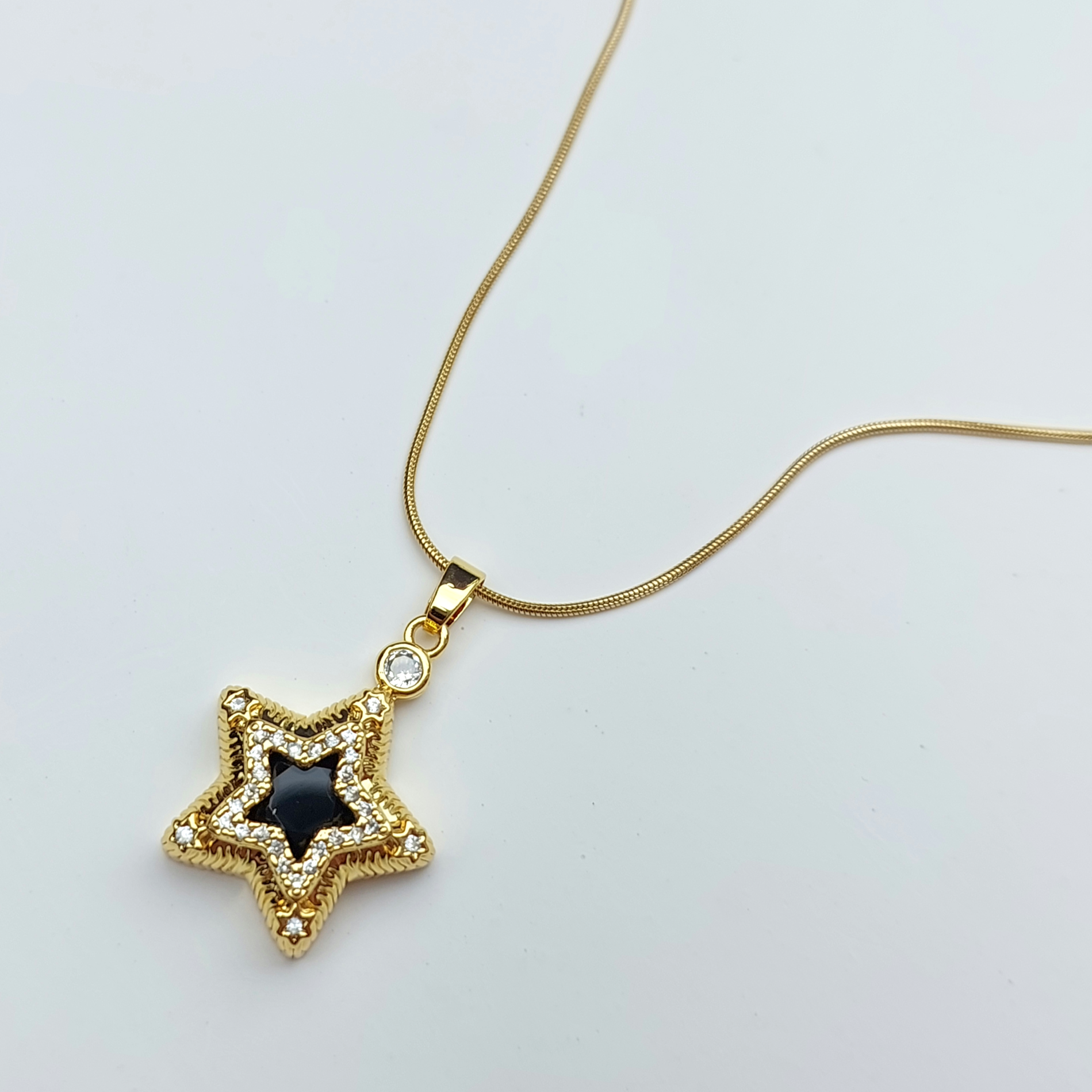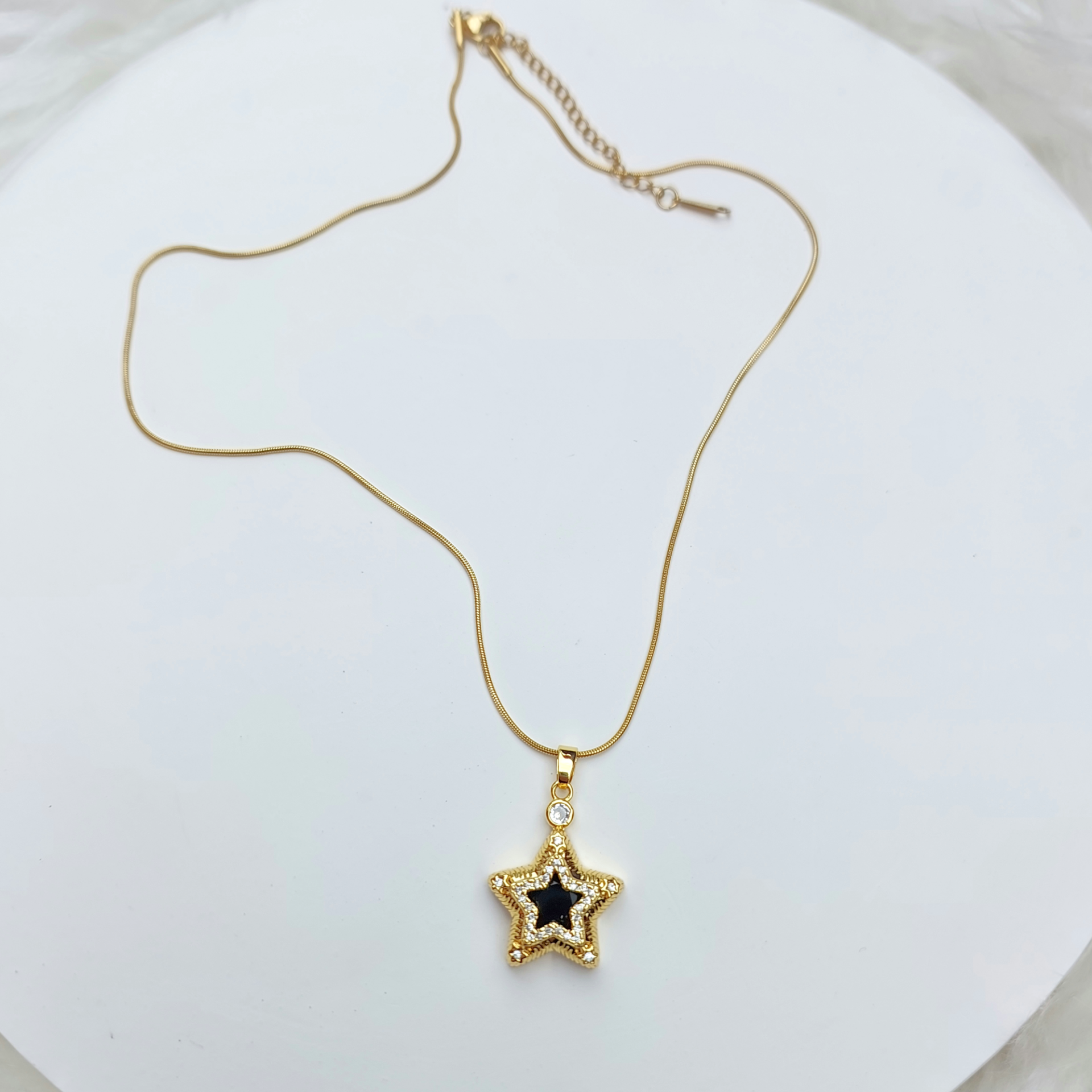 Çelik Siyah Taşlı Yıldız Kolye