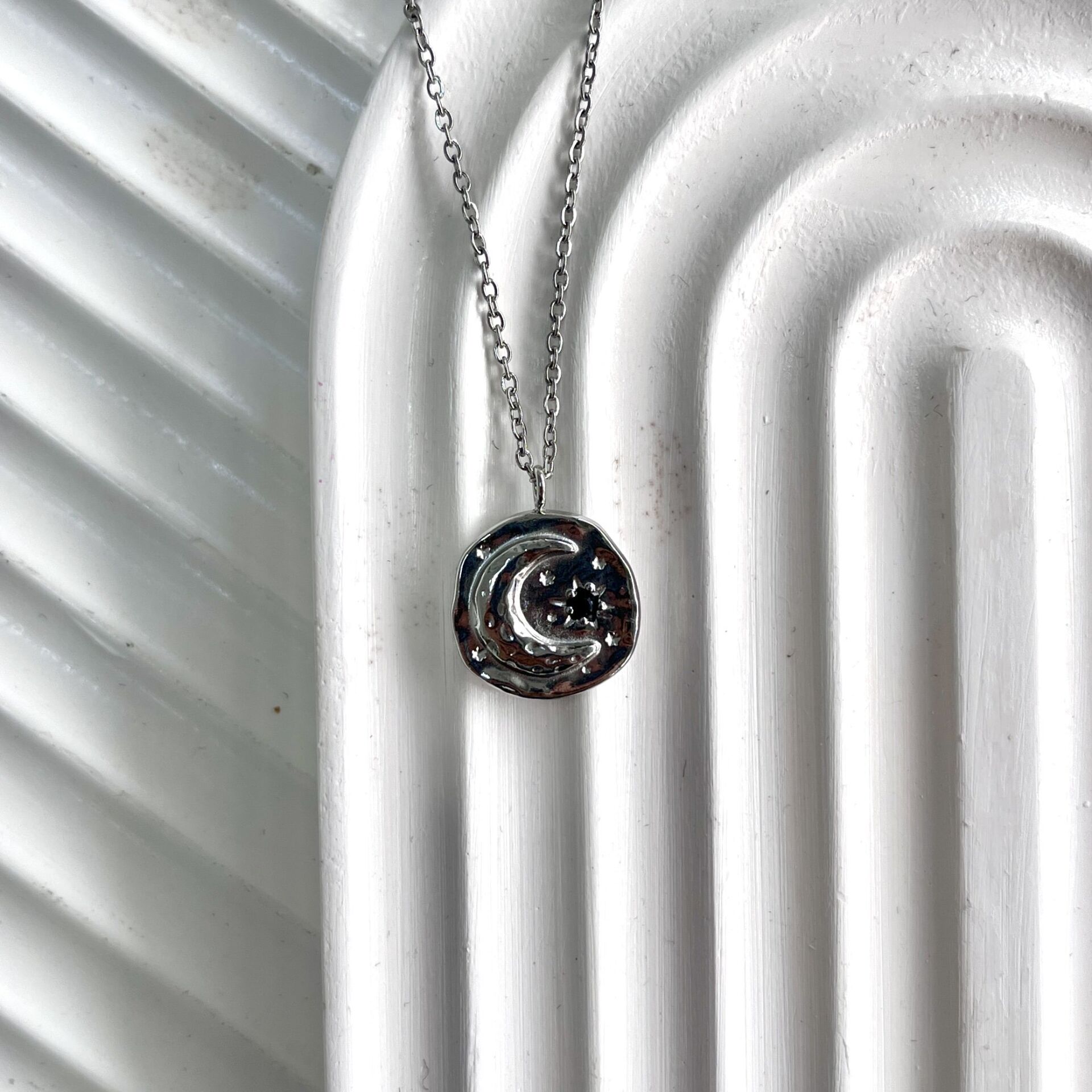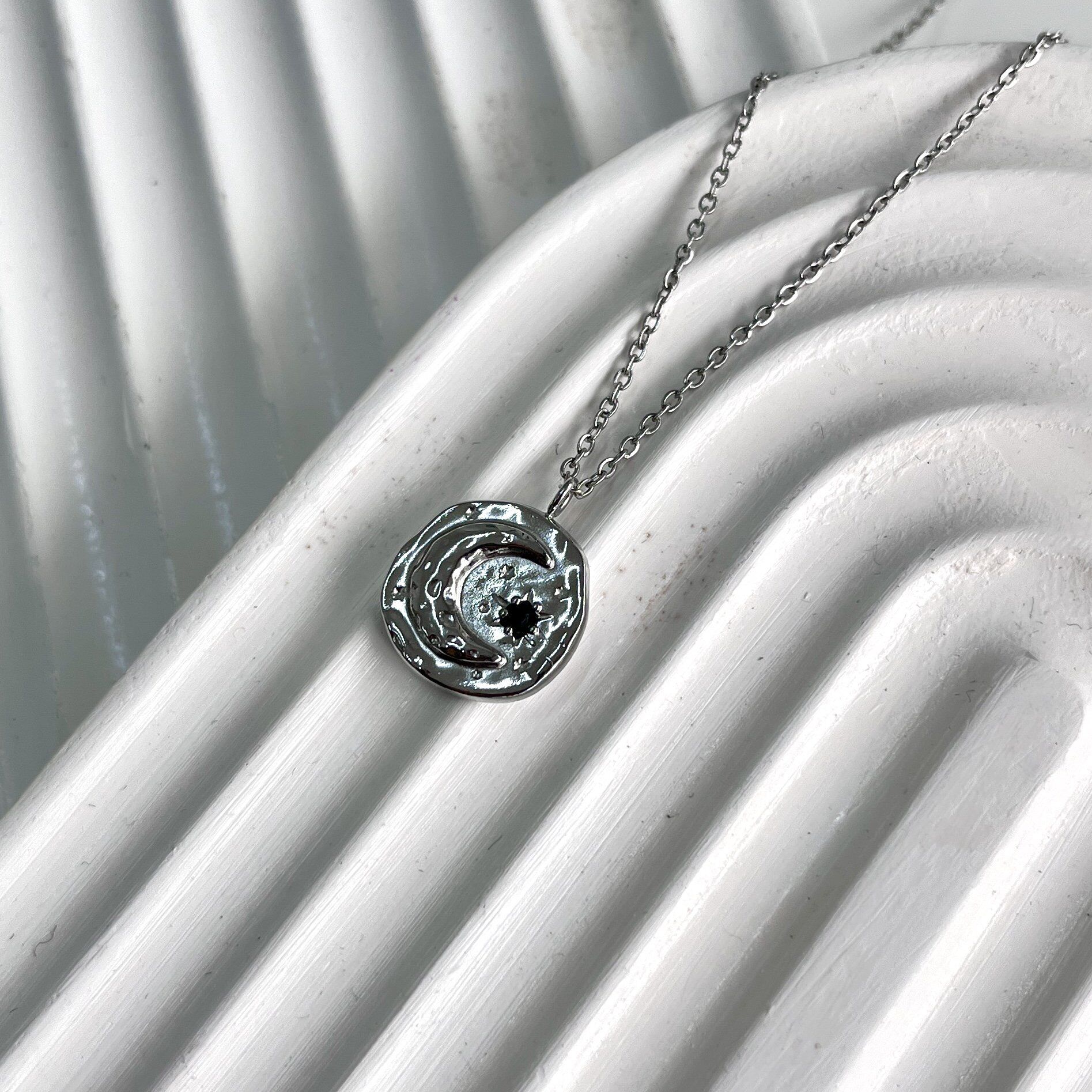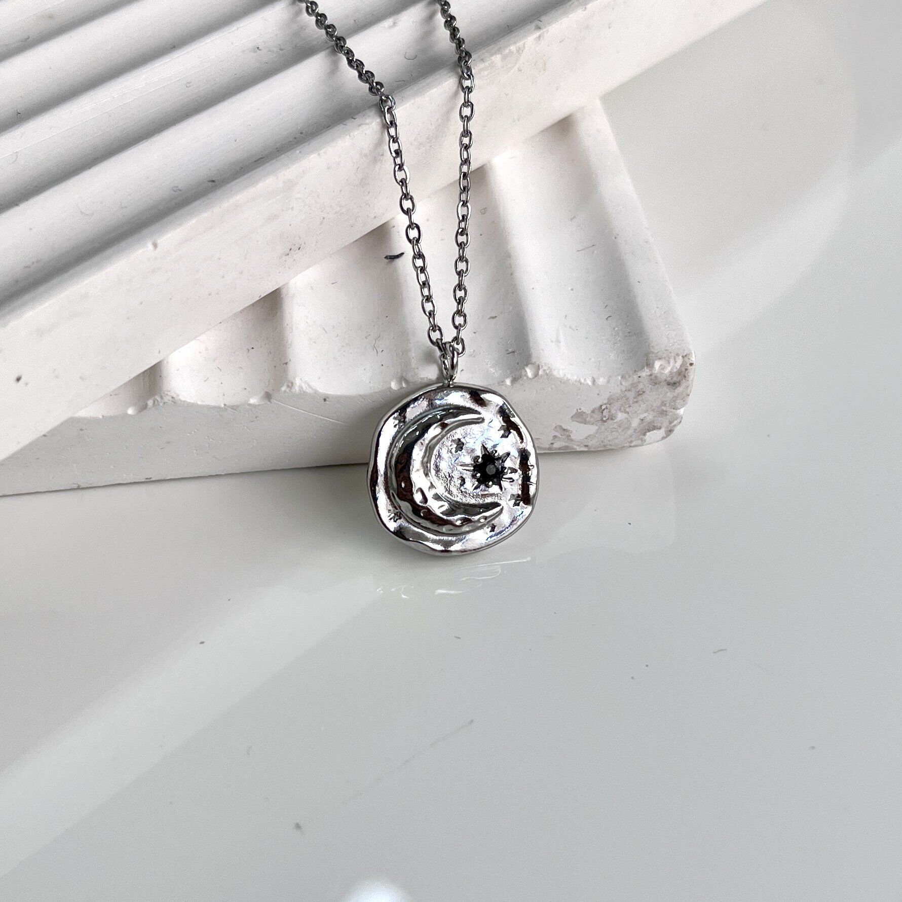 Çelik Taşlı Ay Kolye