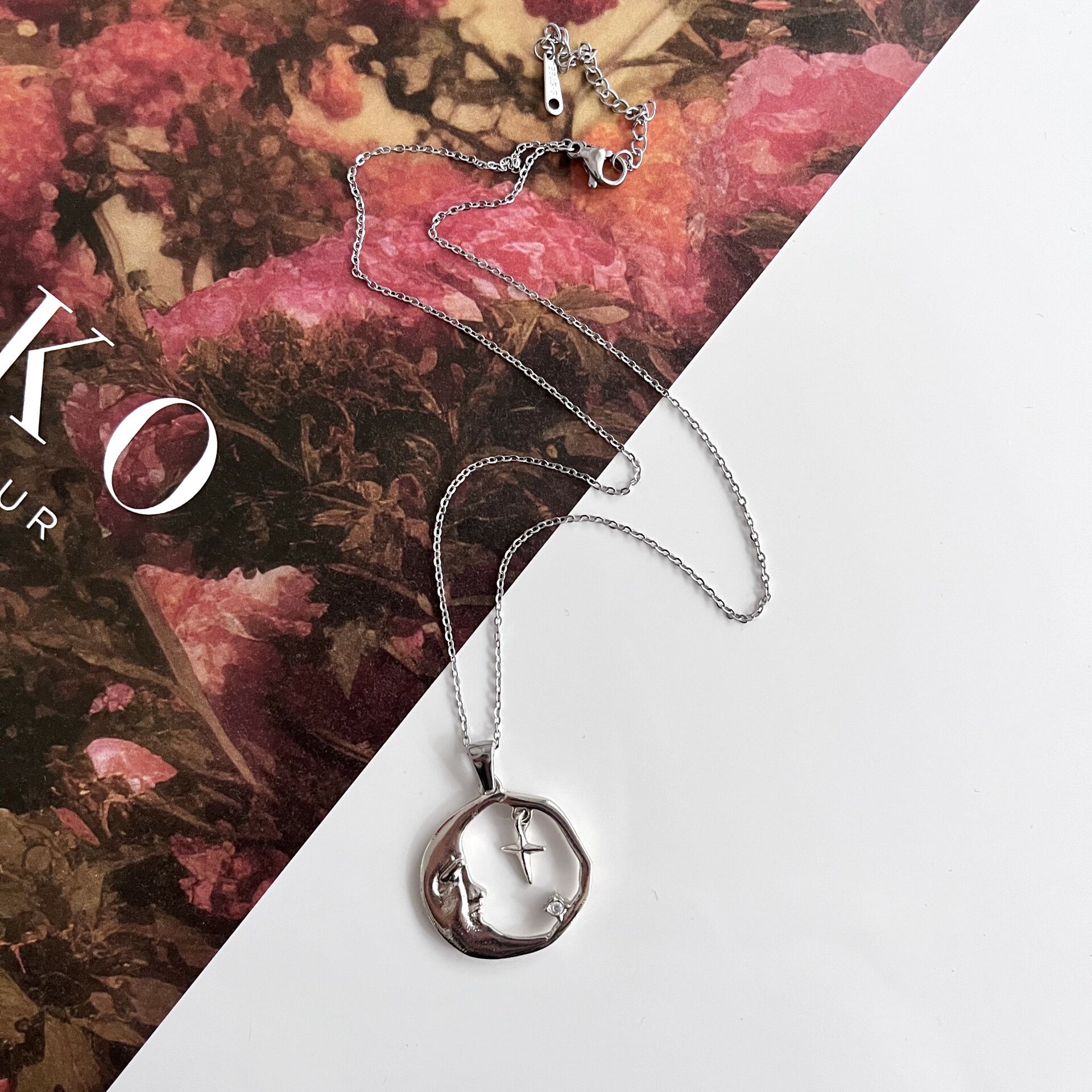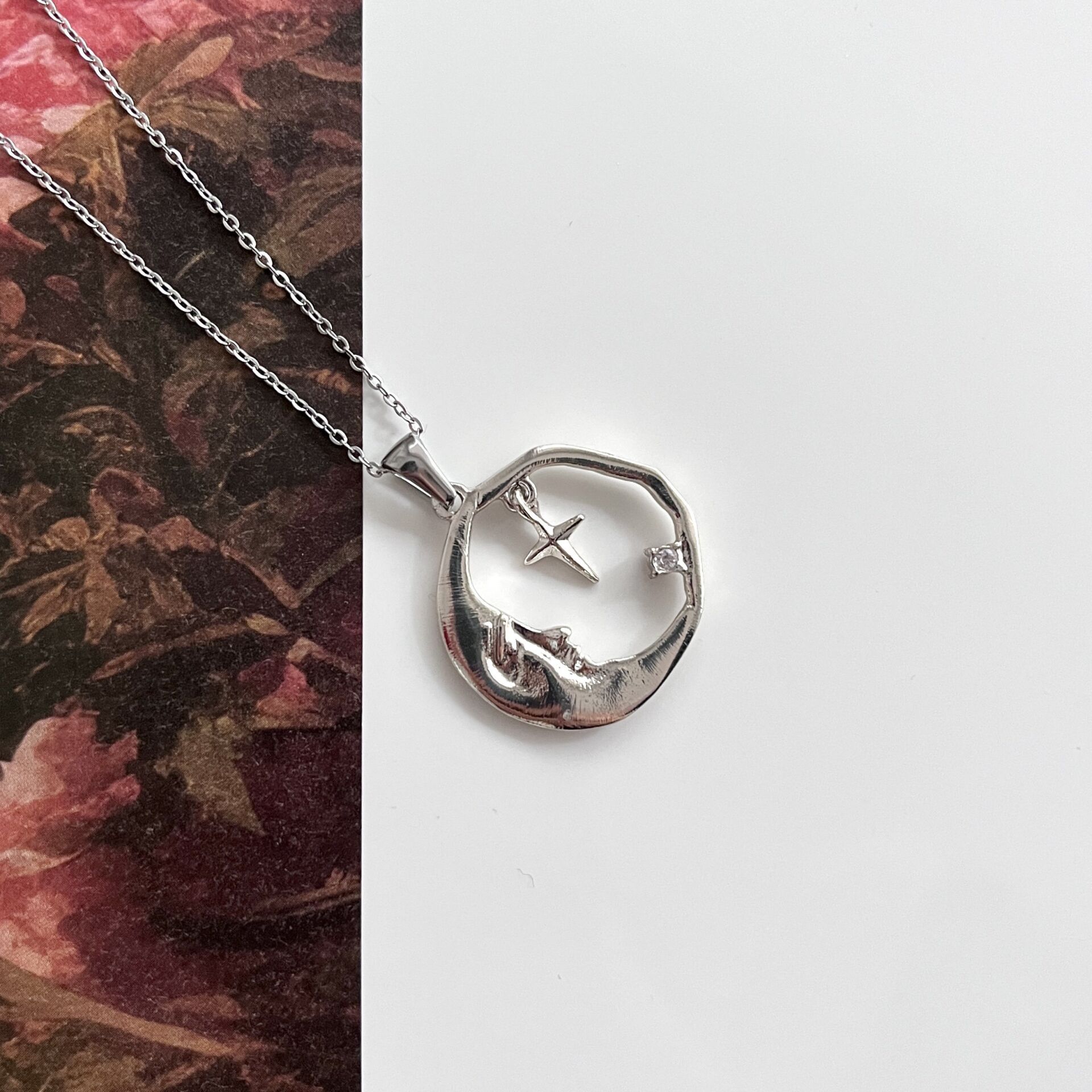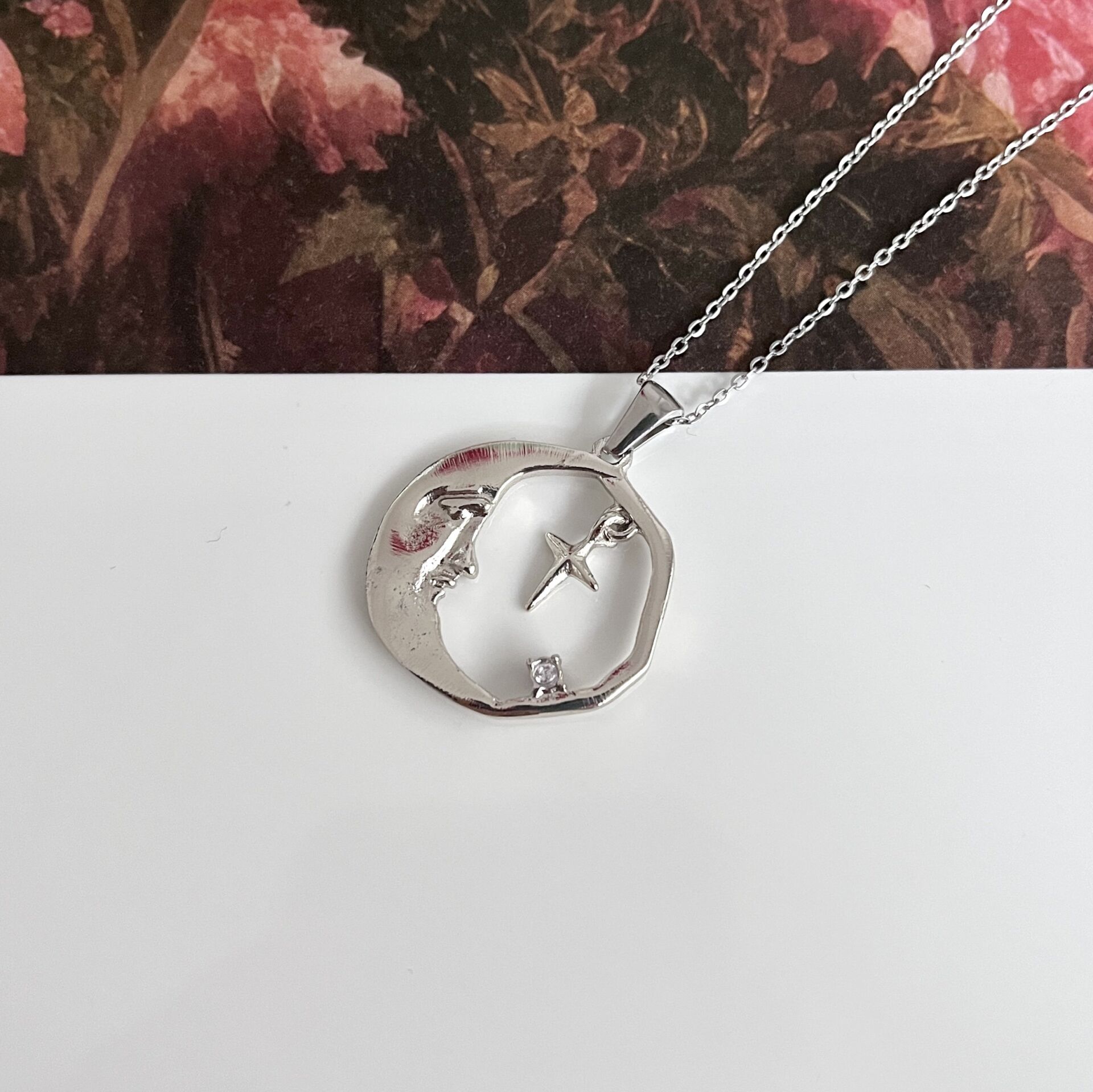 Çelik Taşlı Ay Kolye