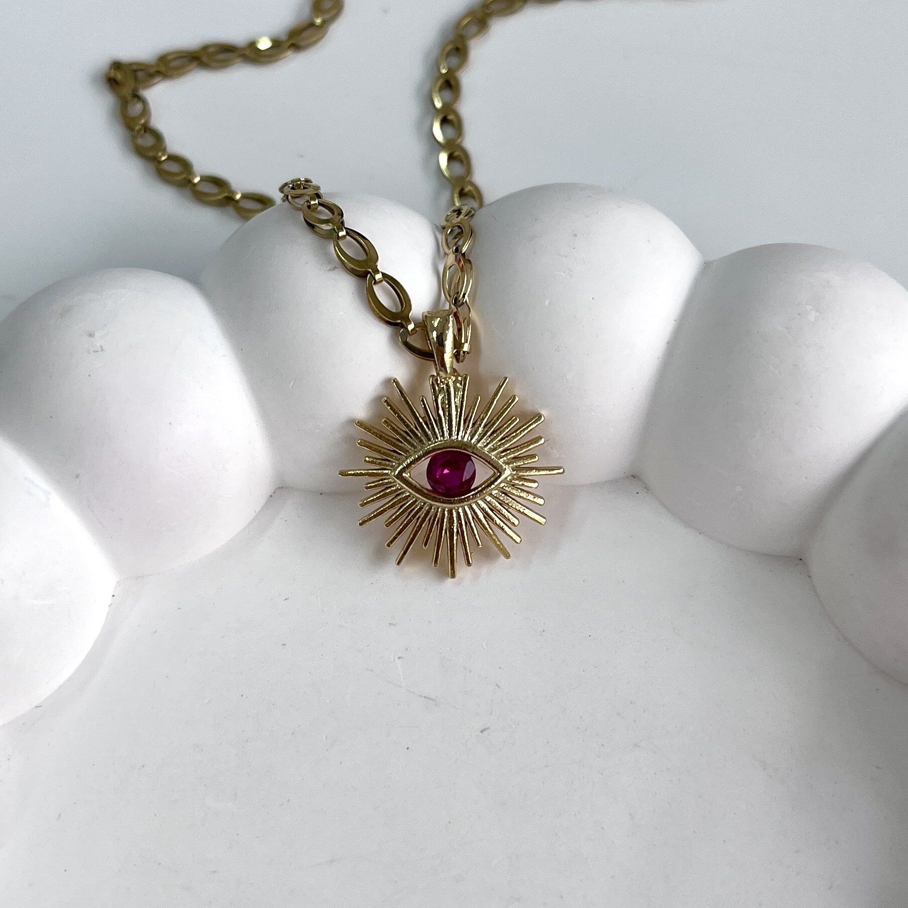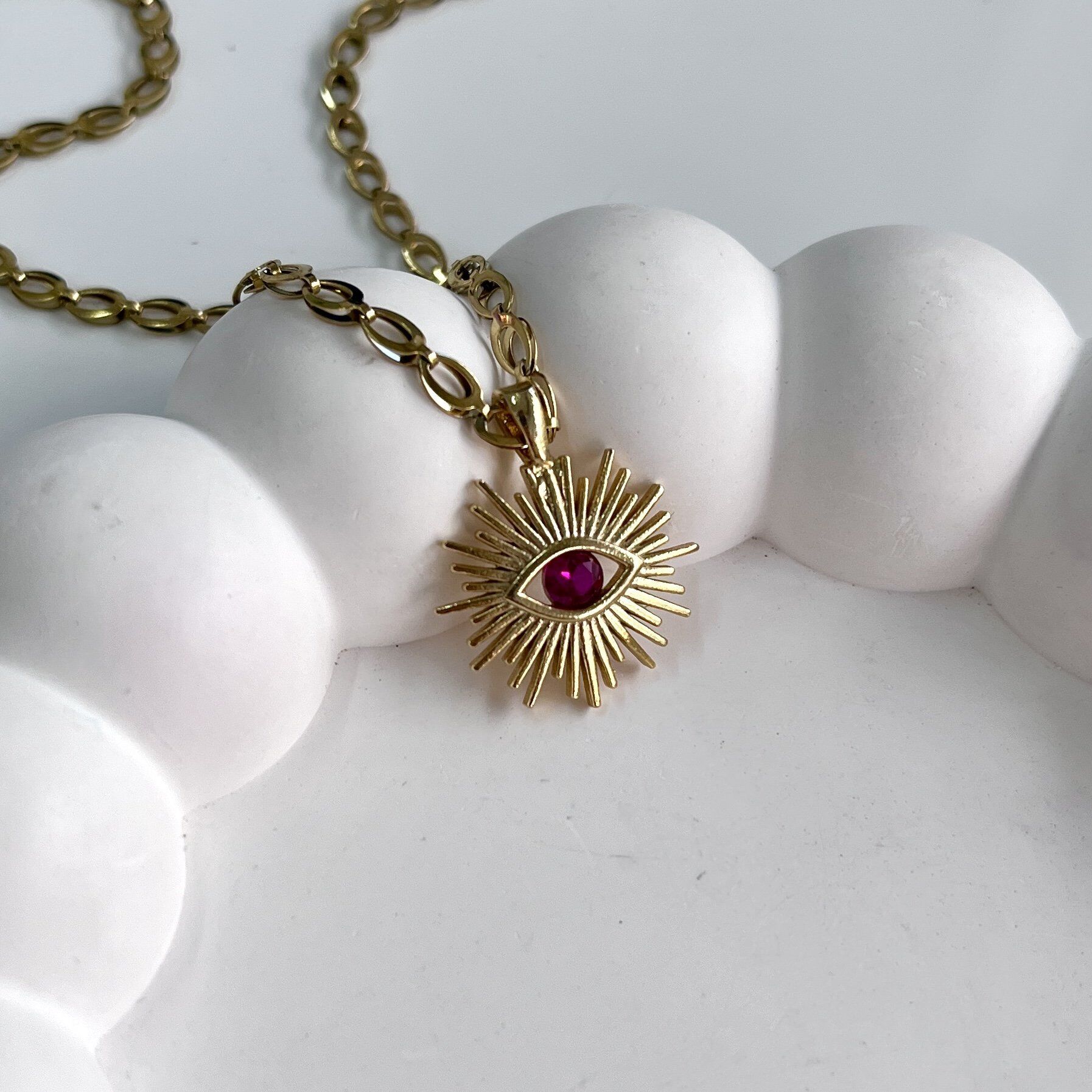 Çelik Taşlı Göz Kolye 6VJGX52ZJ4(Kopya-K46) Çelik Taşlı Göz Kolye