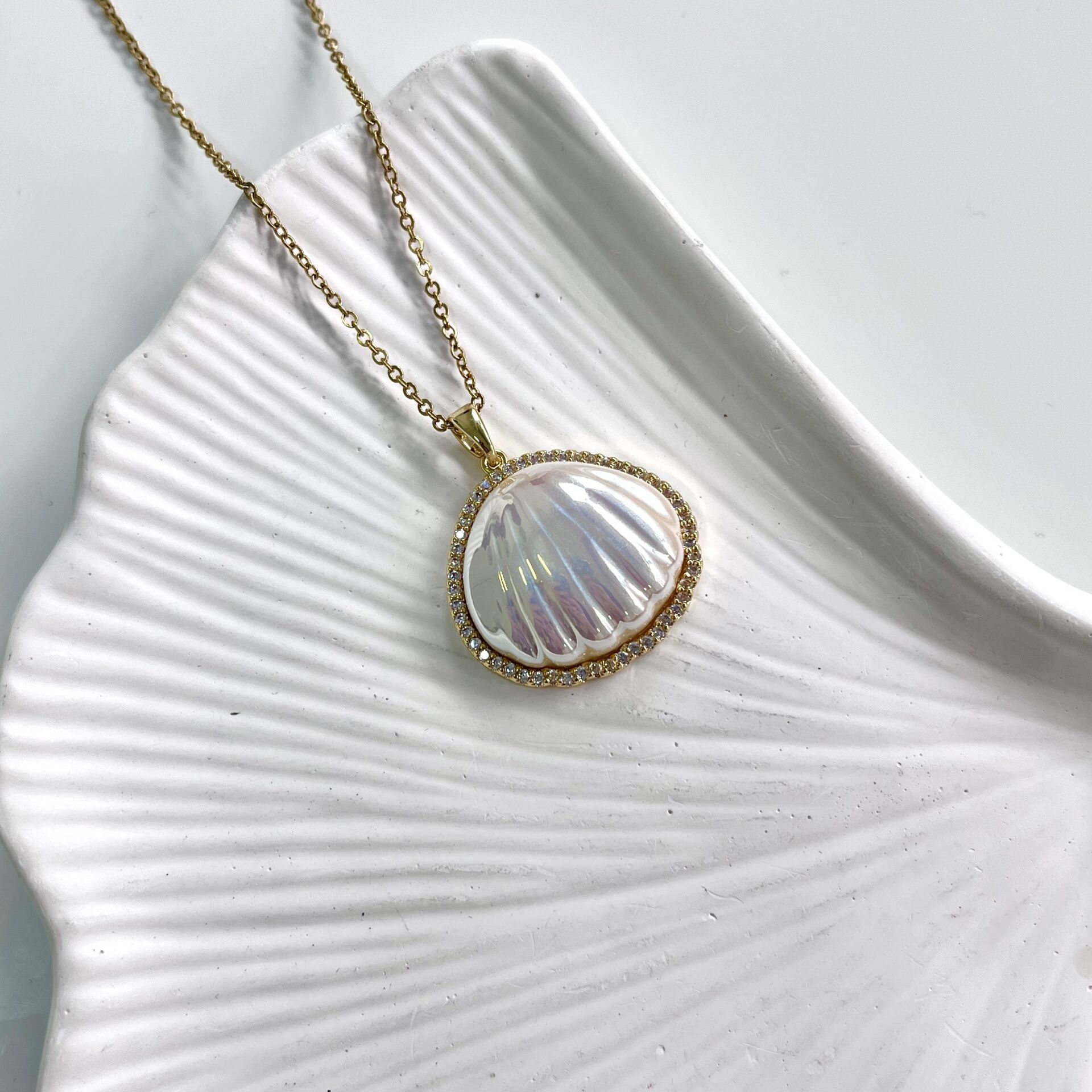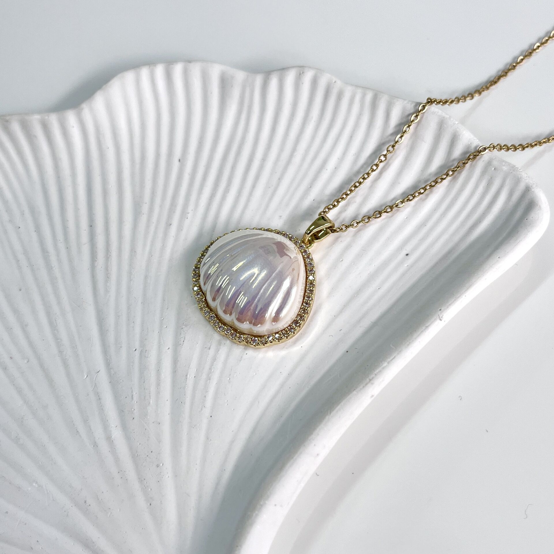 Çelik Taşlı İstiridye Kolye