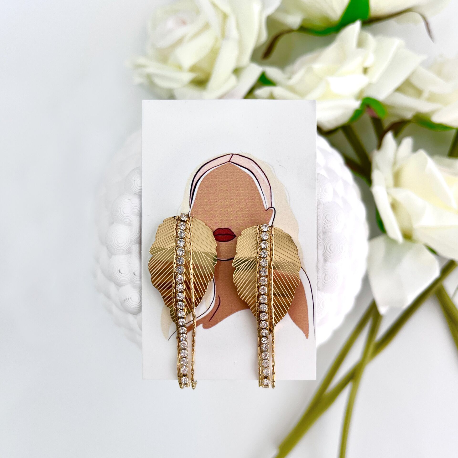 Çelik Taşlı Yaprak Küpe