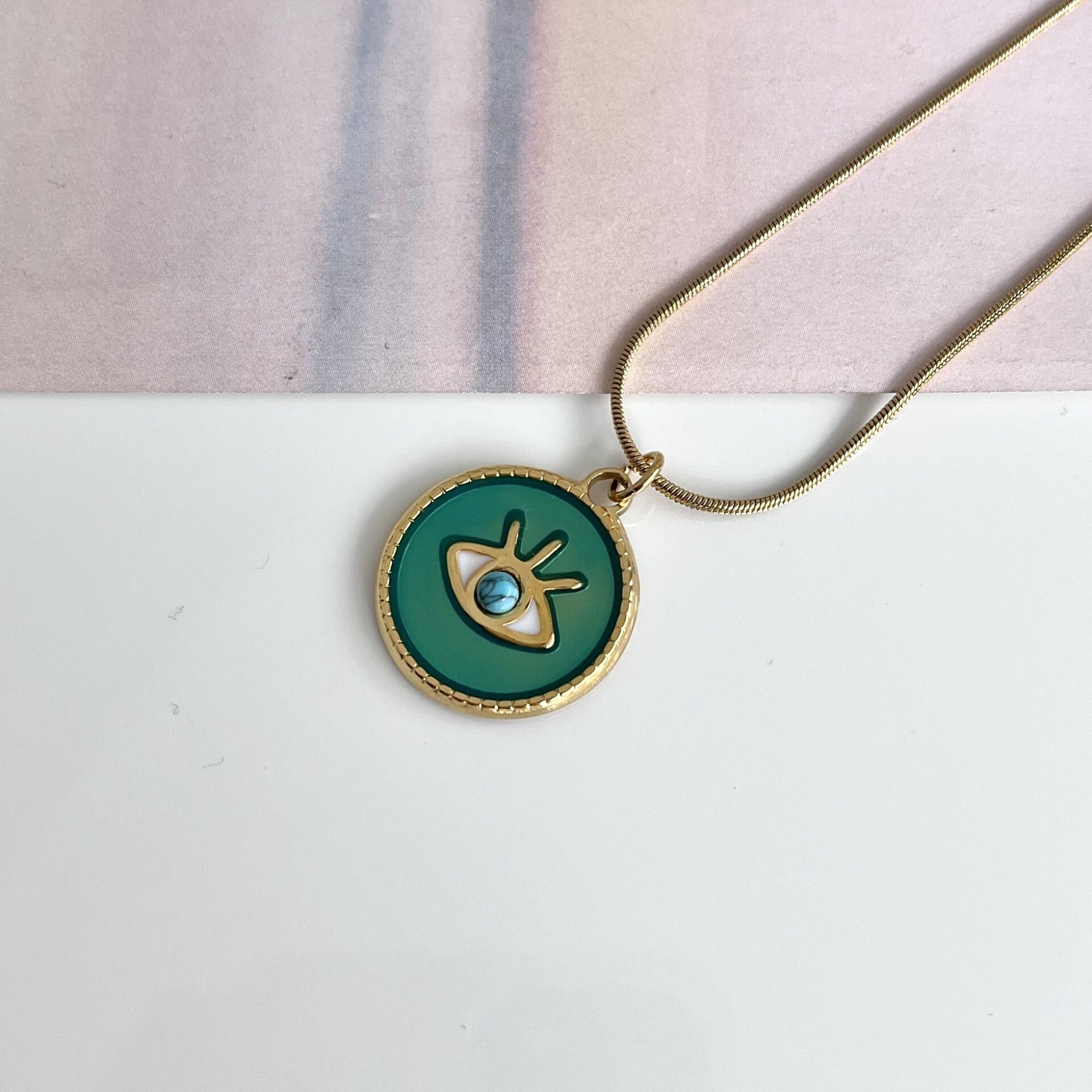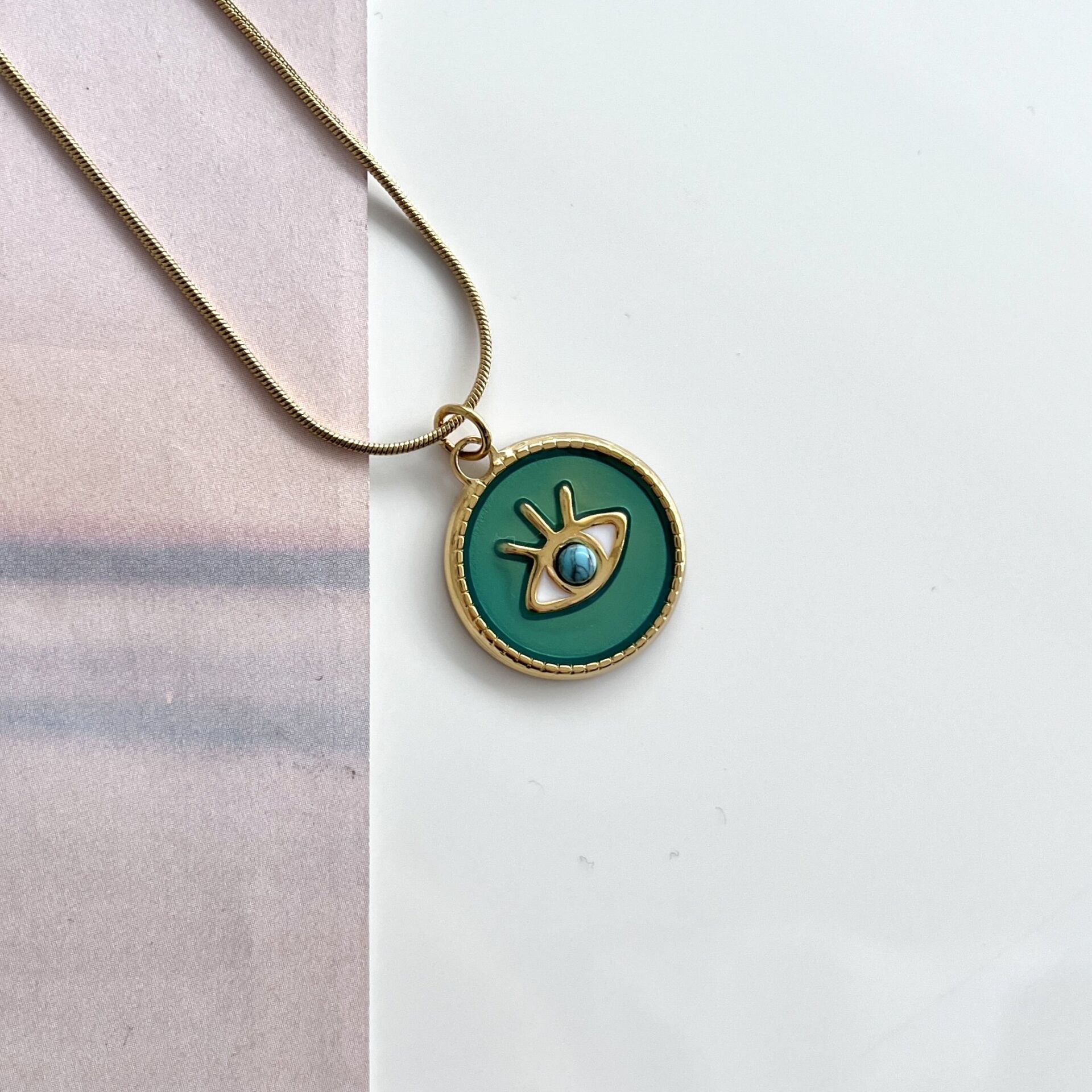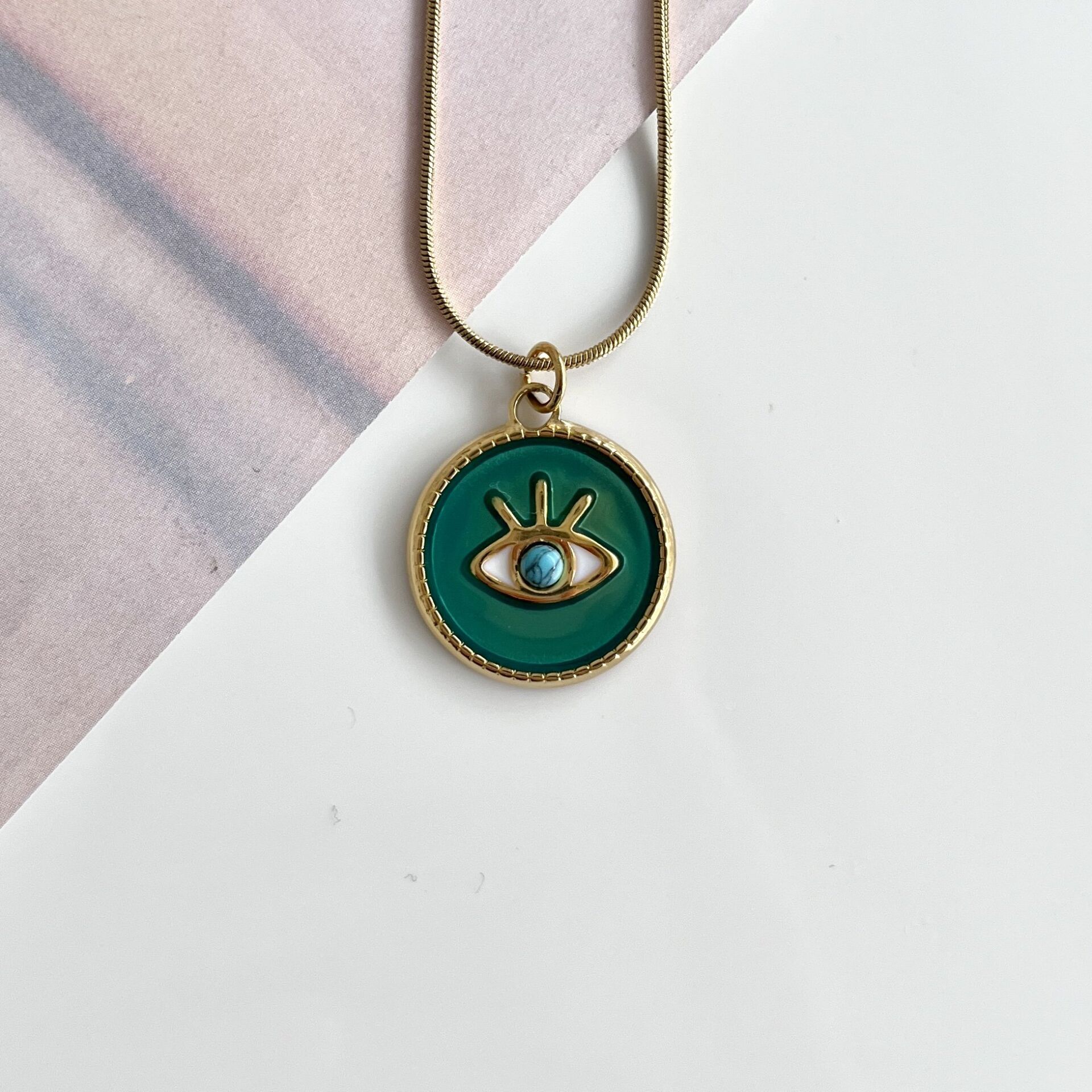 Çelik Turkuaz Taşı Göz Kolye NBRUQD86GS Çelik Turkuaz Taşı Göz Kolye
