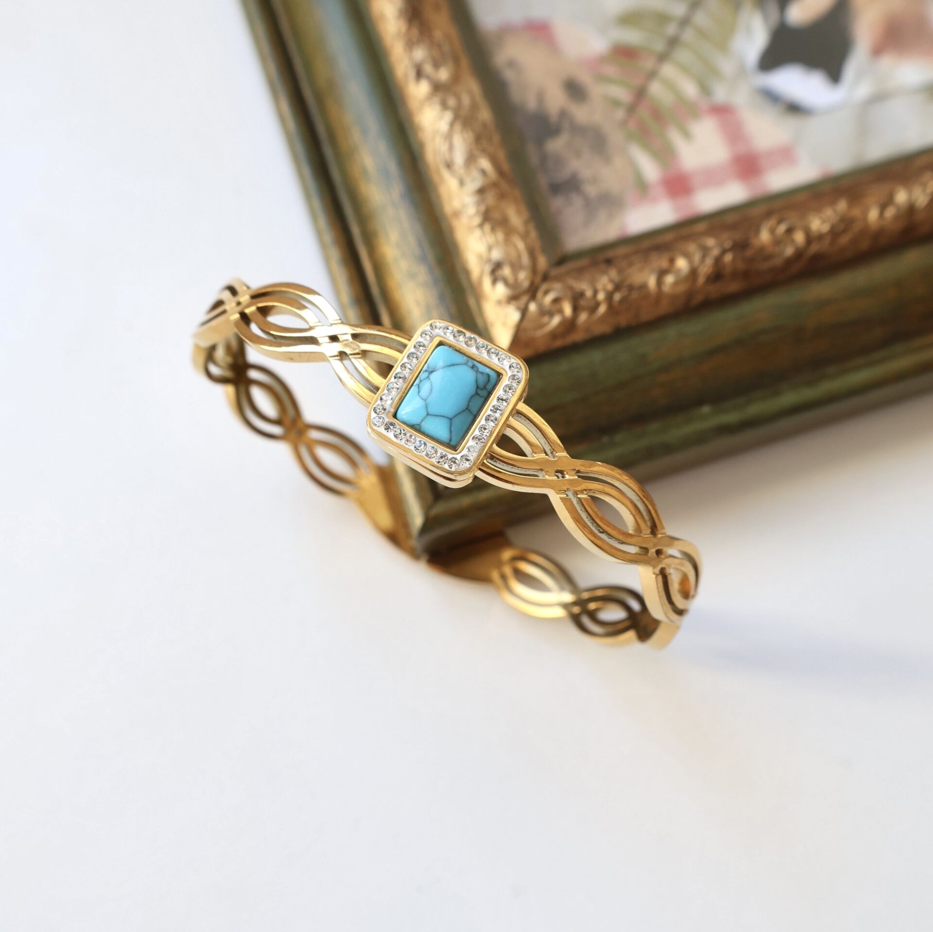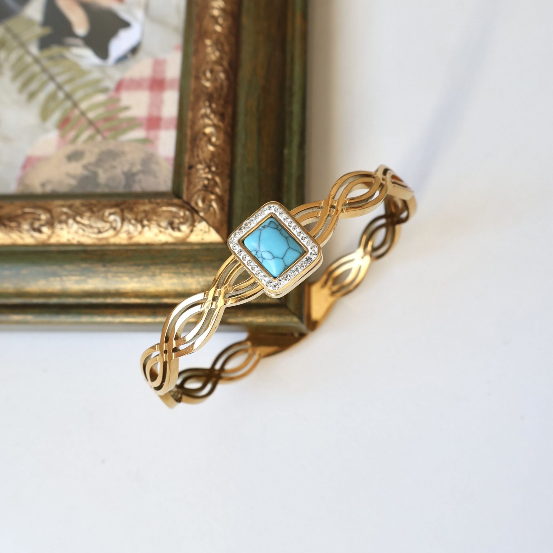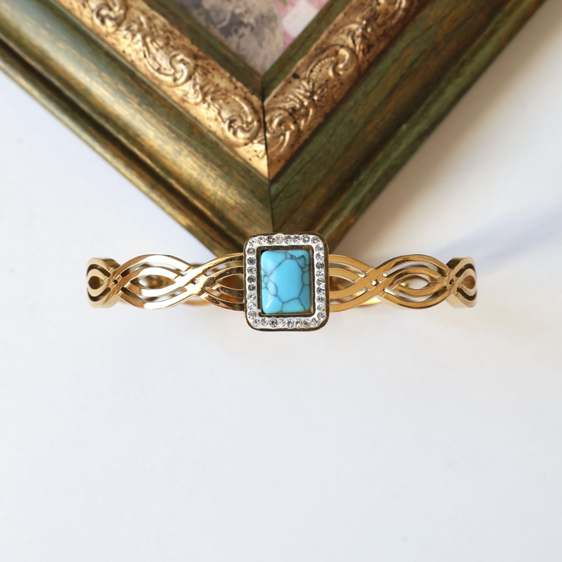 Doğal Turkuaz taşı kullanılmıştır.