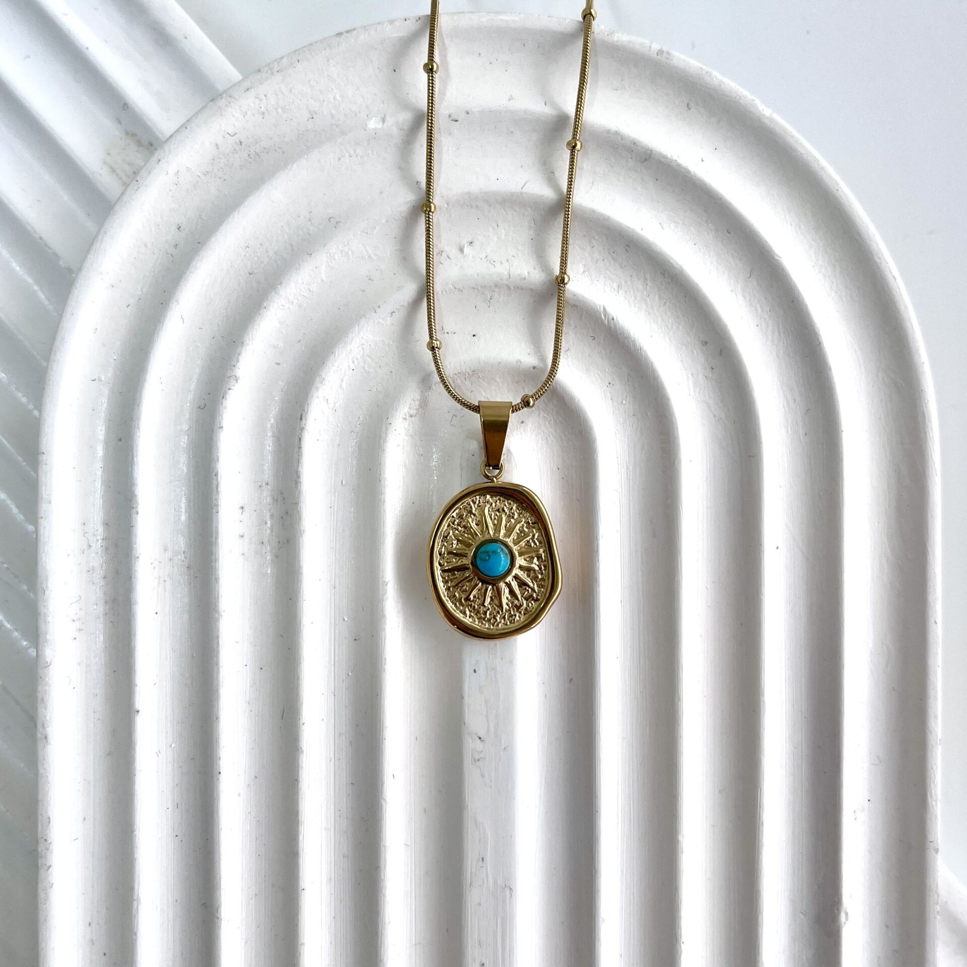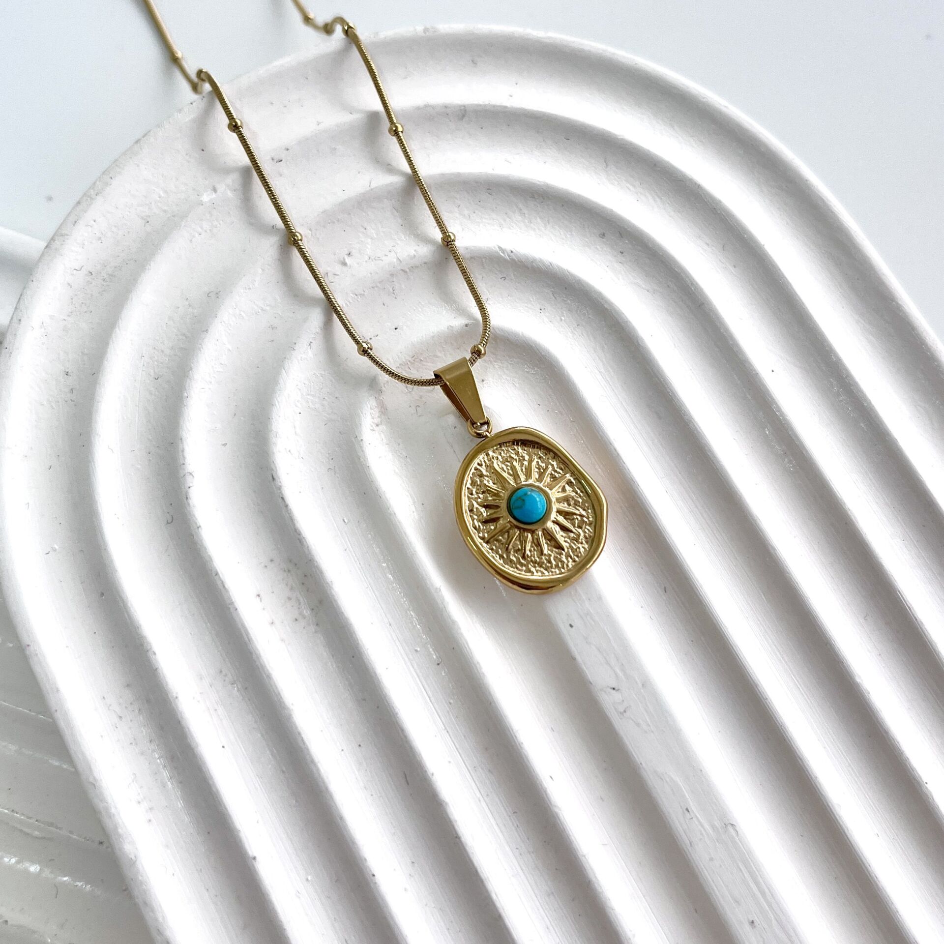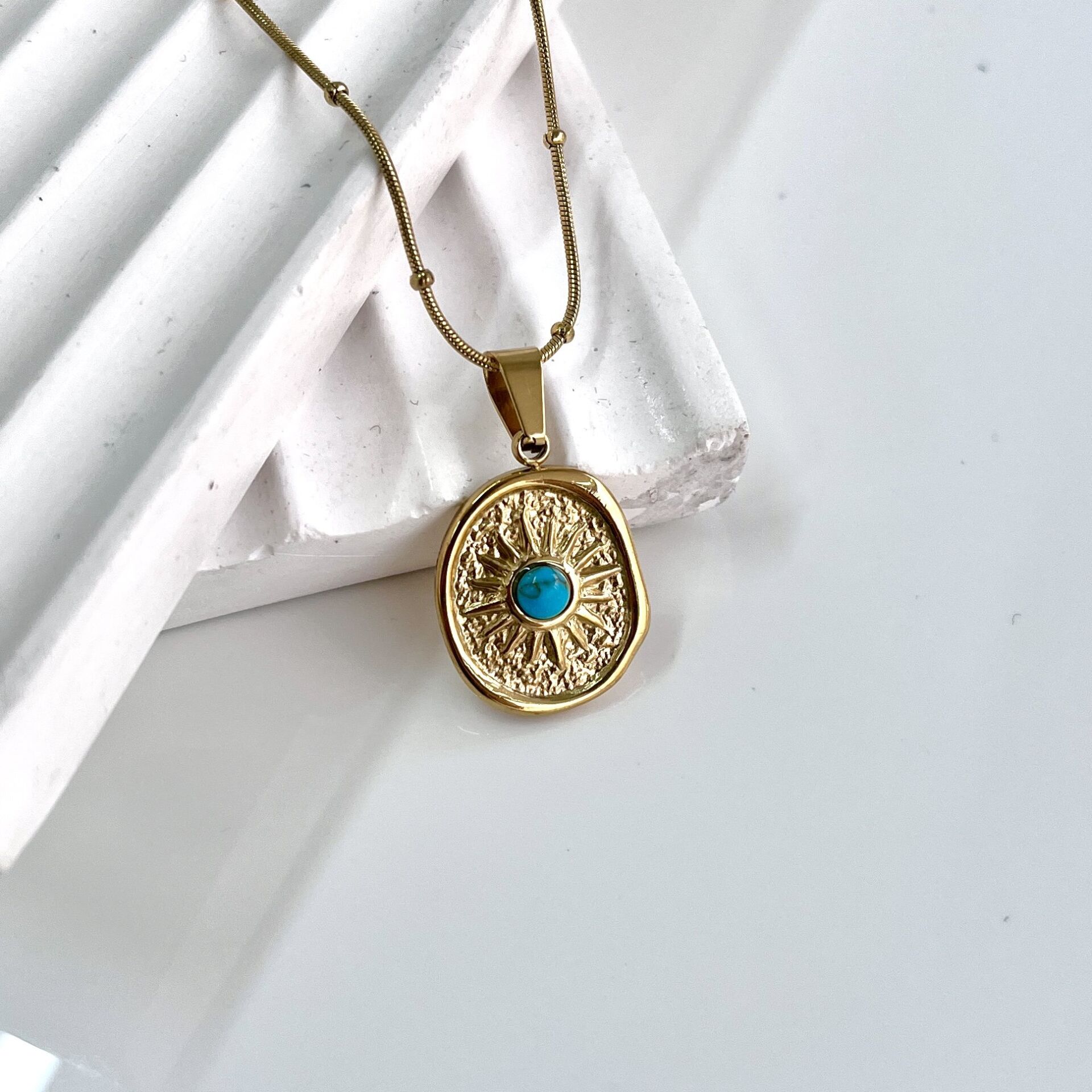 Çelik Turkuaz Taşı Kolye