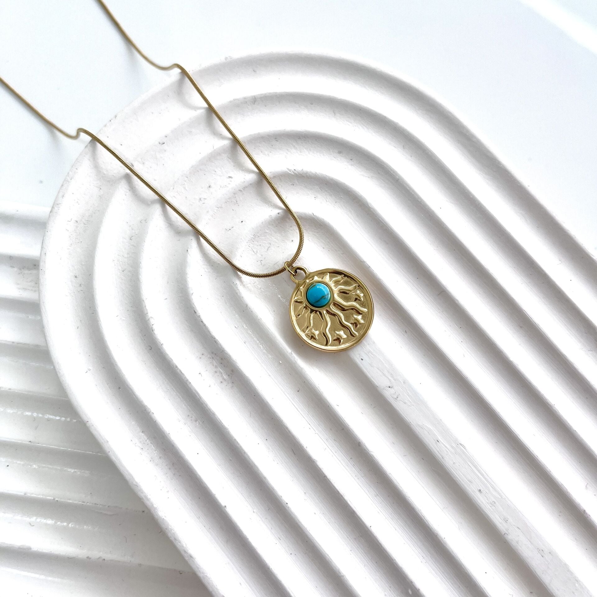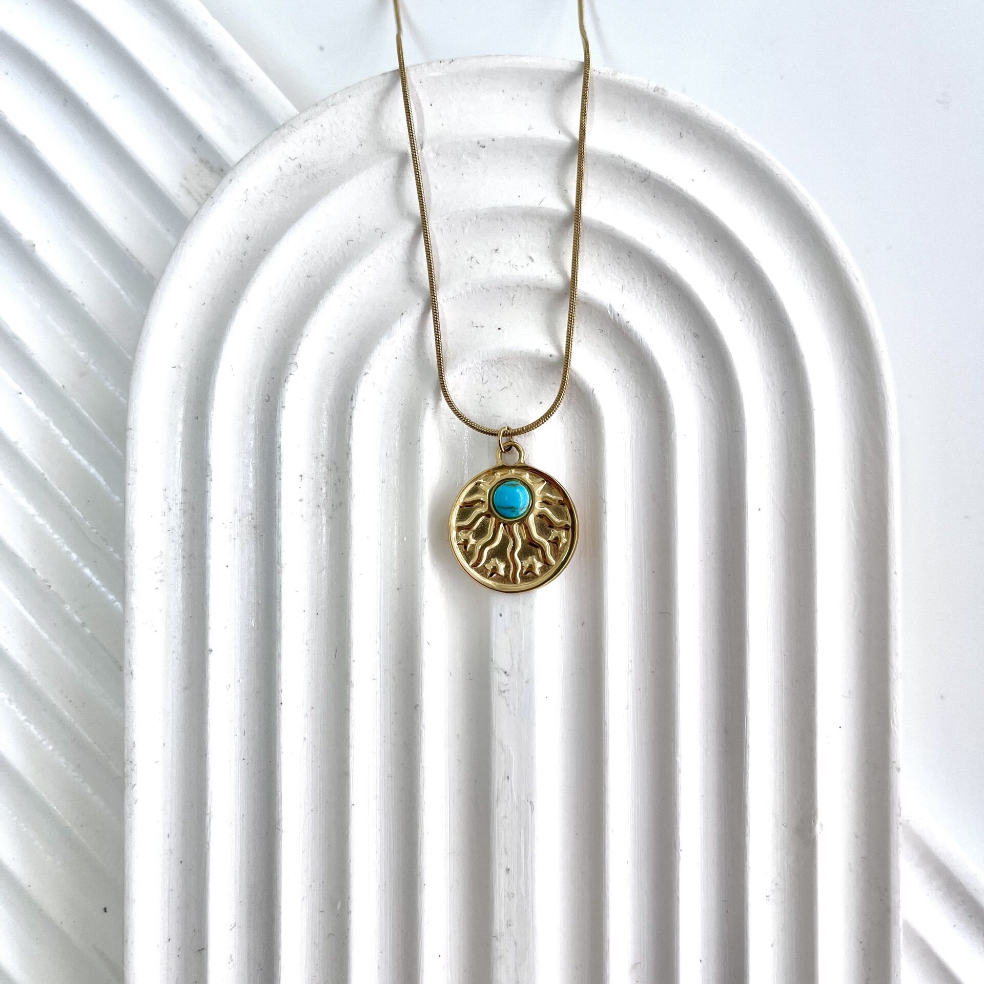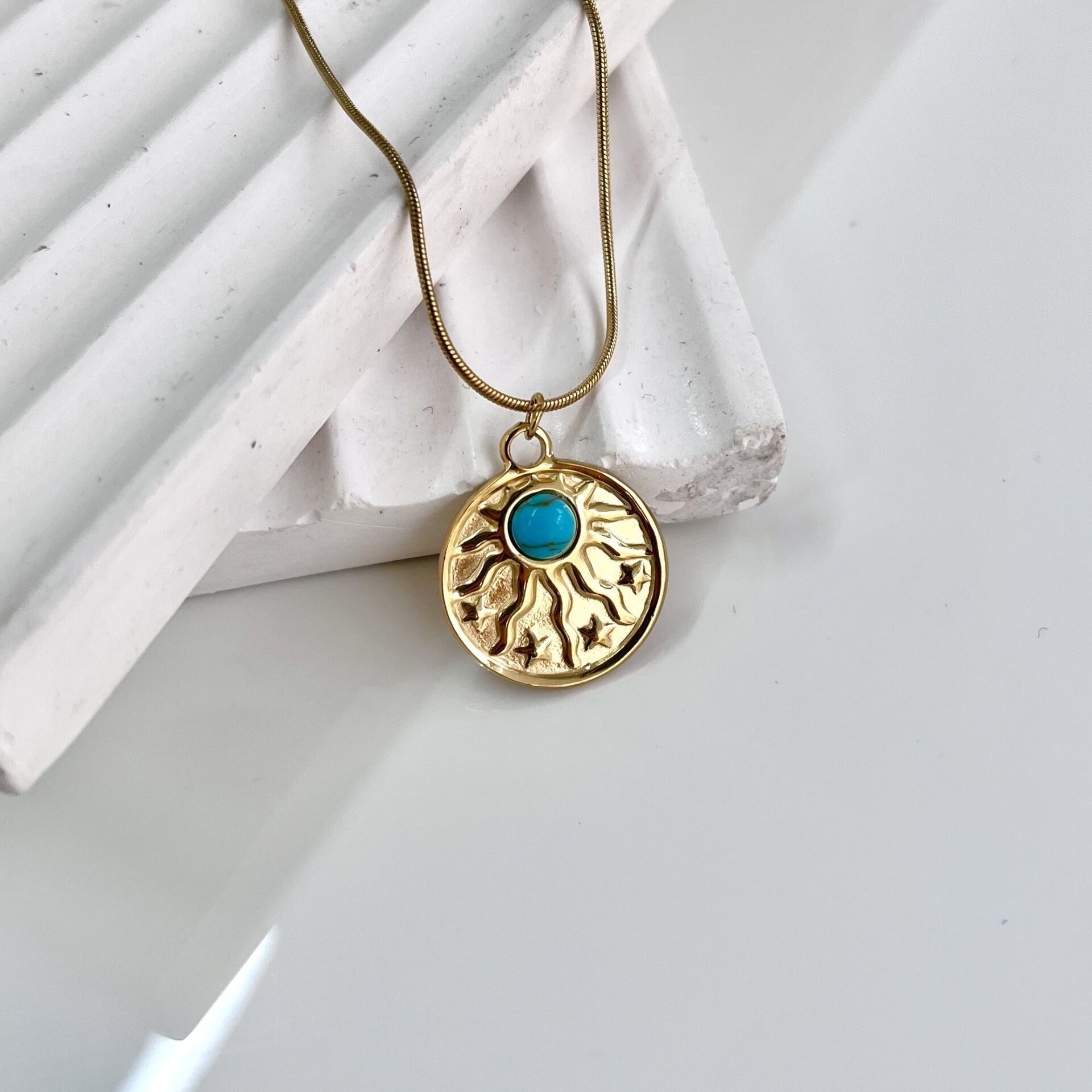 Çelik Turkuaz Taşı Kolye RY3KFLA671(Kopya-M6M) Çelik Turkuaz Taşı Kolye