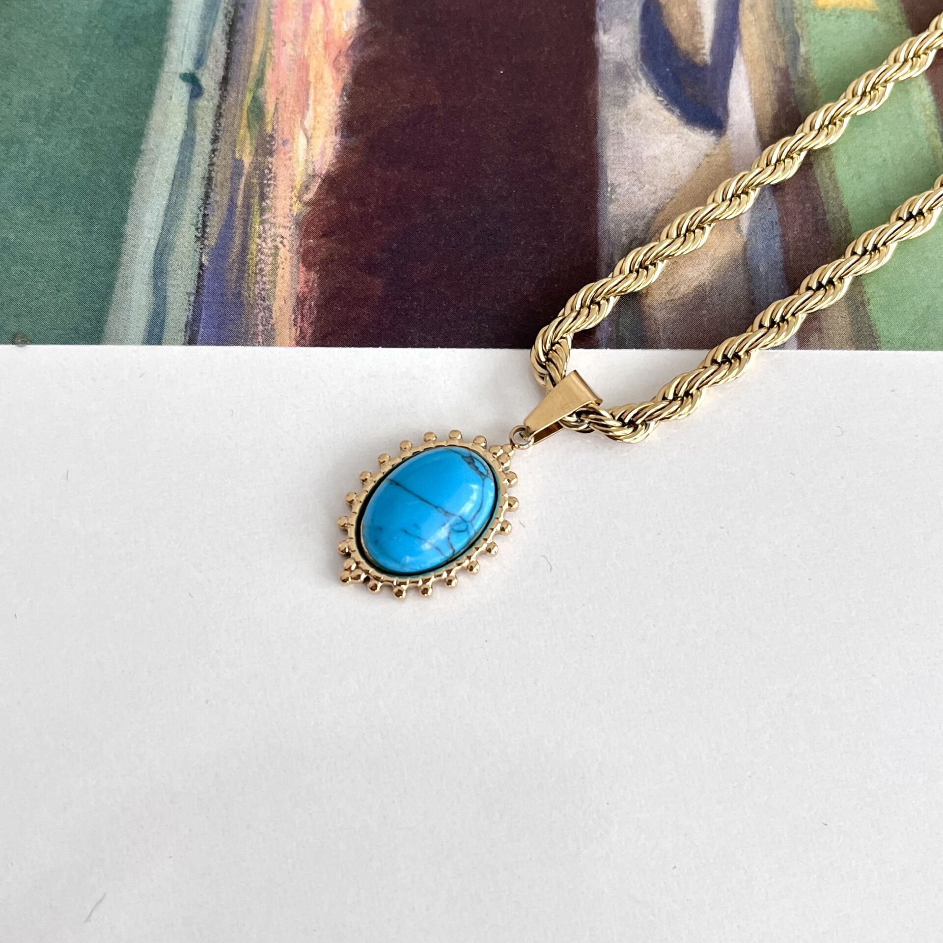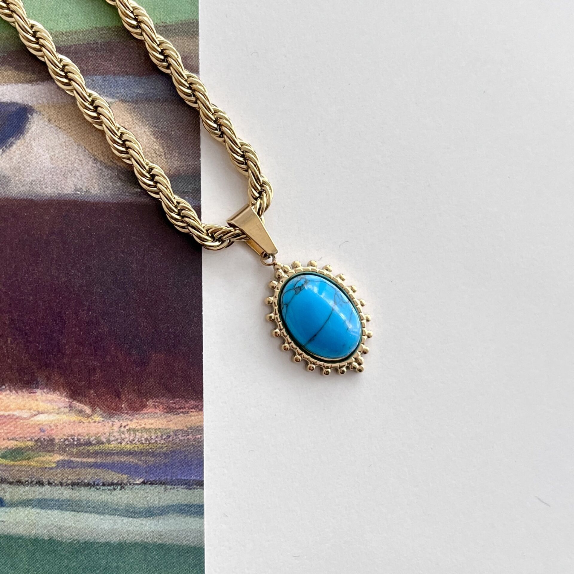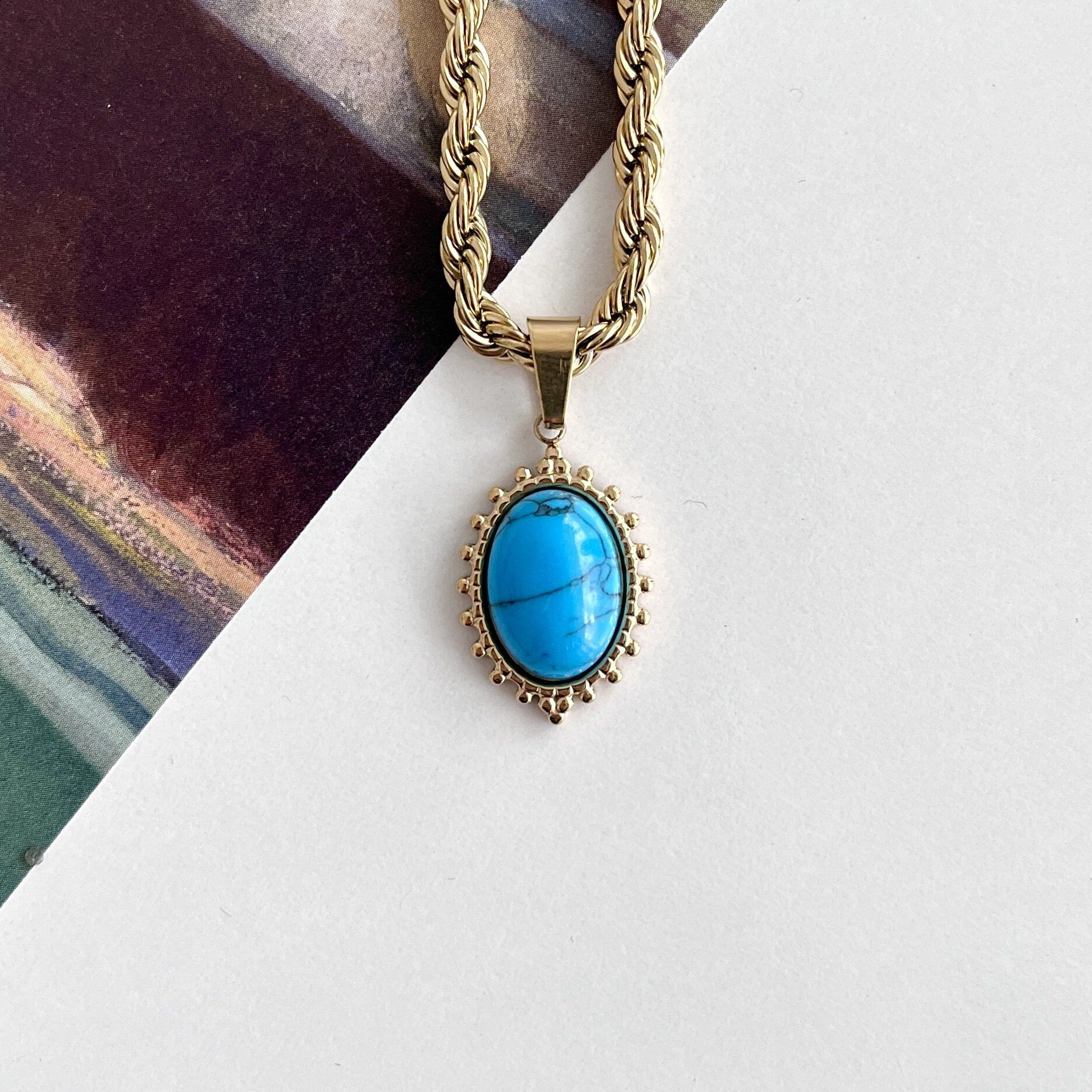 Doğal Turkuaz taşı kullanılmıştır.