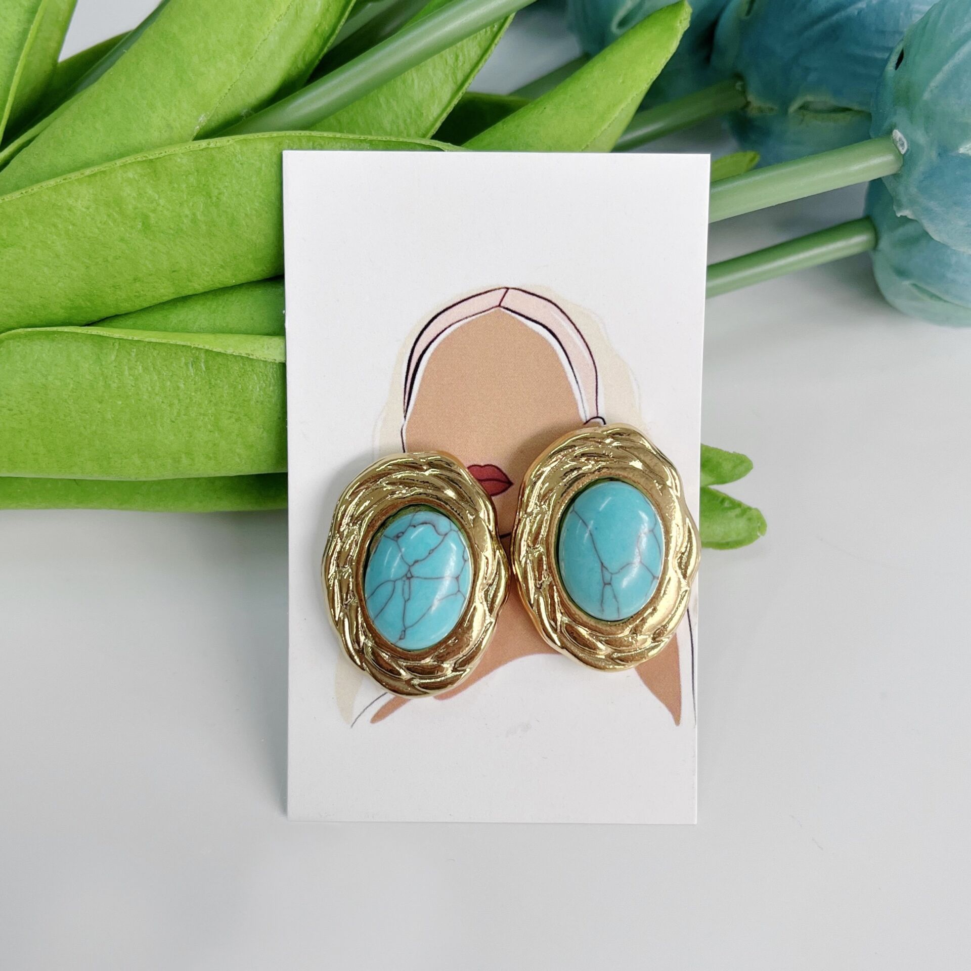 Çelik Turkuaz Taşı Küpe