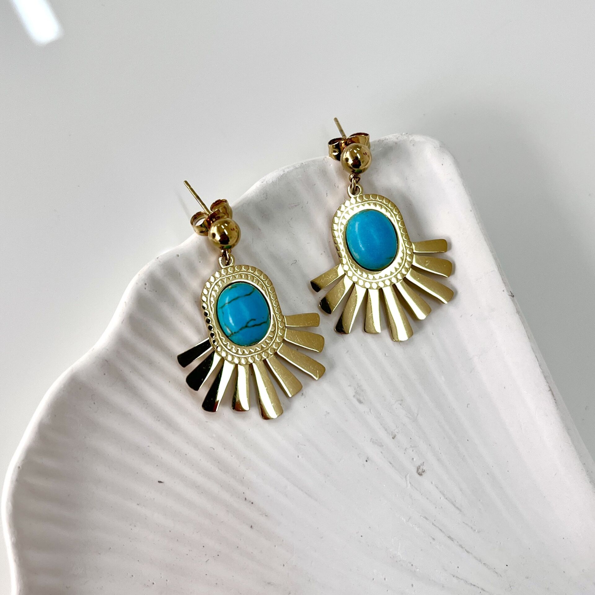 Çelik Turkuaz Taşı Küpe
