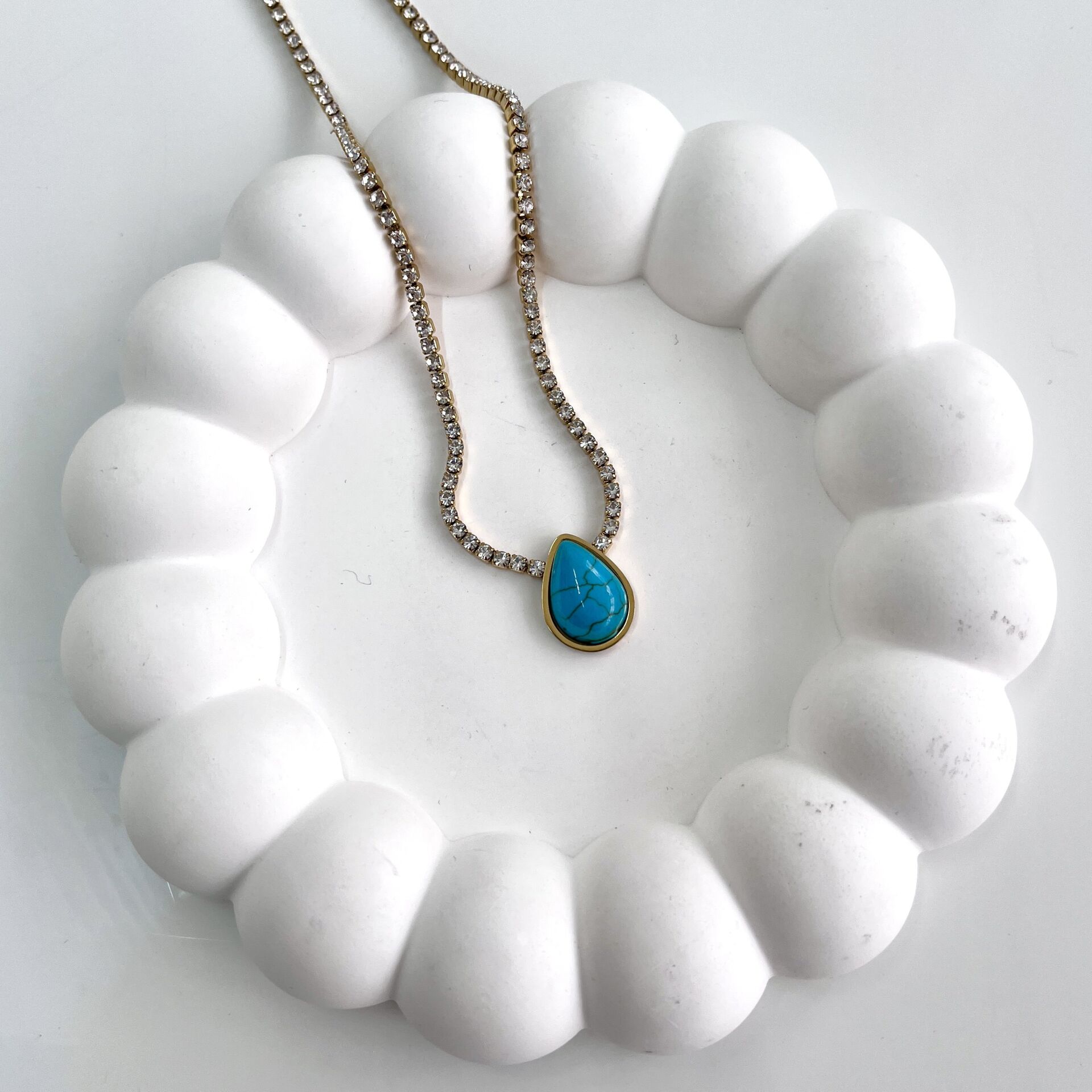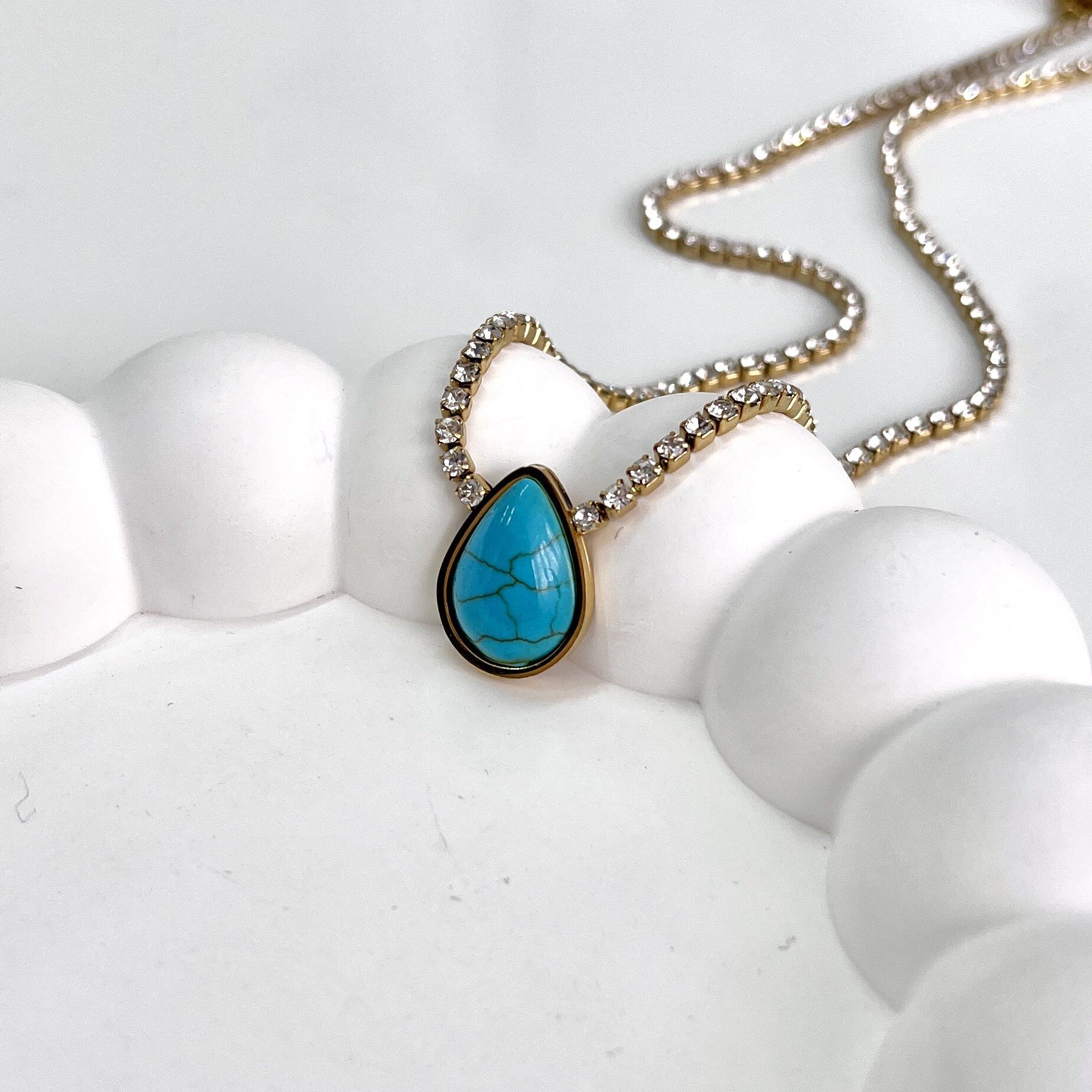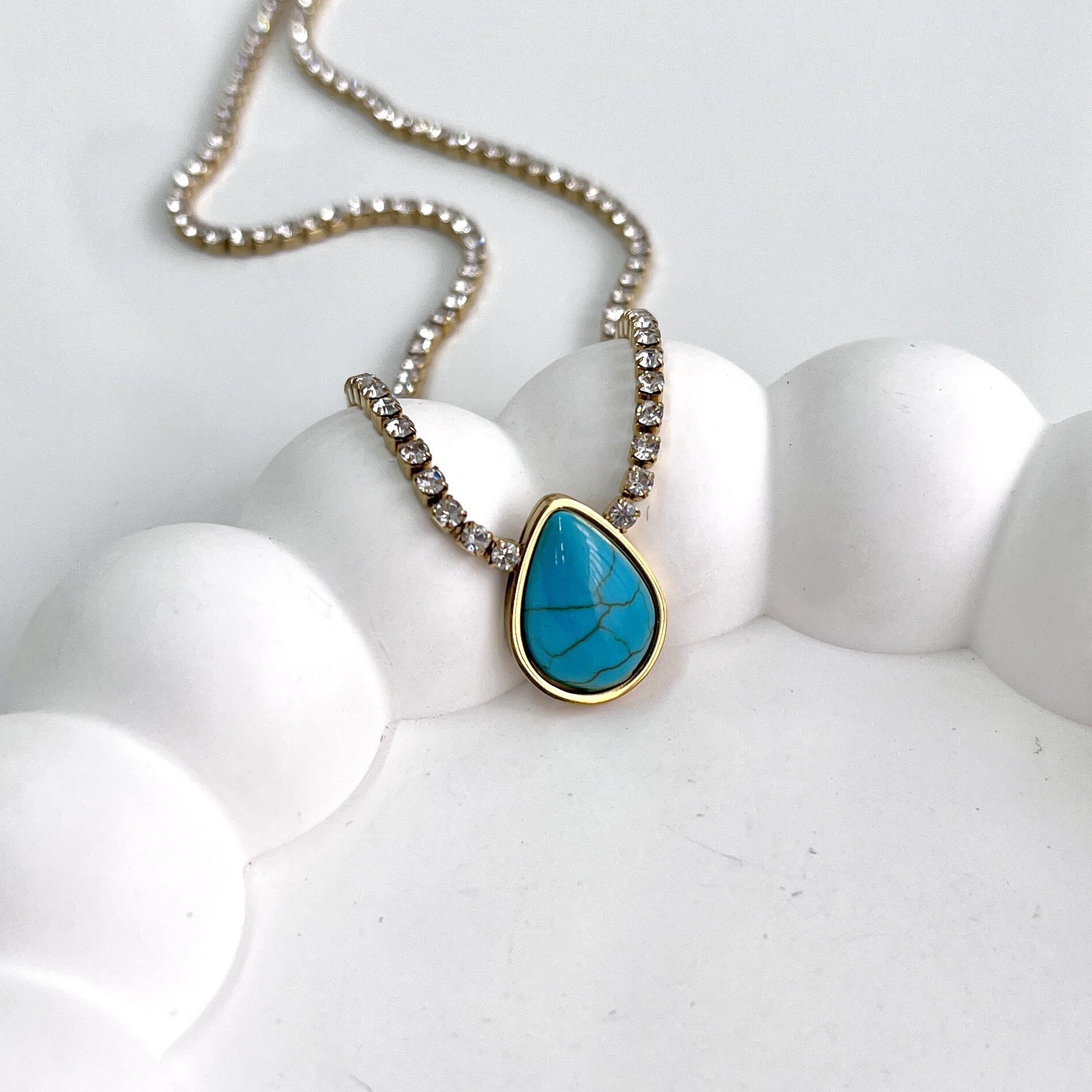 Çelik Turkuaz Taşı Su Yolu Kolye