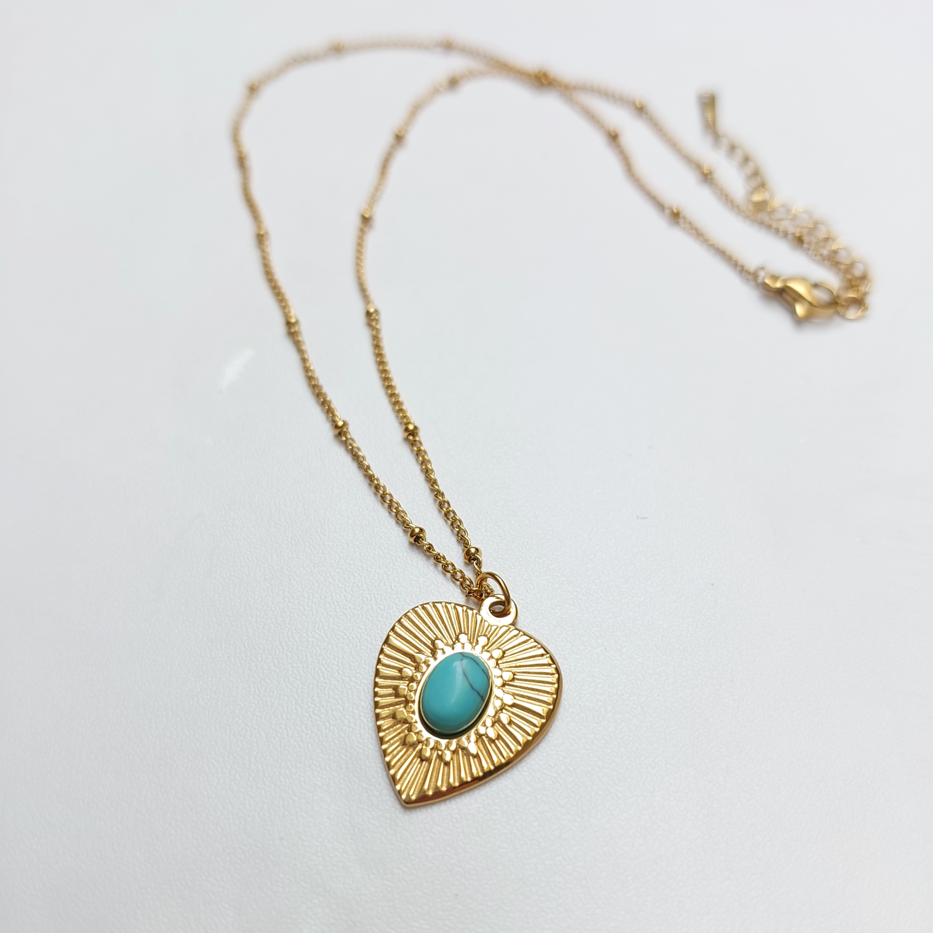 Çelik Turkuaz Taşlı Kalp Kolye