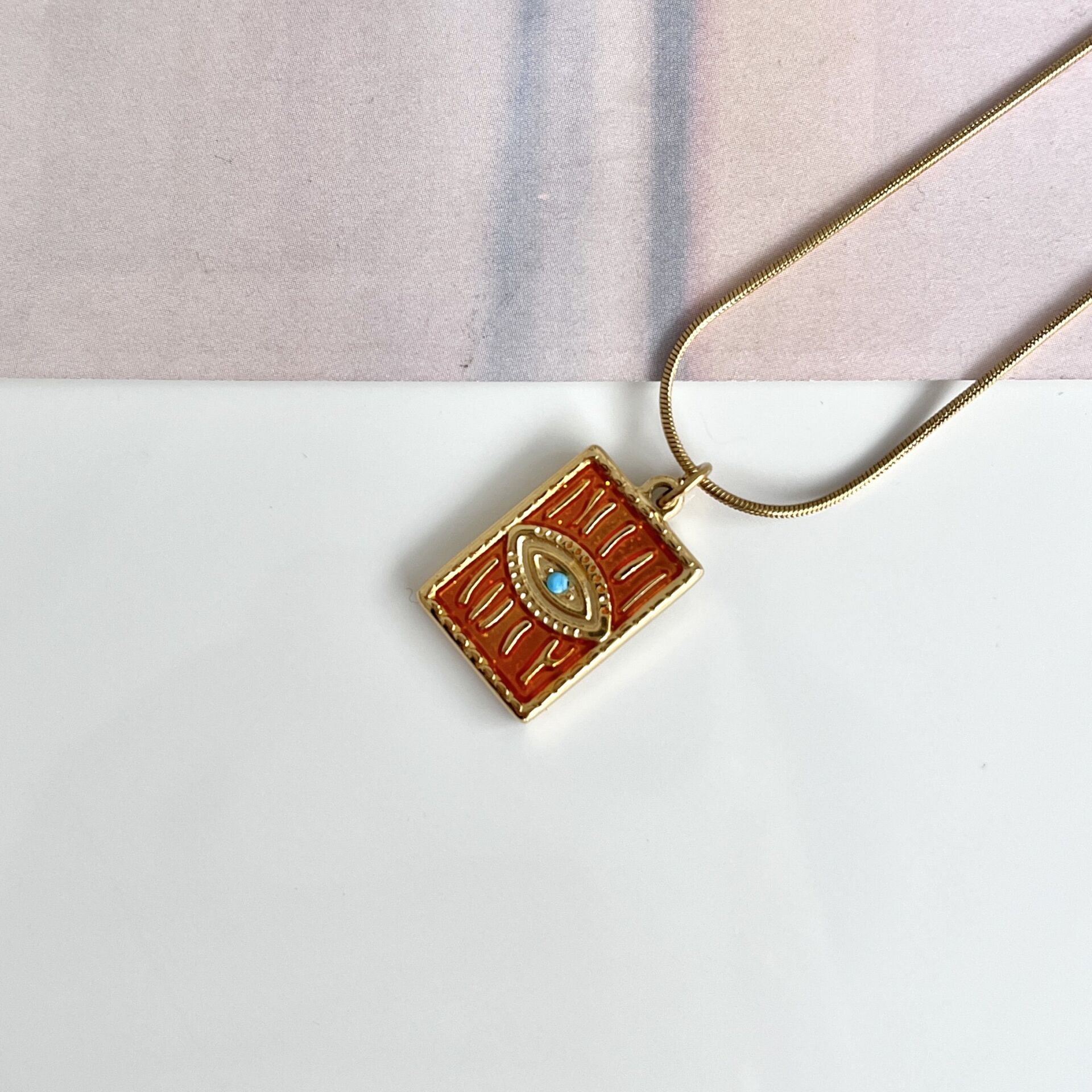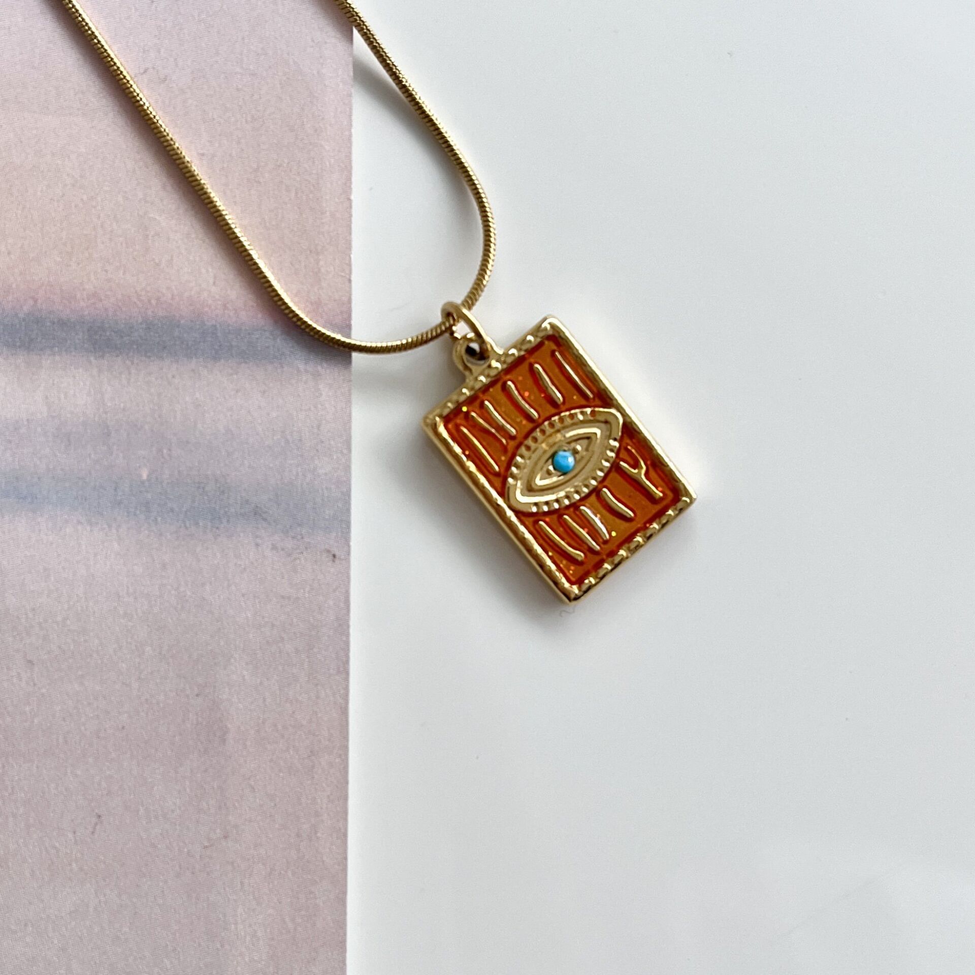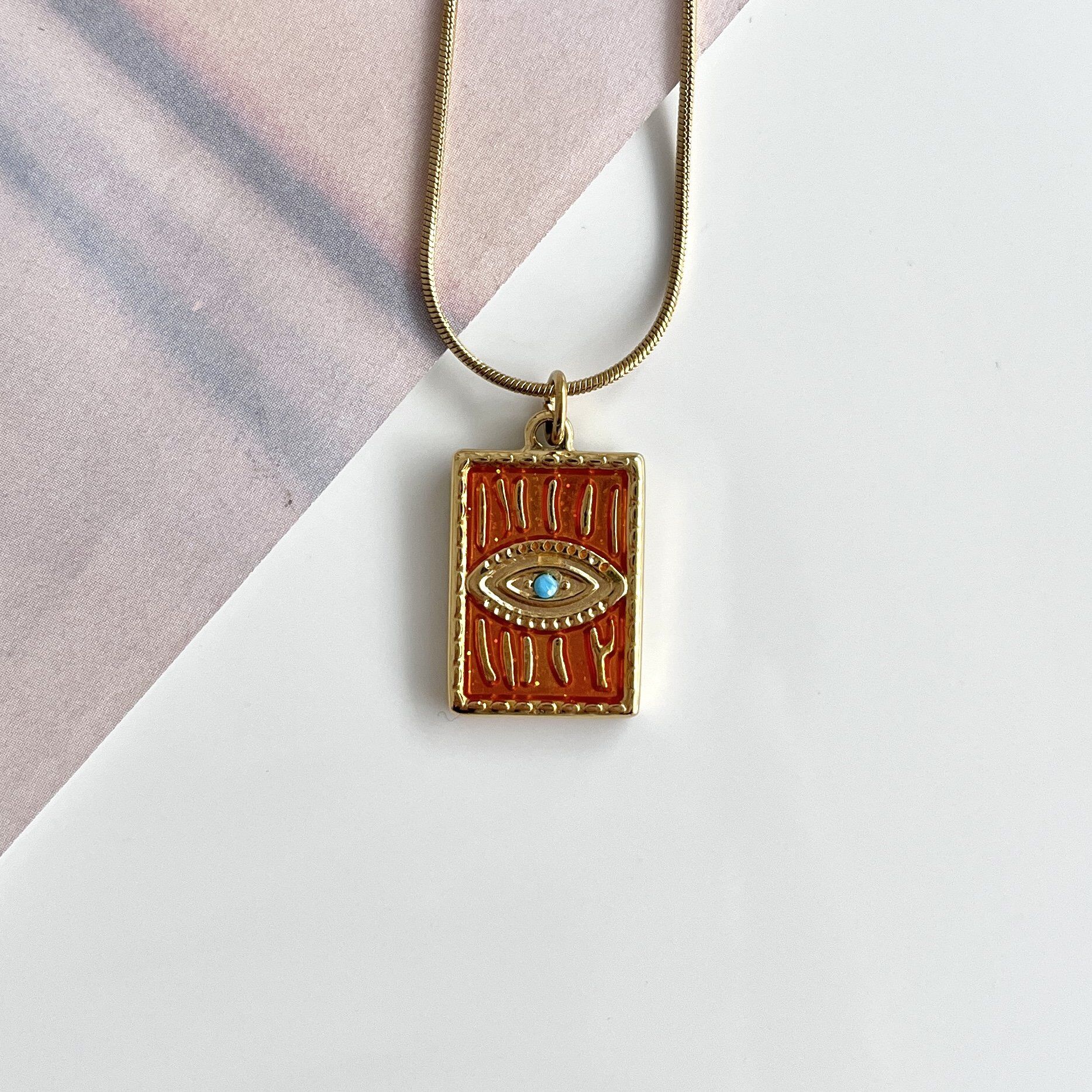 Çelik Turuncu Göz Kolye