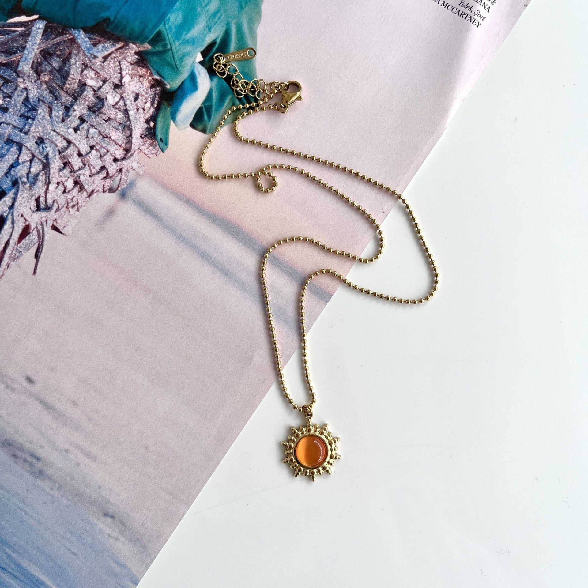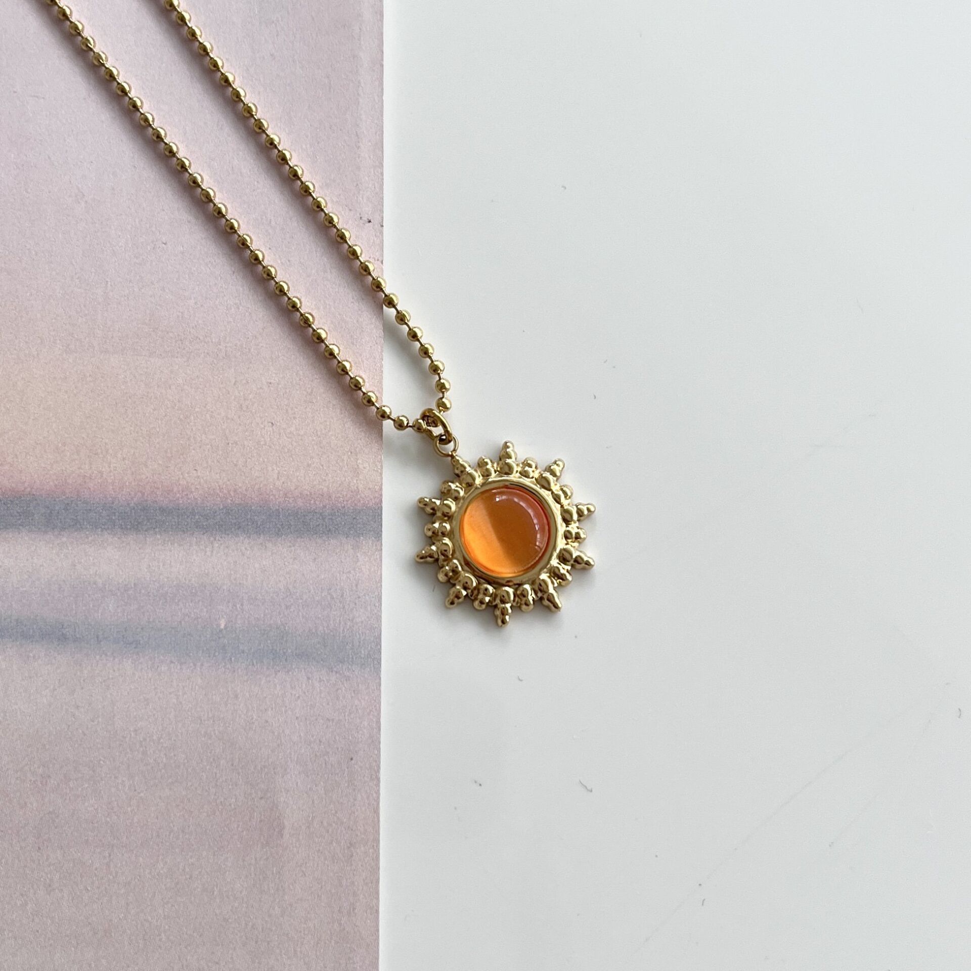 Çelik Turuncu Güneş Kolye