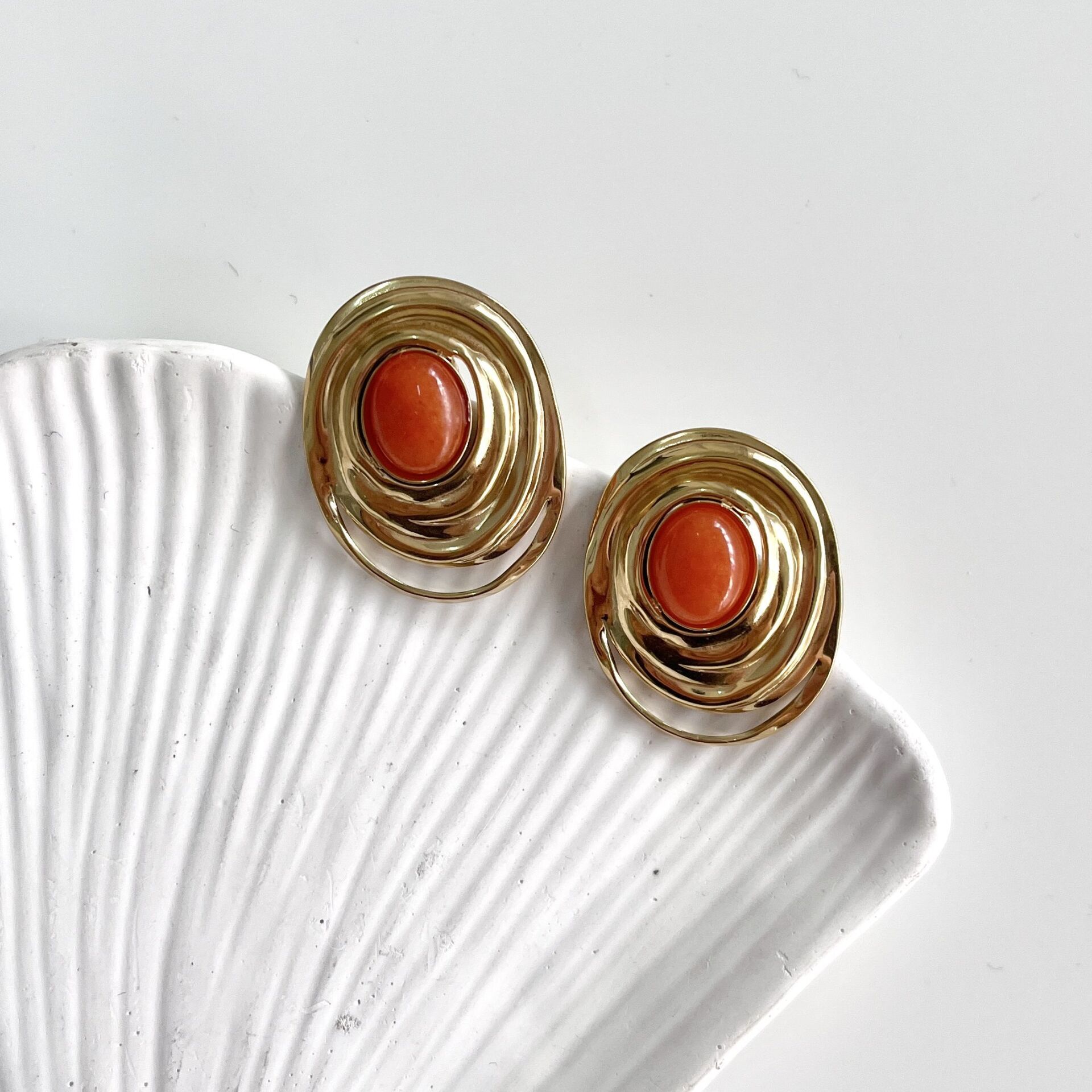 Çelik Turuncu Taşlı Küpe