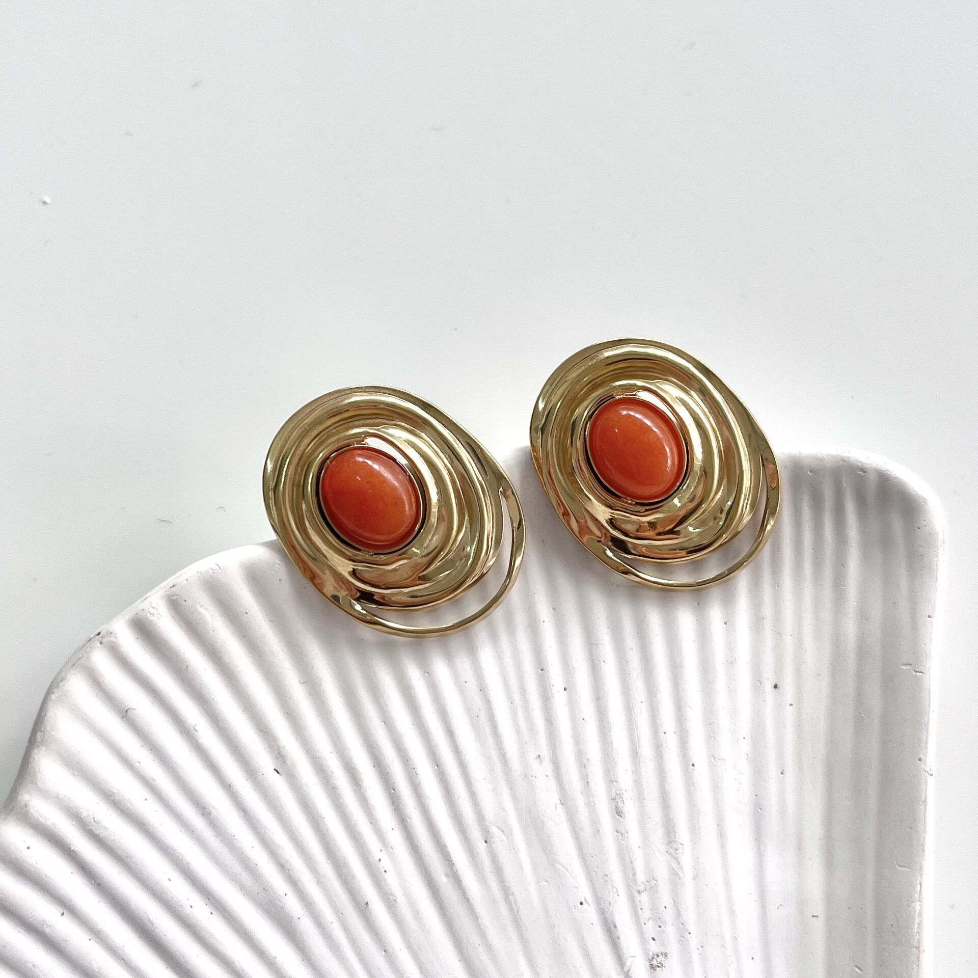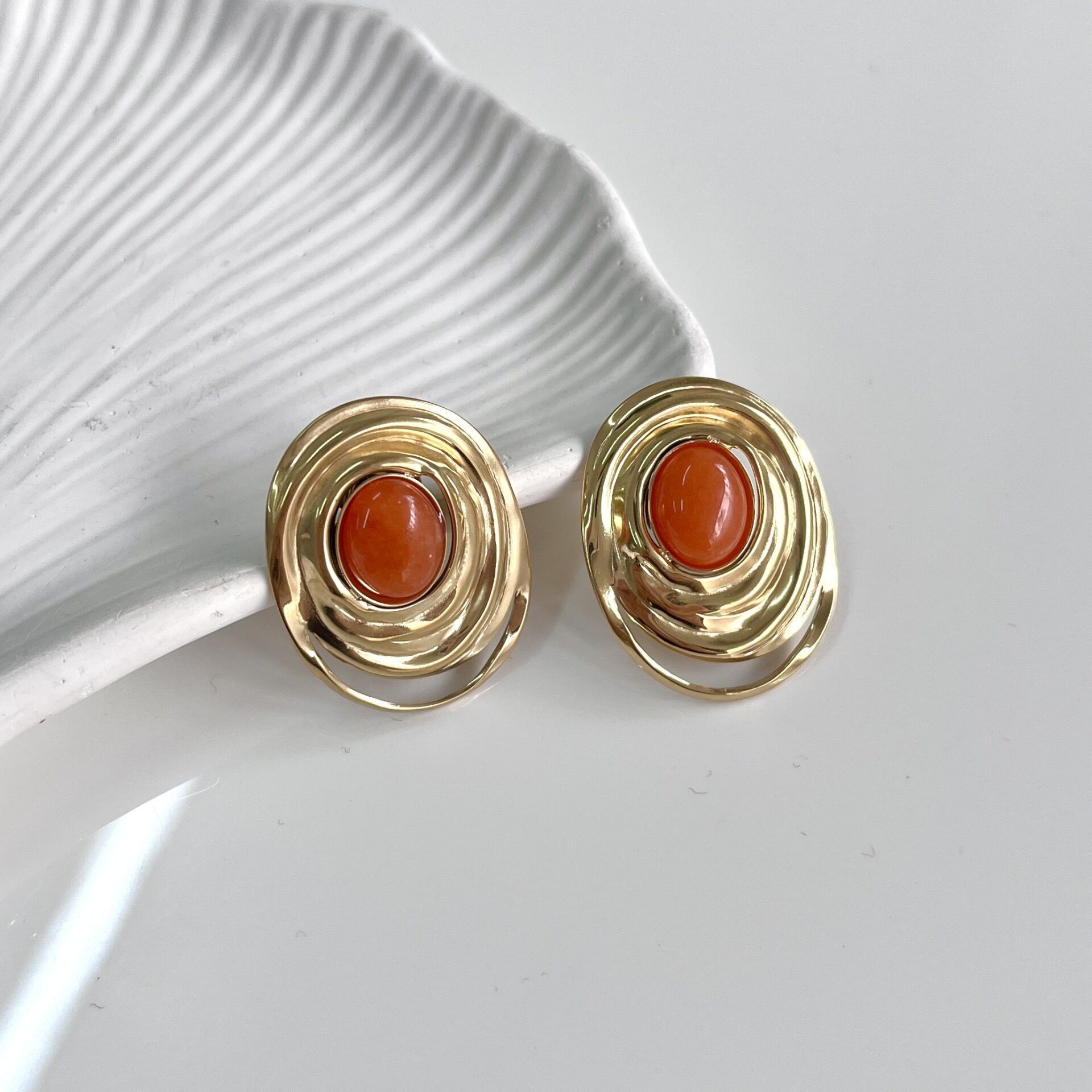 Çelik Turuncu Taşlı Küpe
