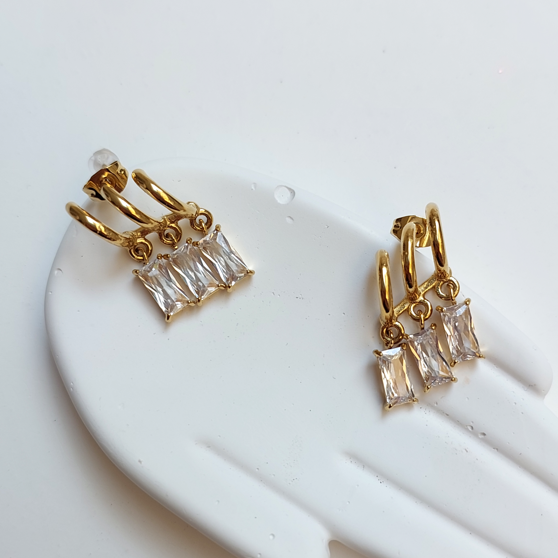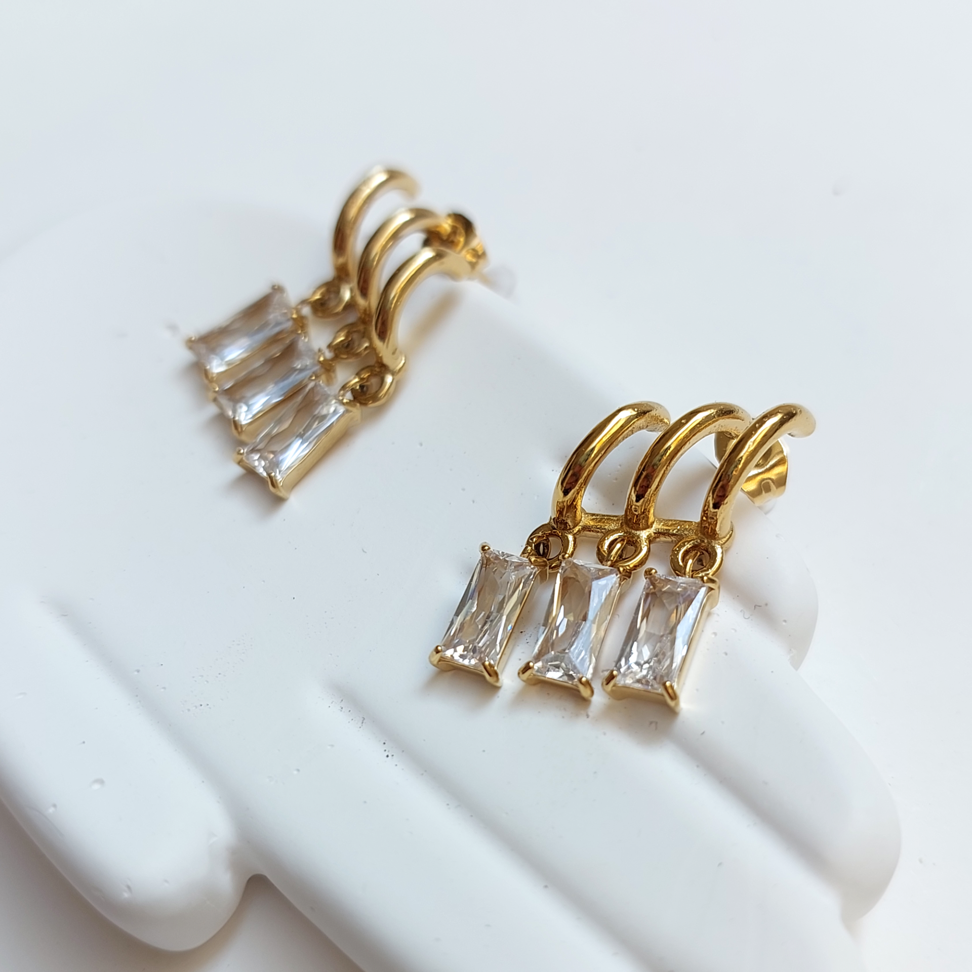 Çelik Üçlü Baget Taş Küpe