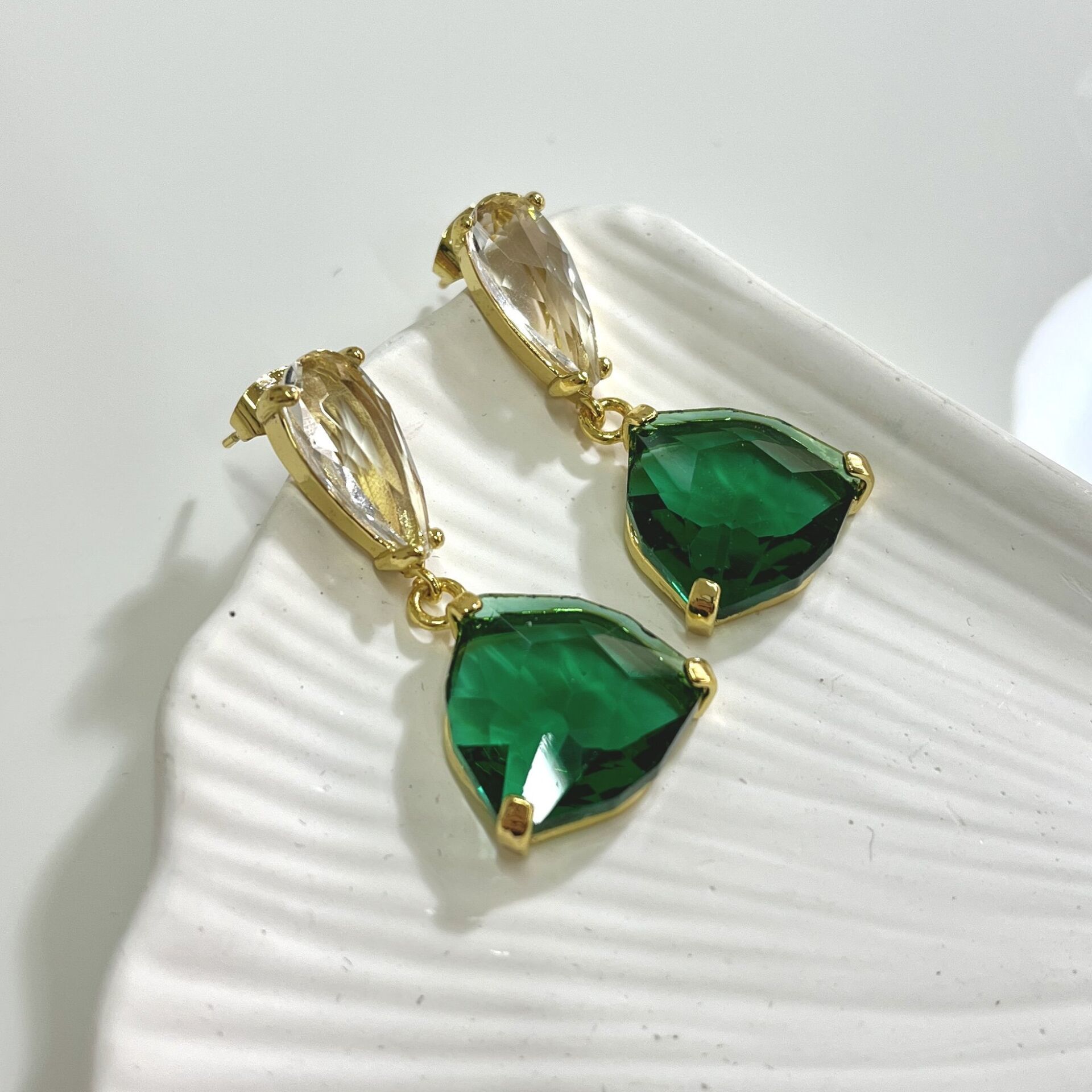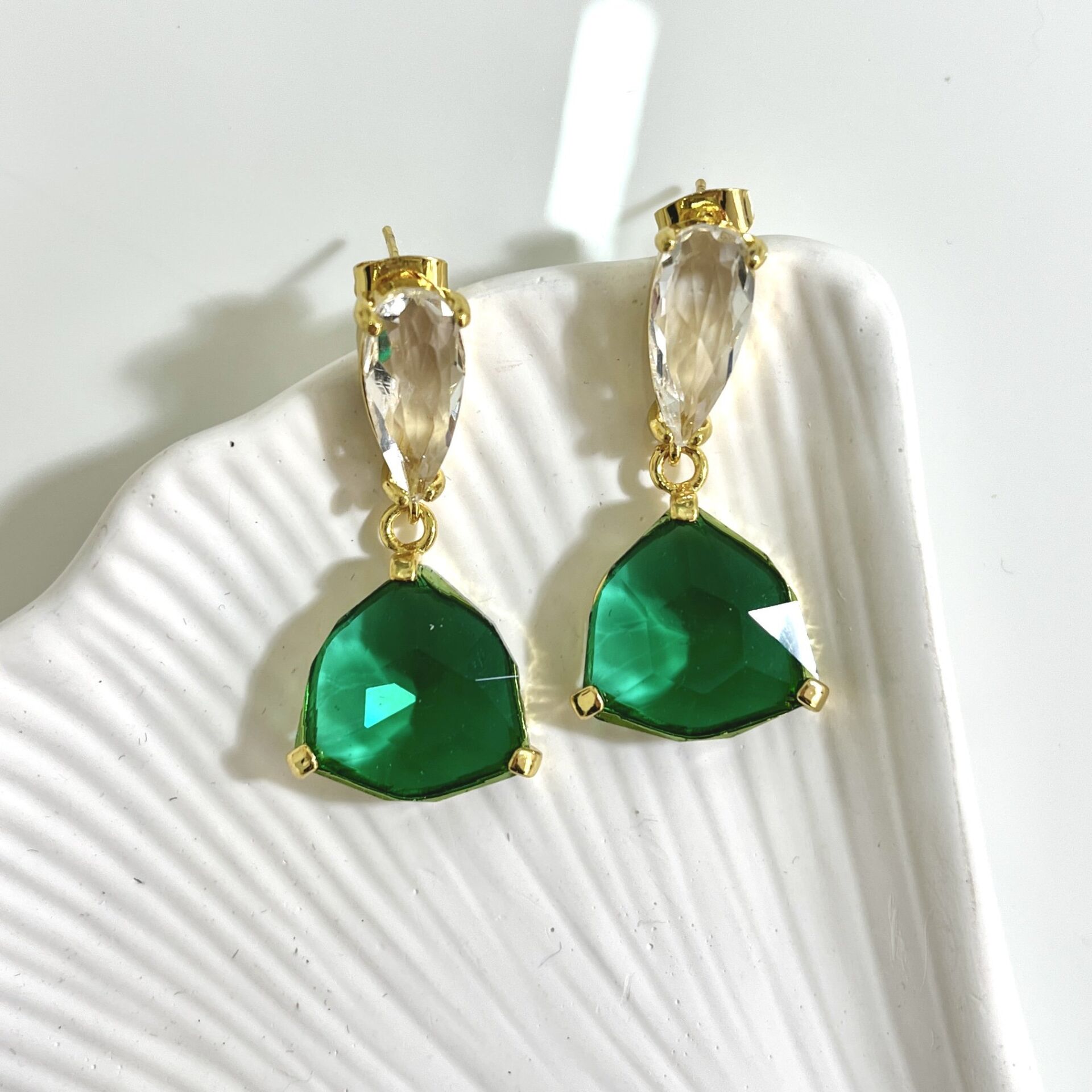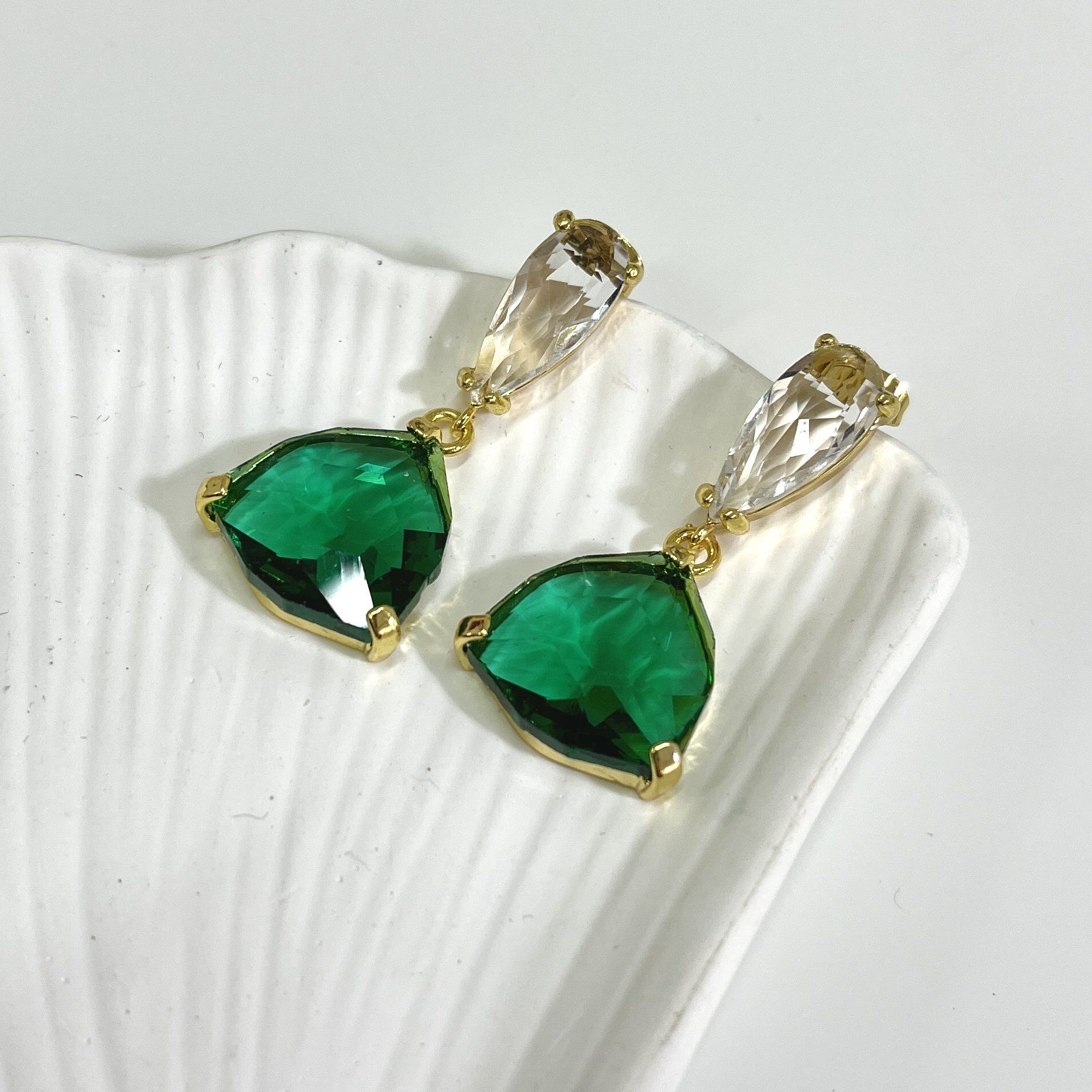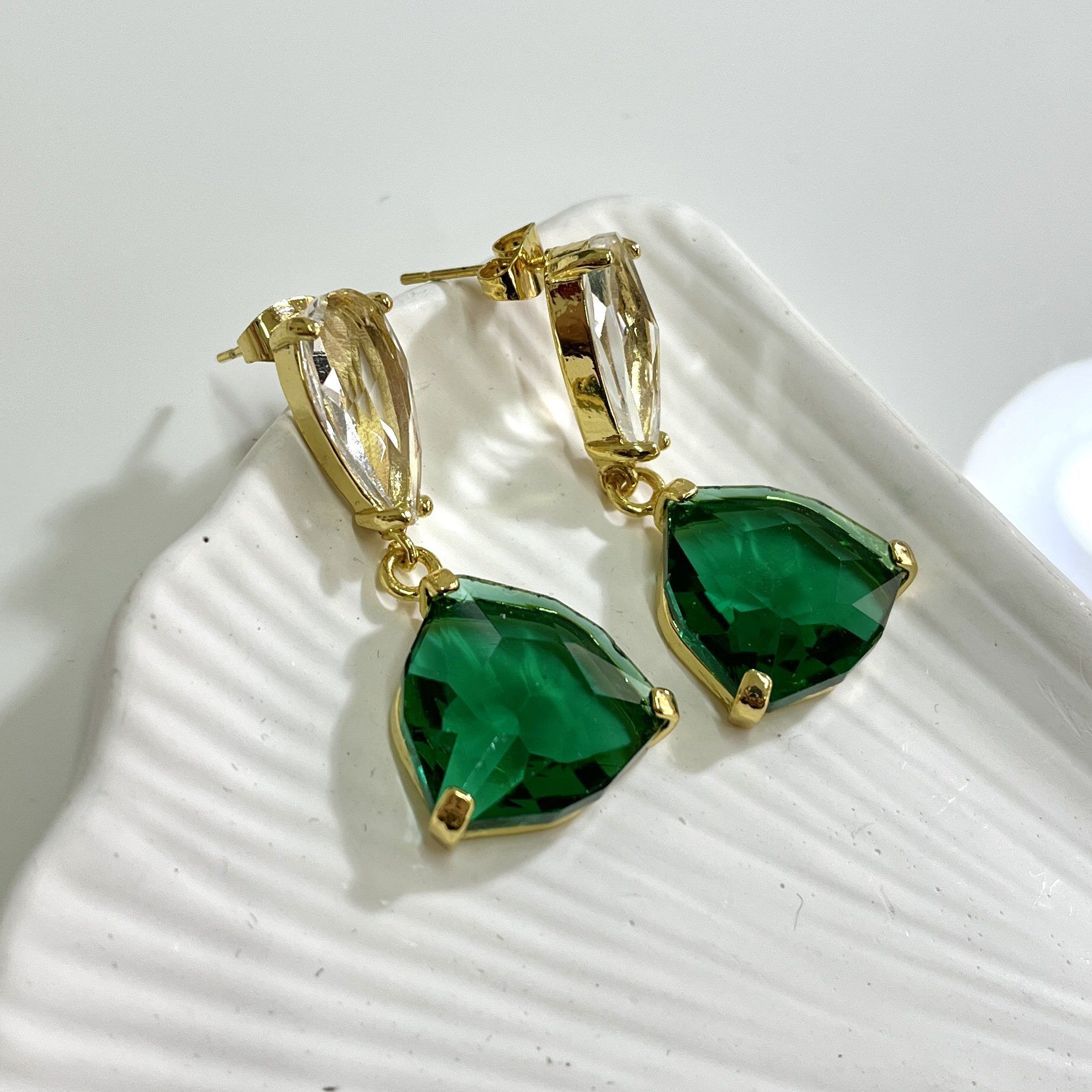 Çelik Yeşil Kristal Küpe