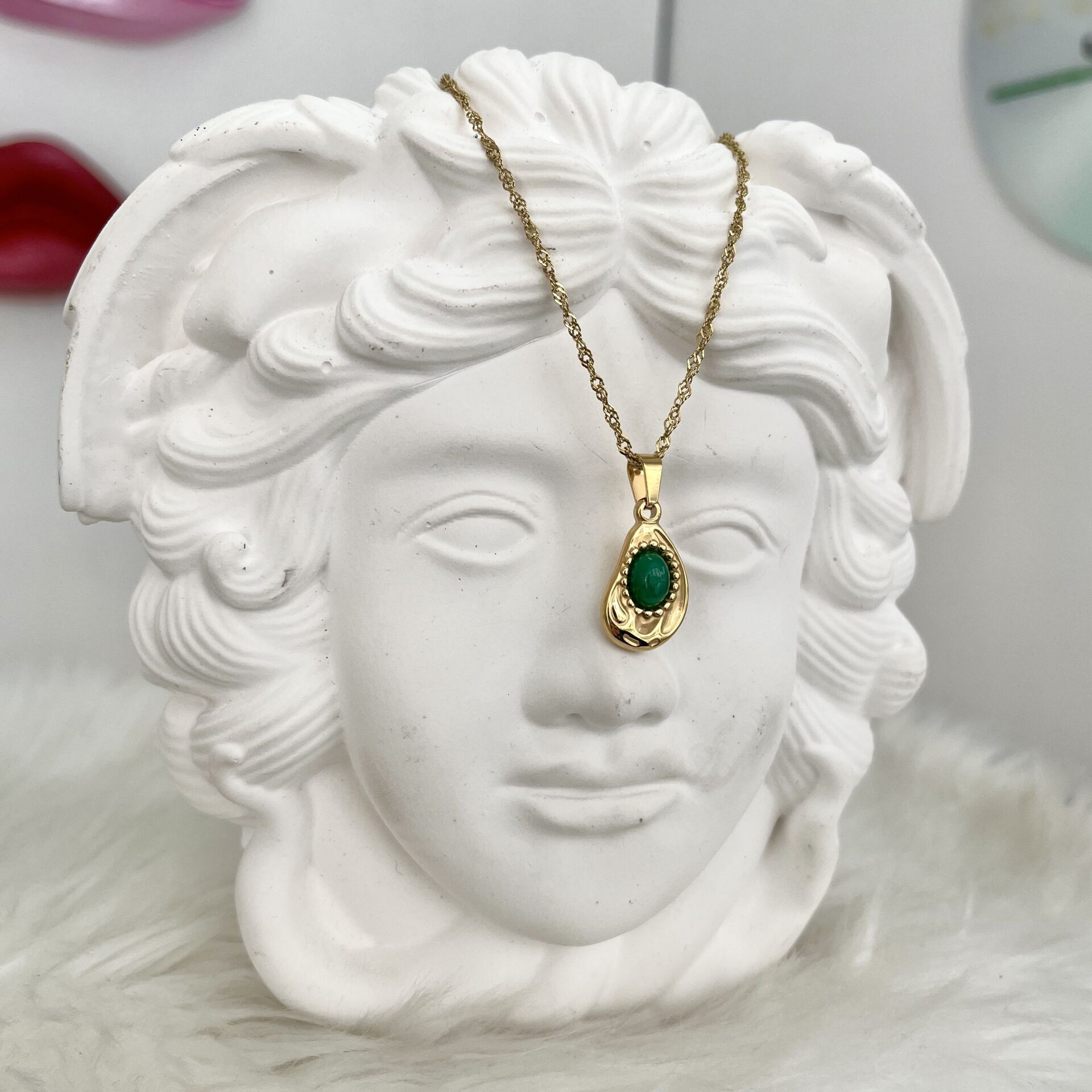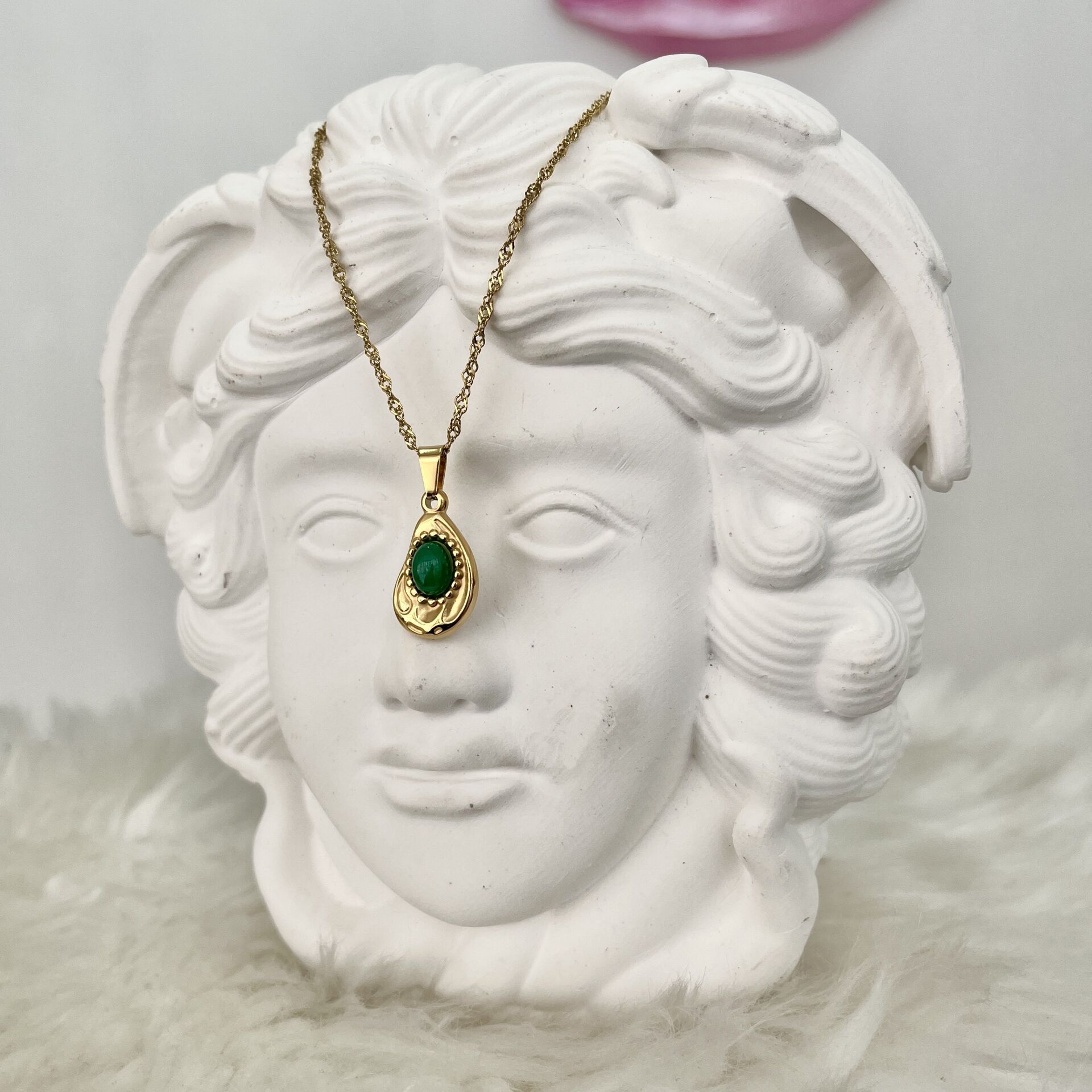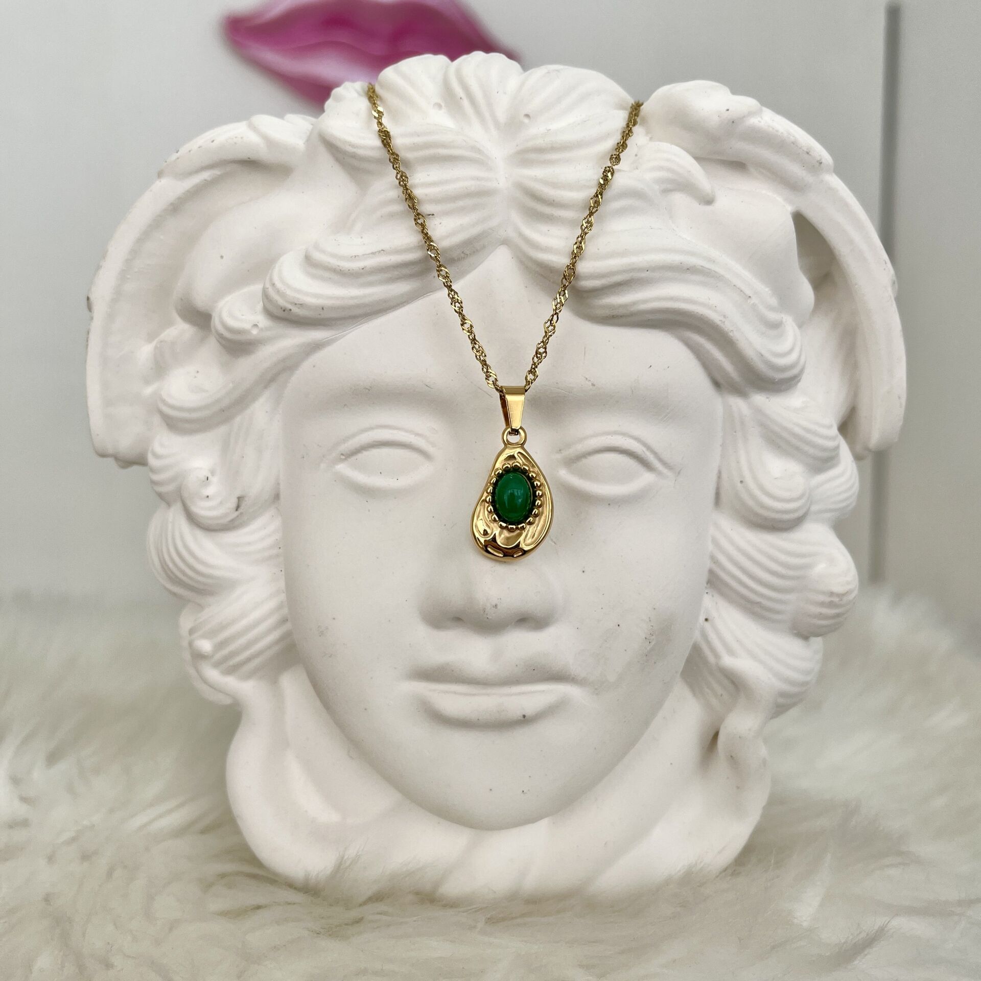 Çelik Yeşil Taşlı Kolye
