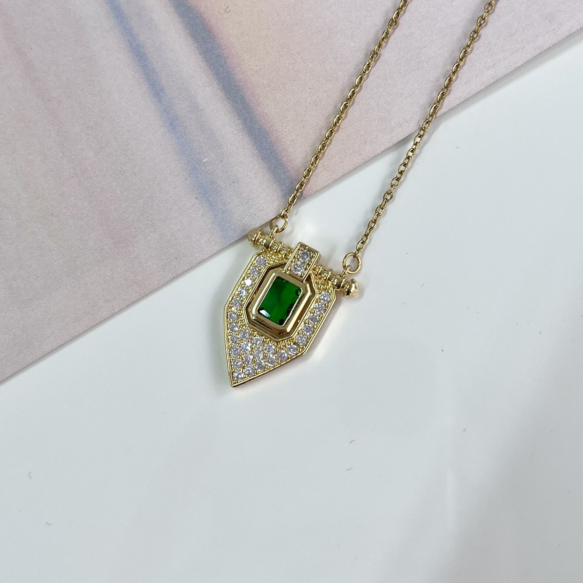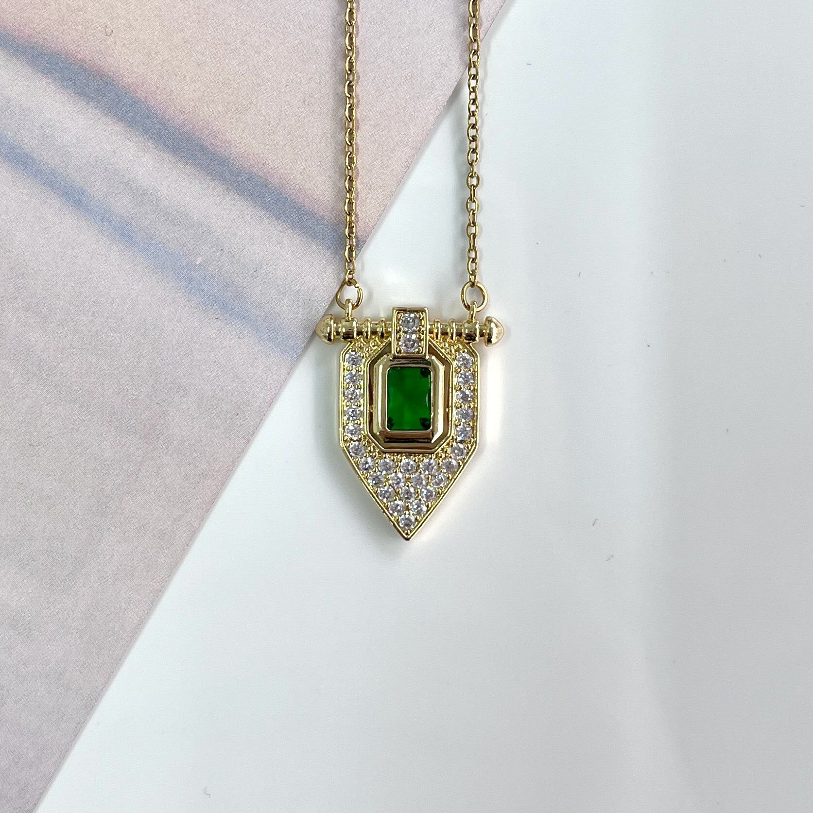 Çelik Yeşil Taşlı Kolye