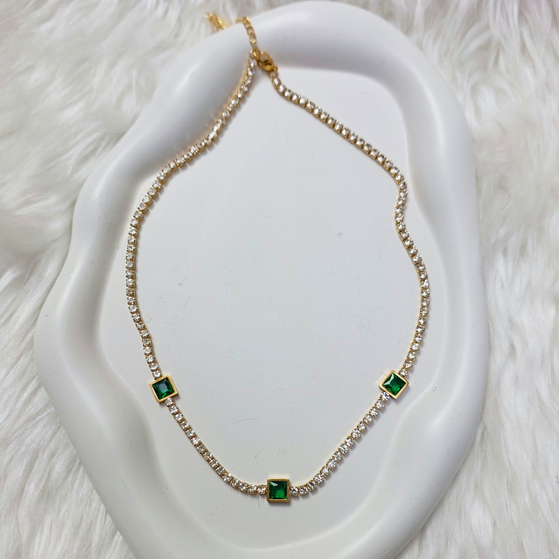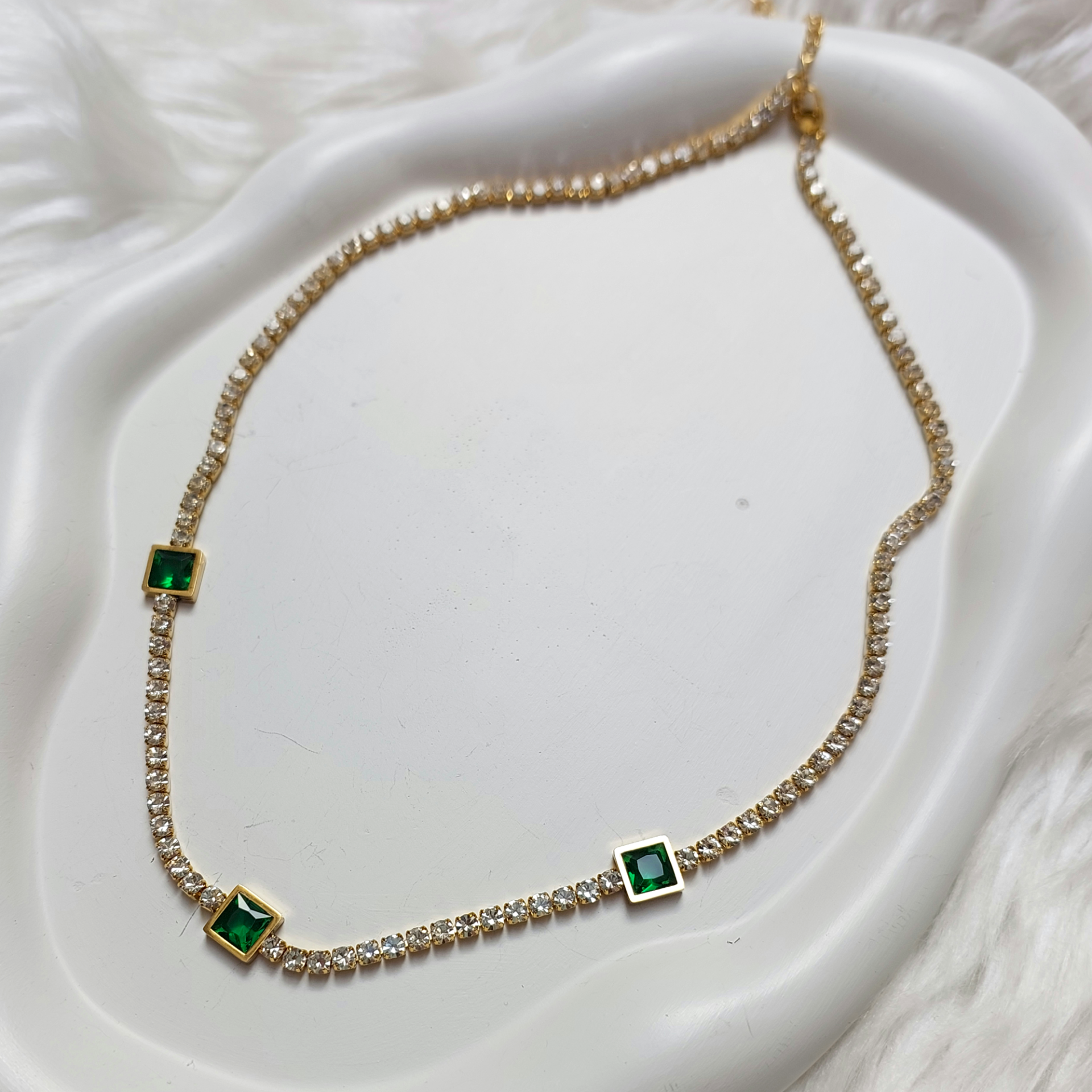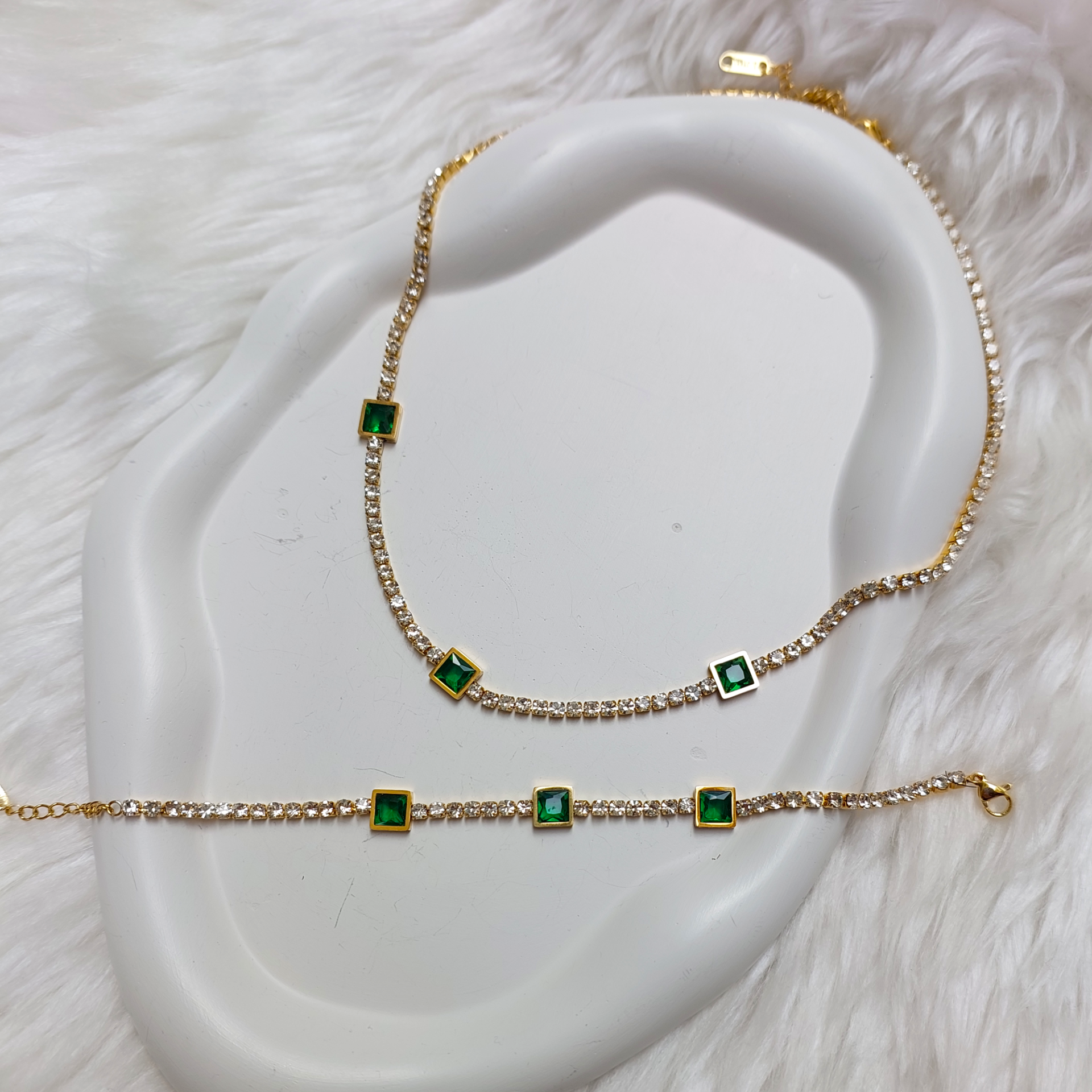 Çelik Yeşil Taşlı Su Yolu Kolye