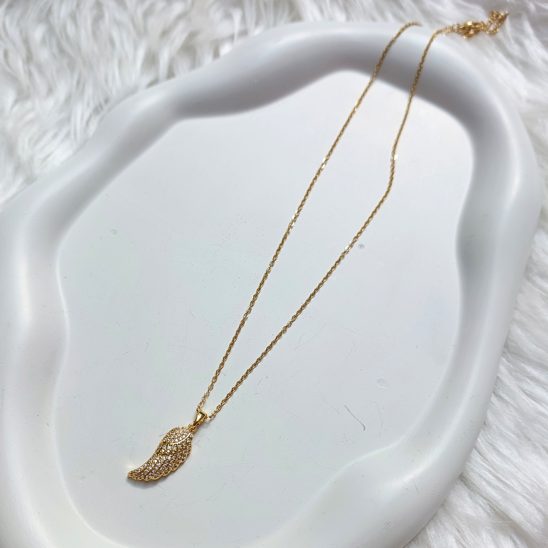 Çelik Zirkon Taş Kanat Kolye
