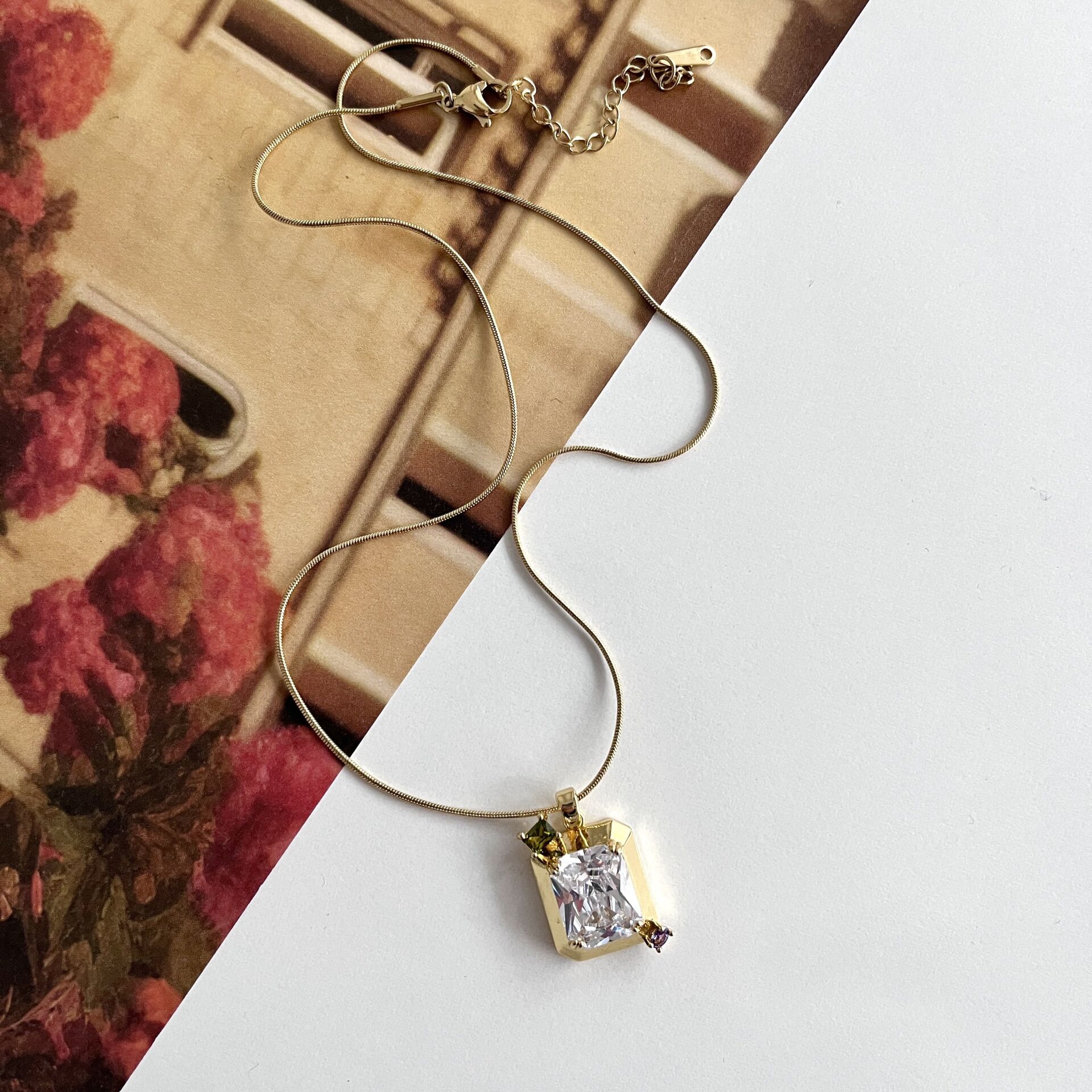 Çelik Zirkon Taş Kolye