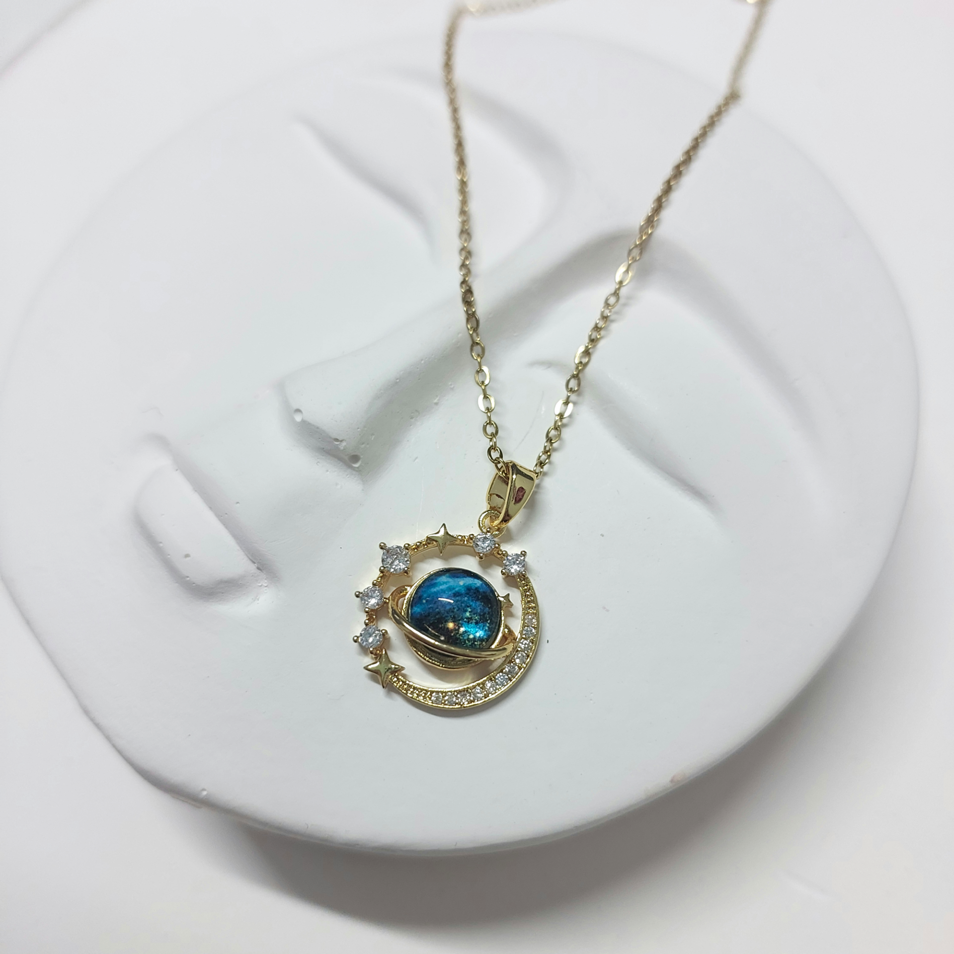Çelik Zirkon Taşlı Gezegen Kolye