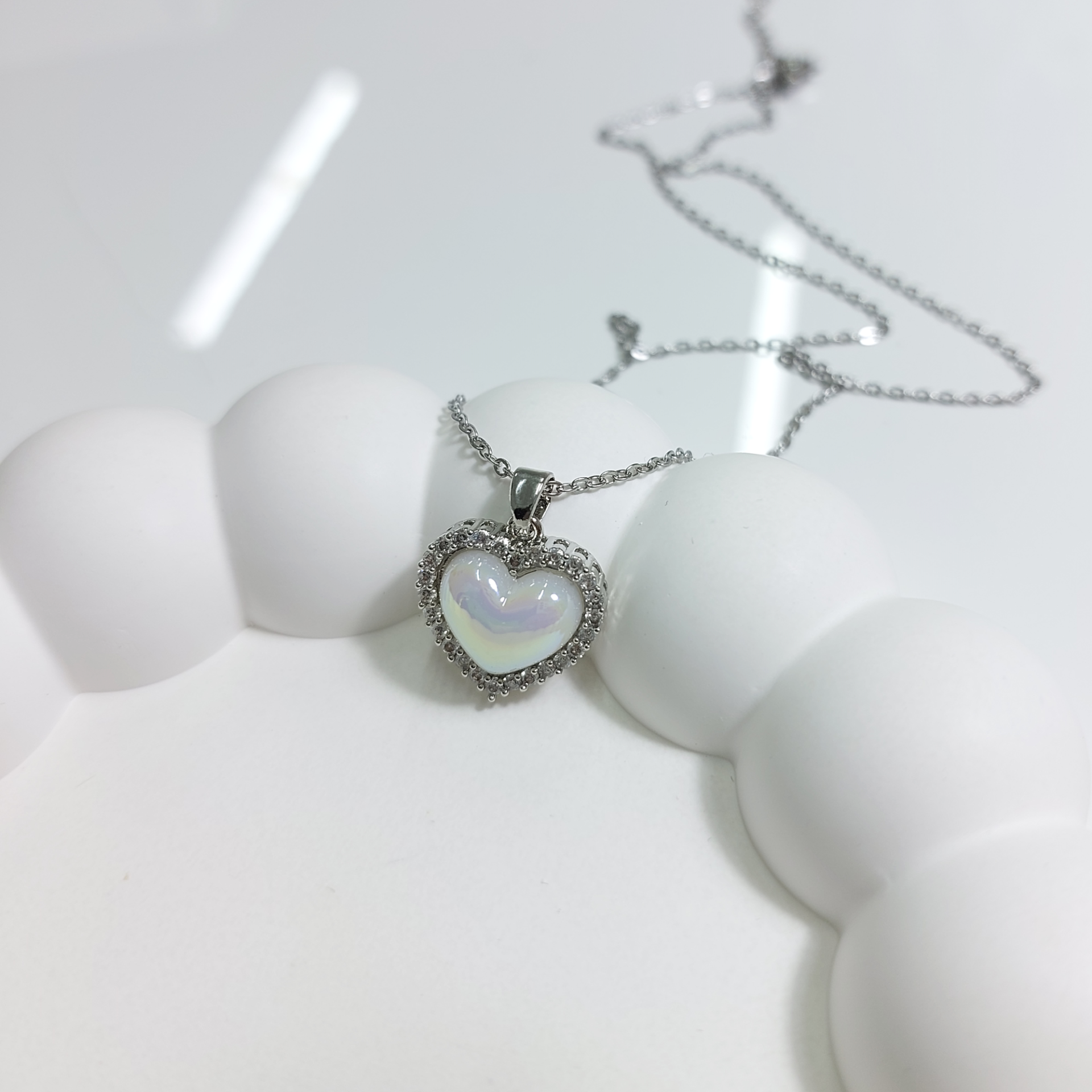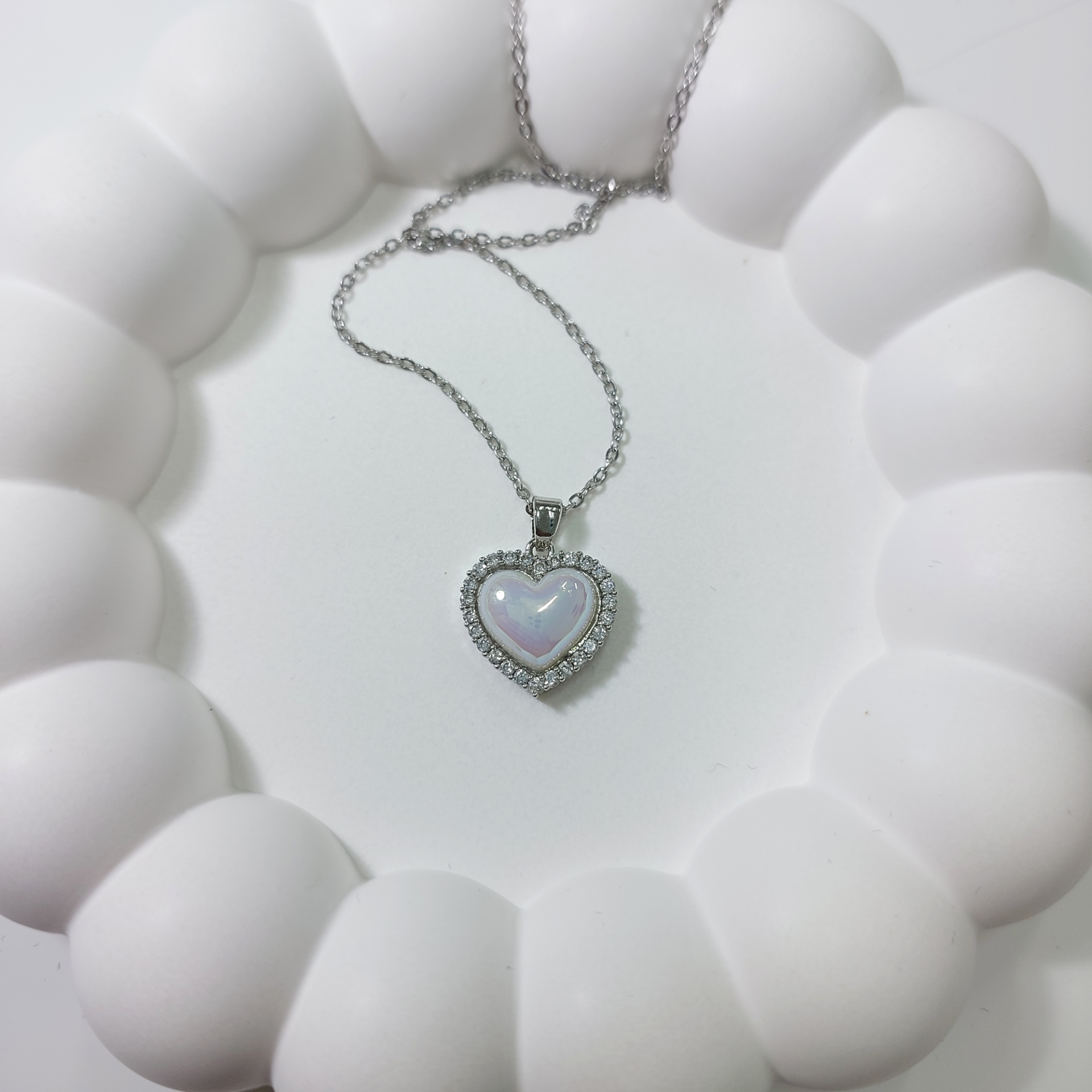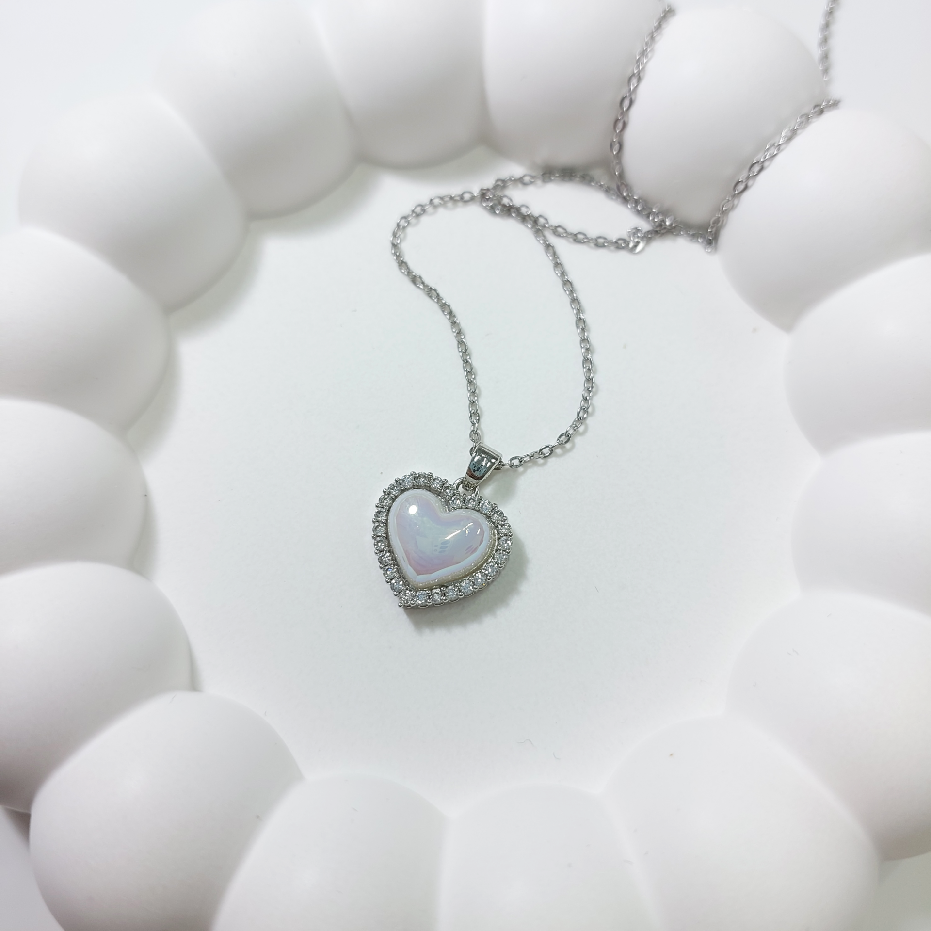 Çelik Zirkon Taşlı Kalp Kolye