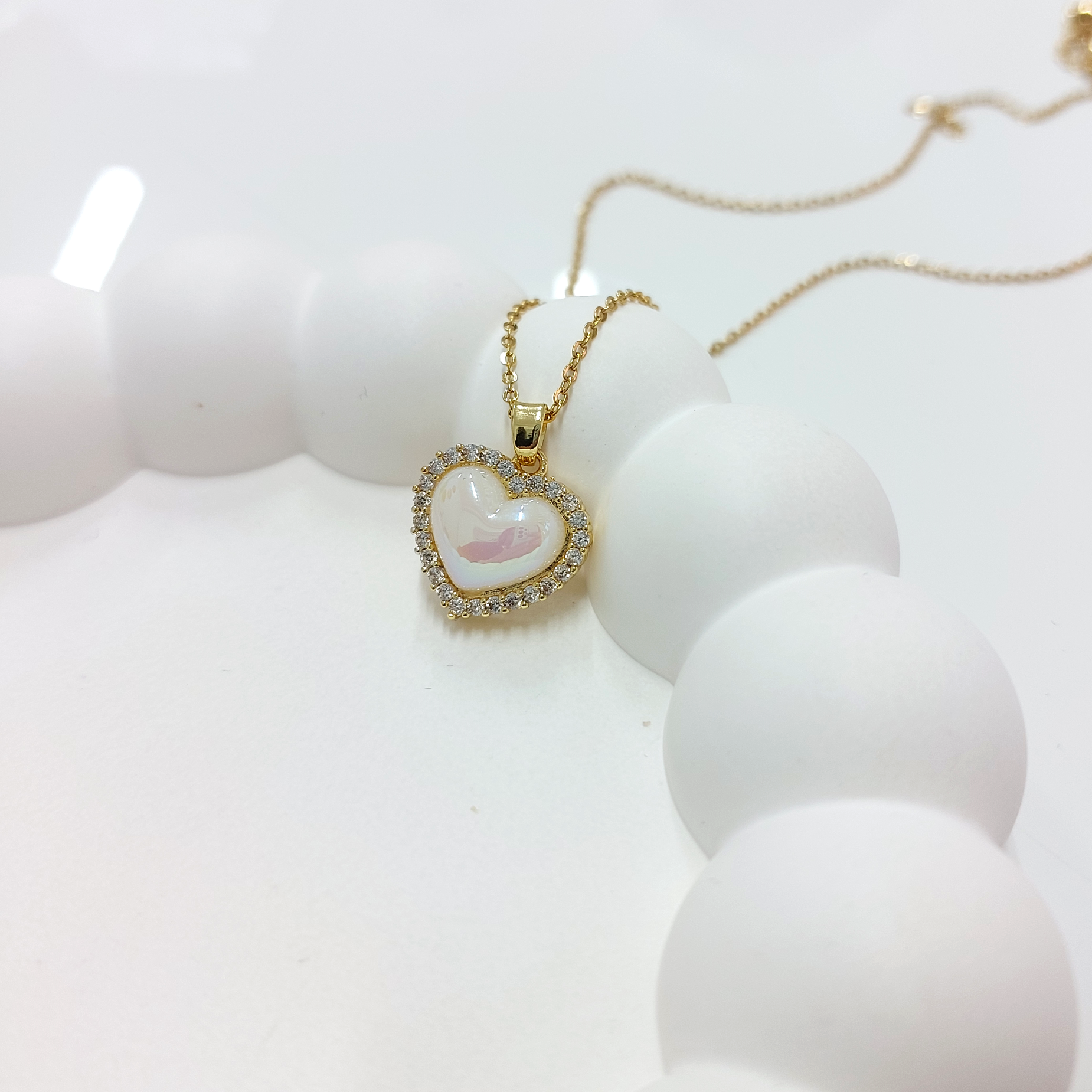 Çelik Zirkon Taşlı Kalp Kolye