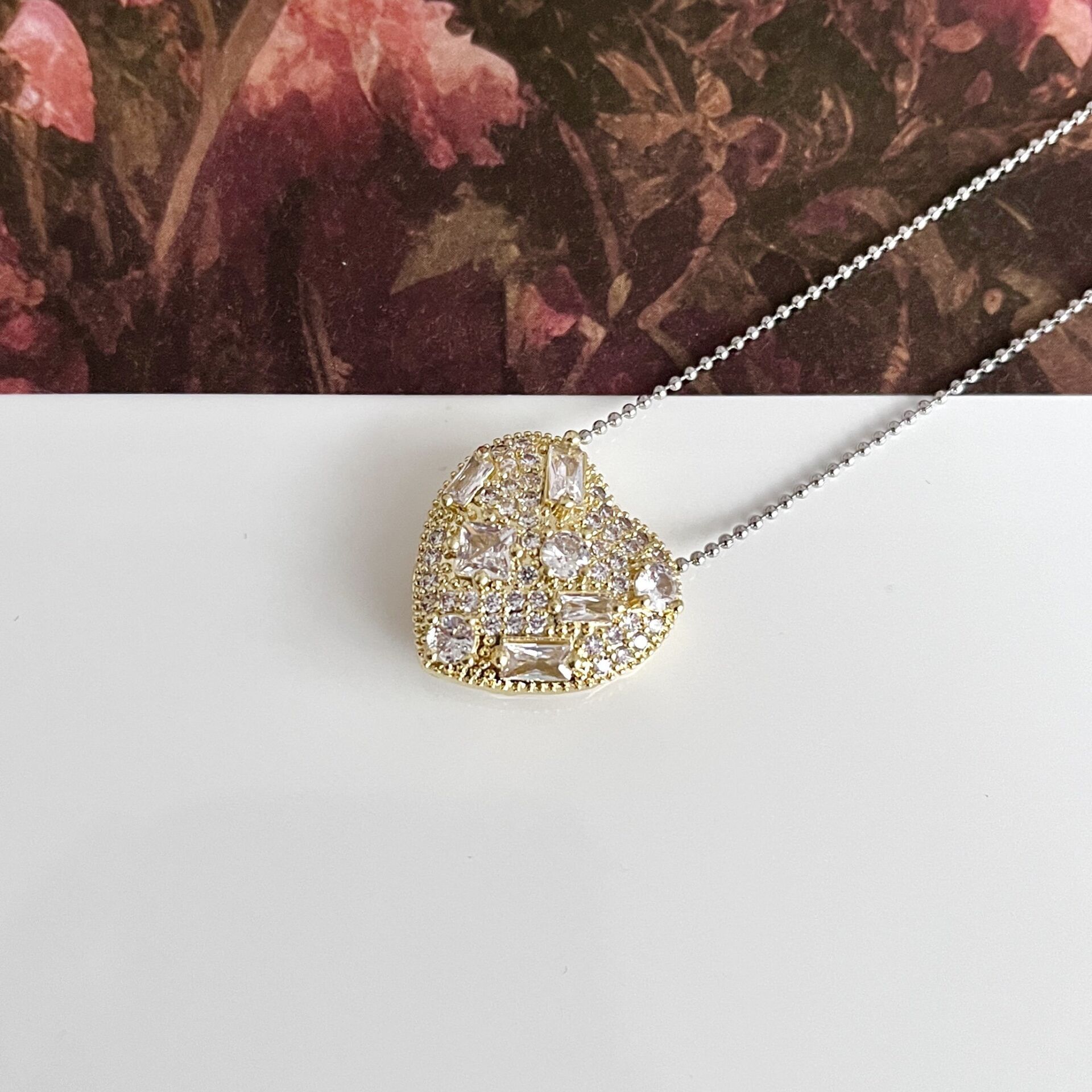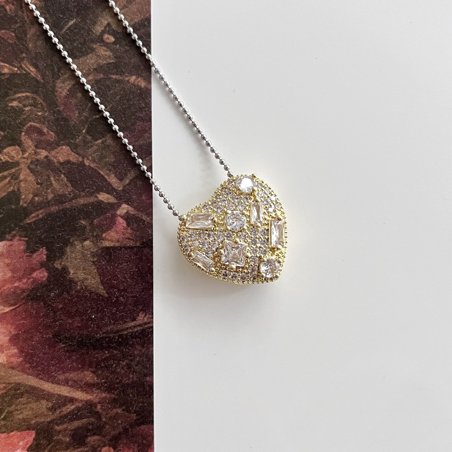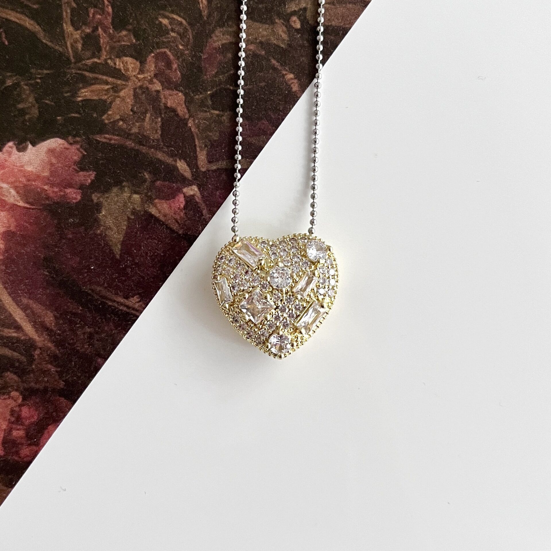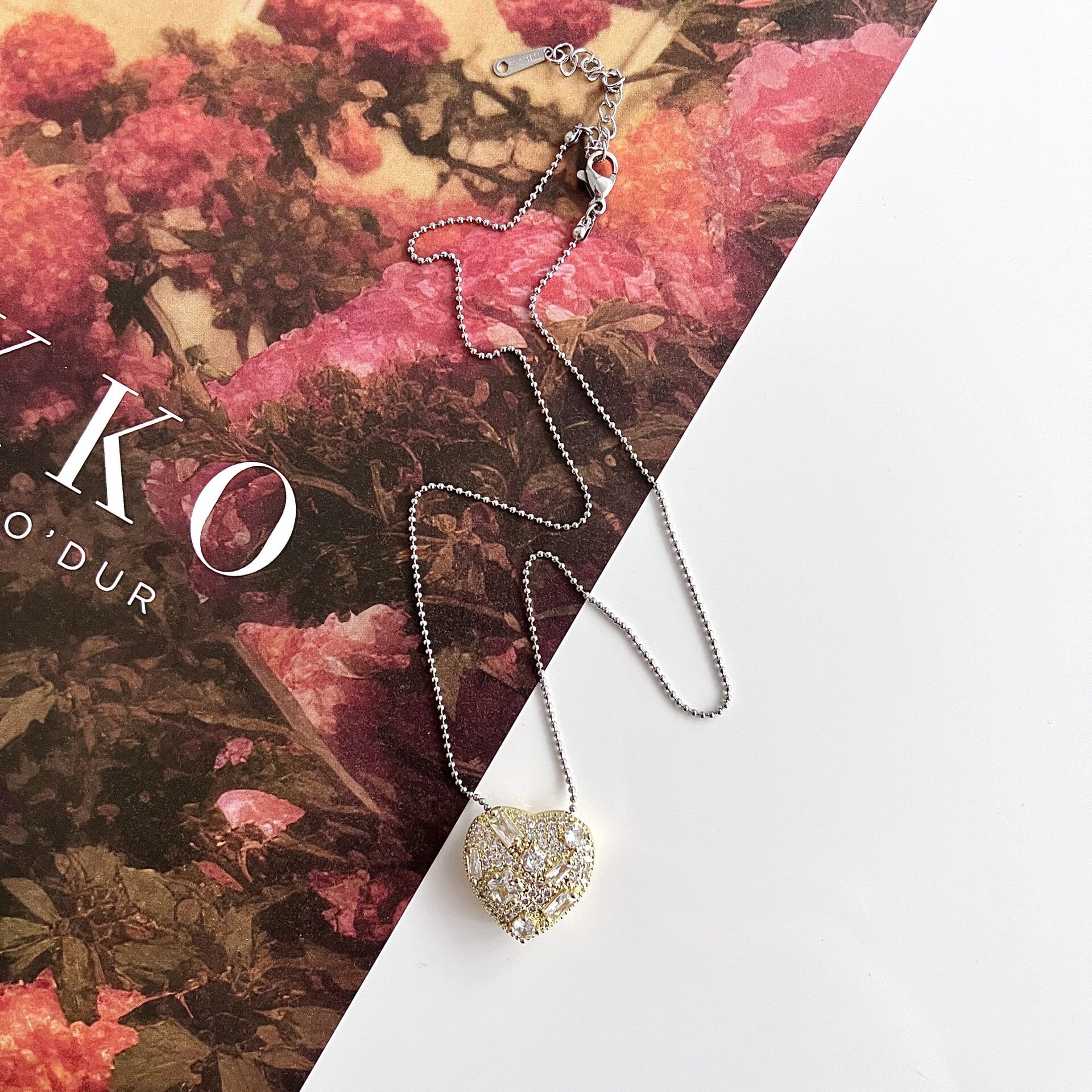 Çelik Zirkon Taşlı Kalp Kolye