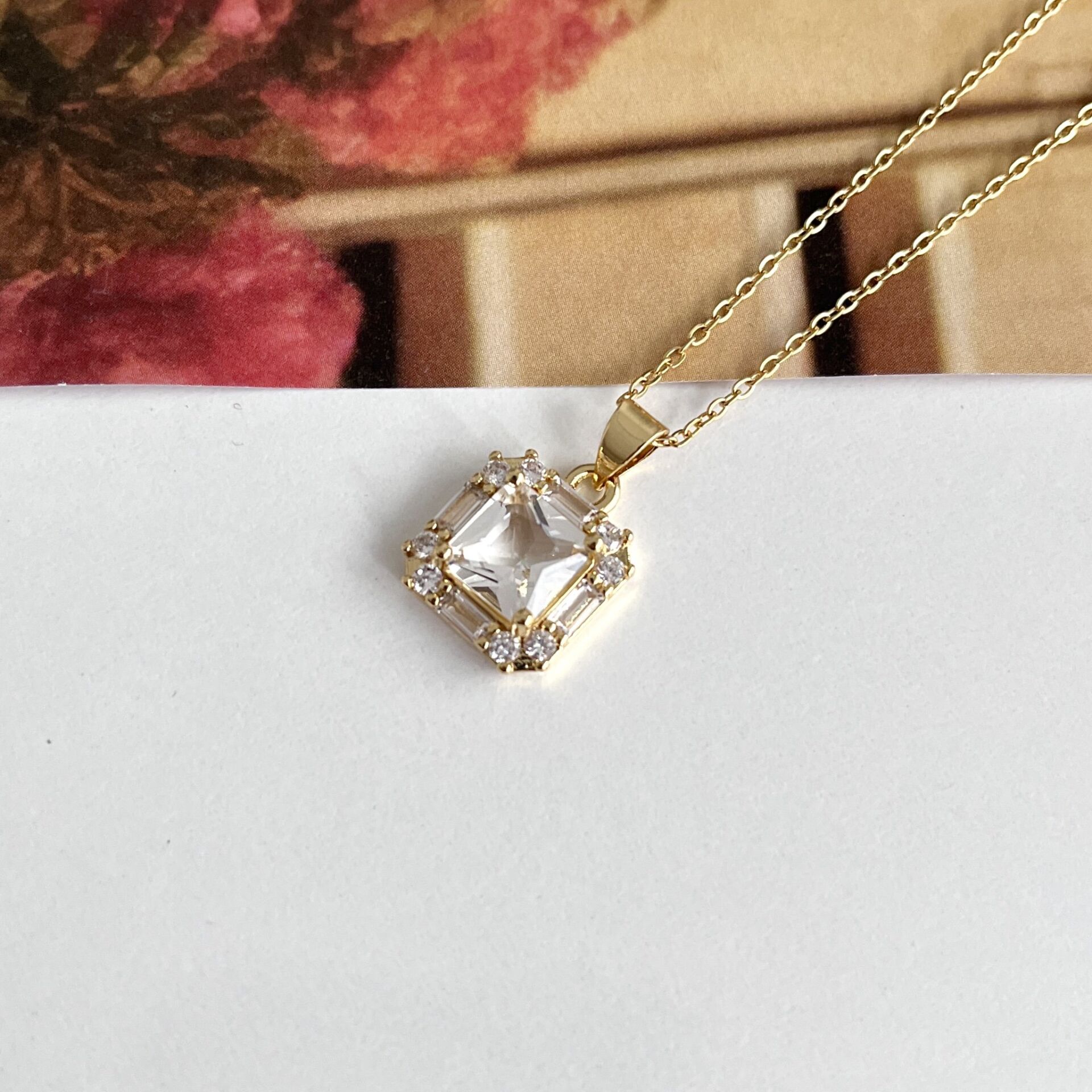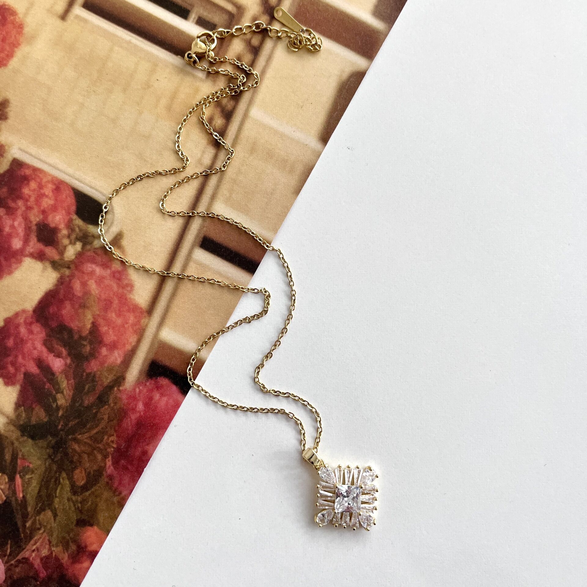 Çelik Zirkon Taşlı Kolye