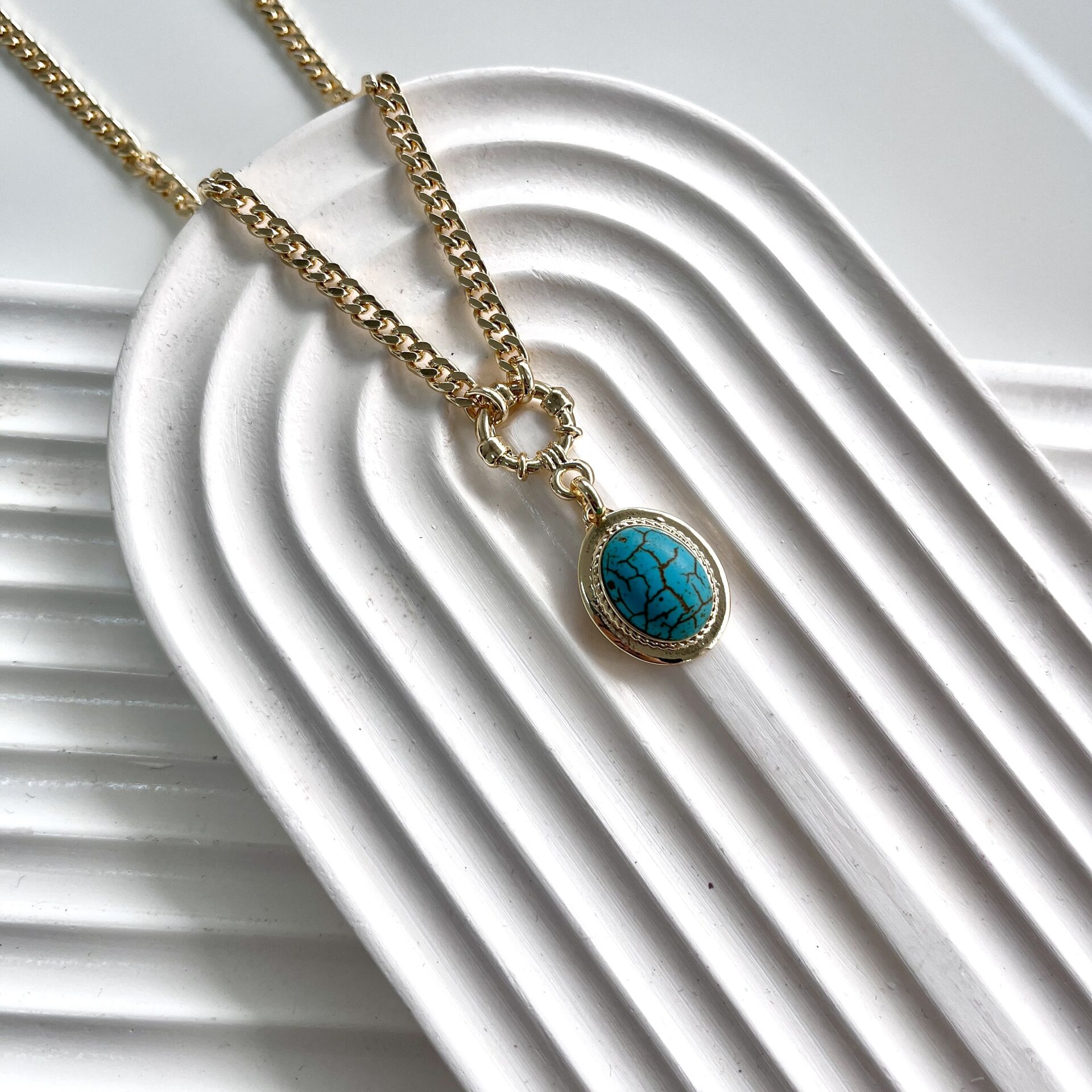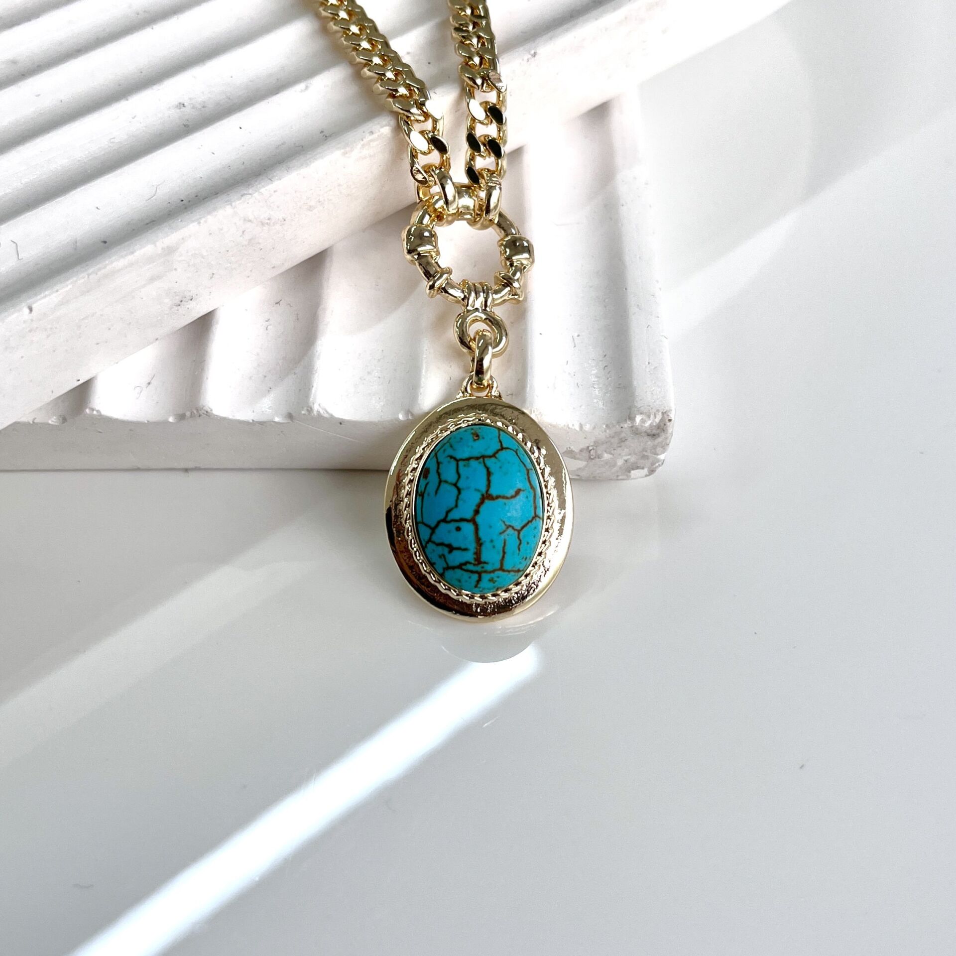 Doğal Turkuaz taşlı pirinç kaplama kolye.