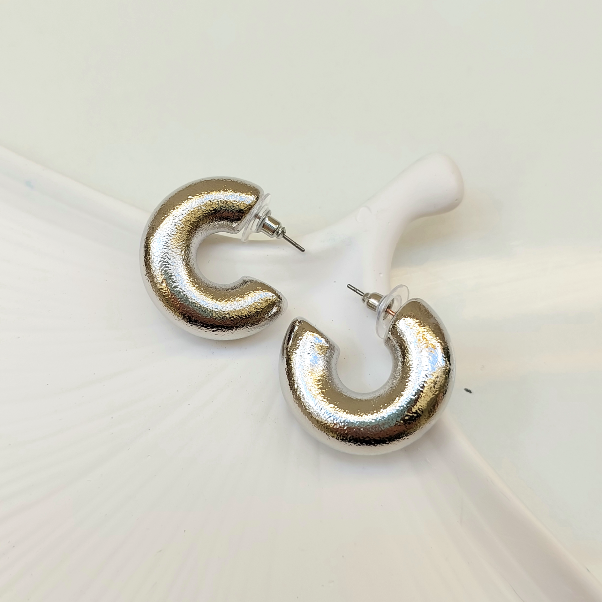 Özel seri kararmaya dayanıklı rodyum kaplama büyük boy küpe.
