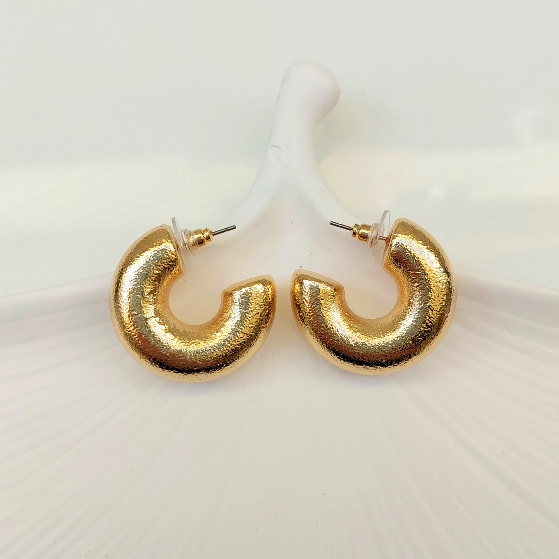 Özel seri kararmaya dayanıklı rodyum kaplama büyük boy küpe.