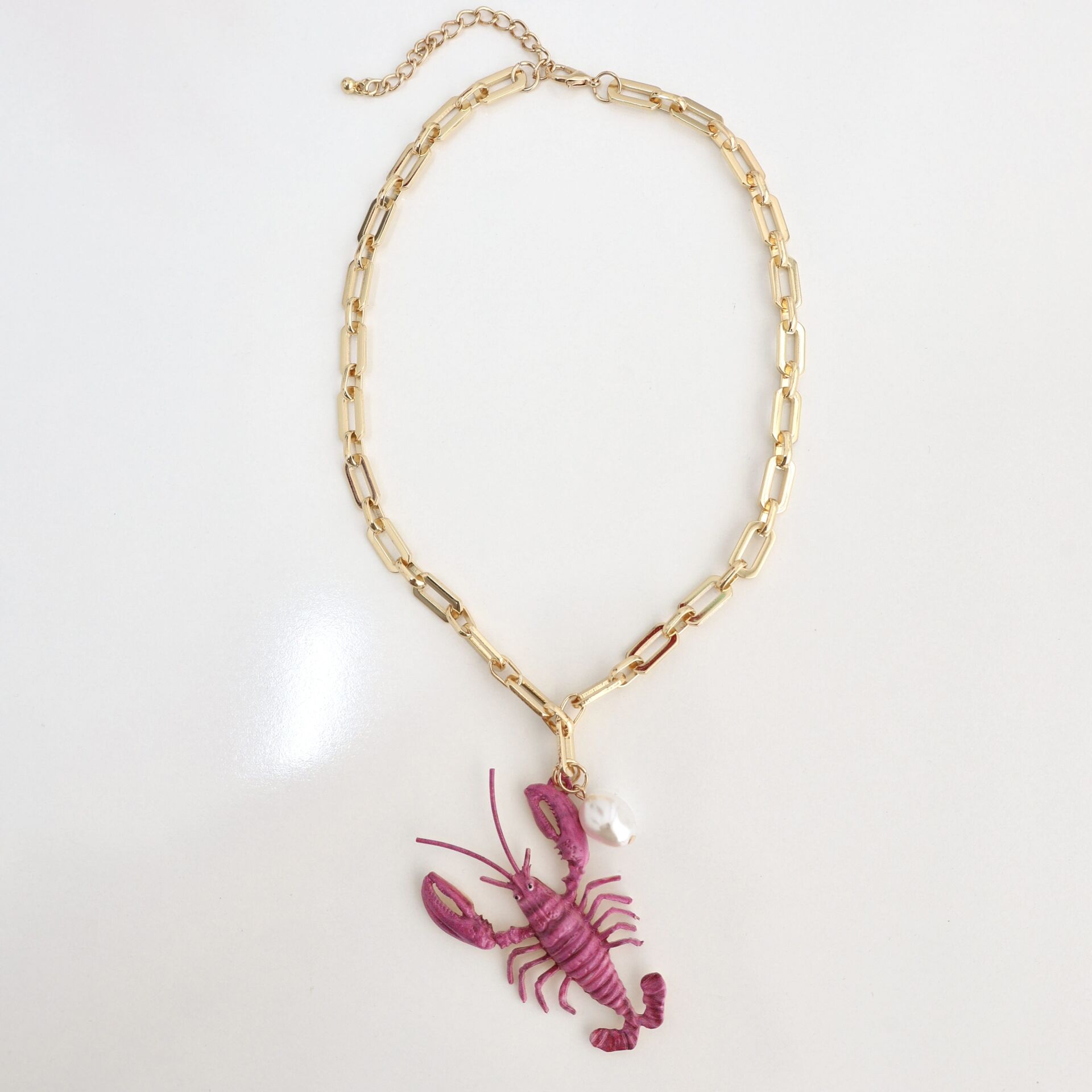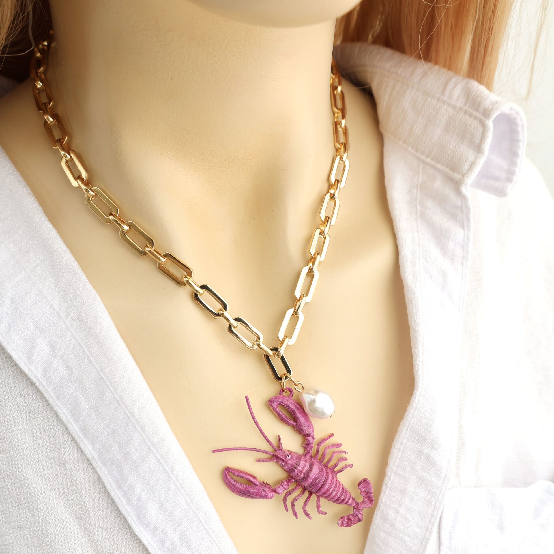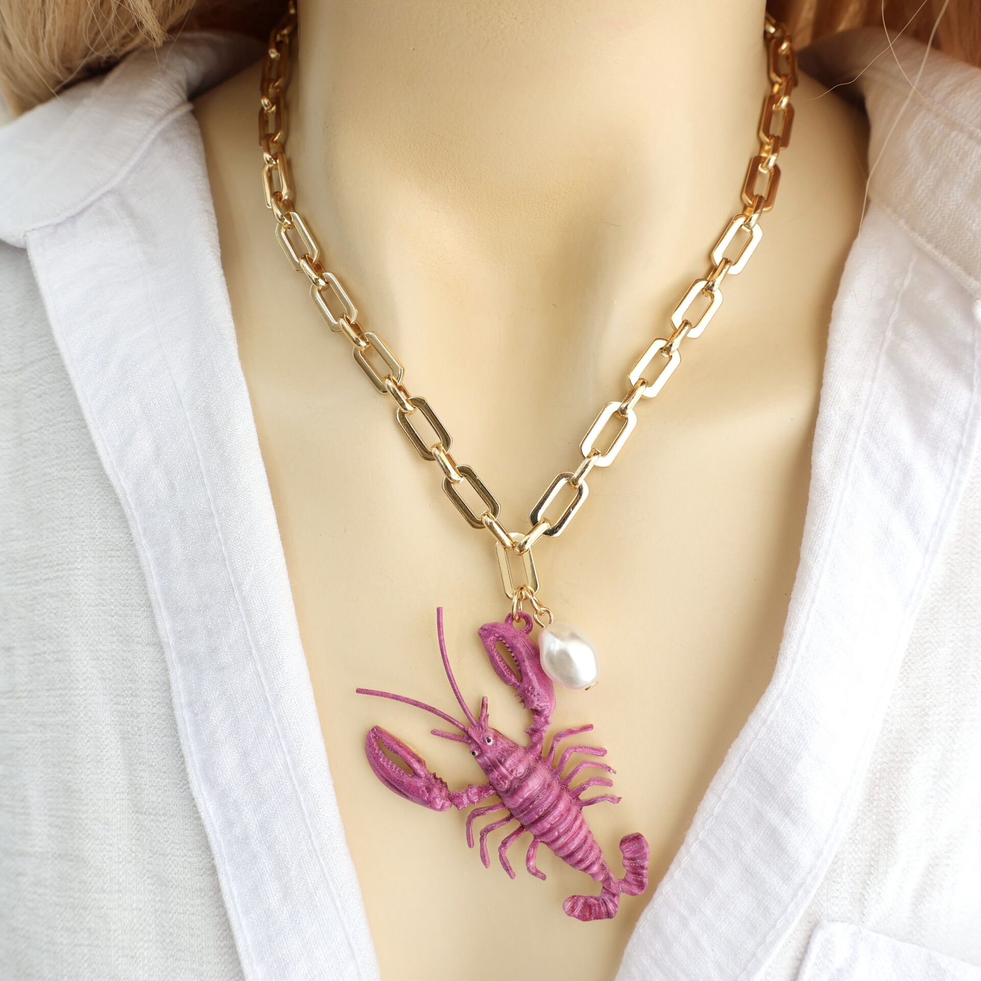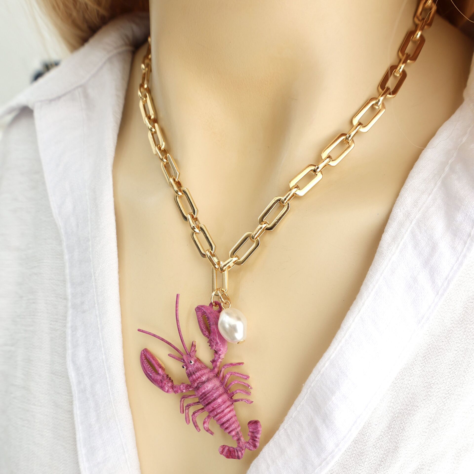 Kalın zincirli inci detay ıstakoz kolye.
