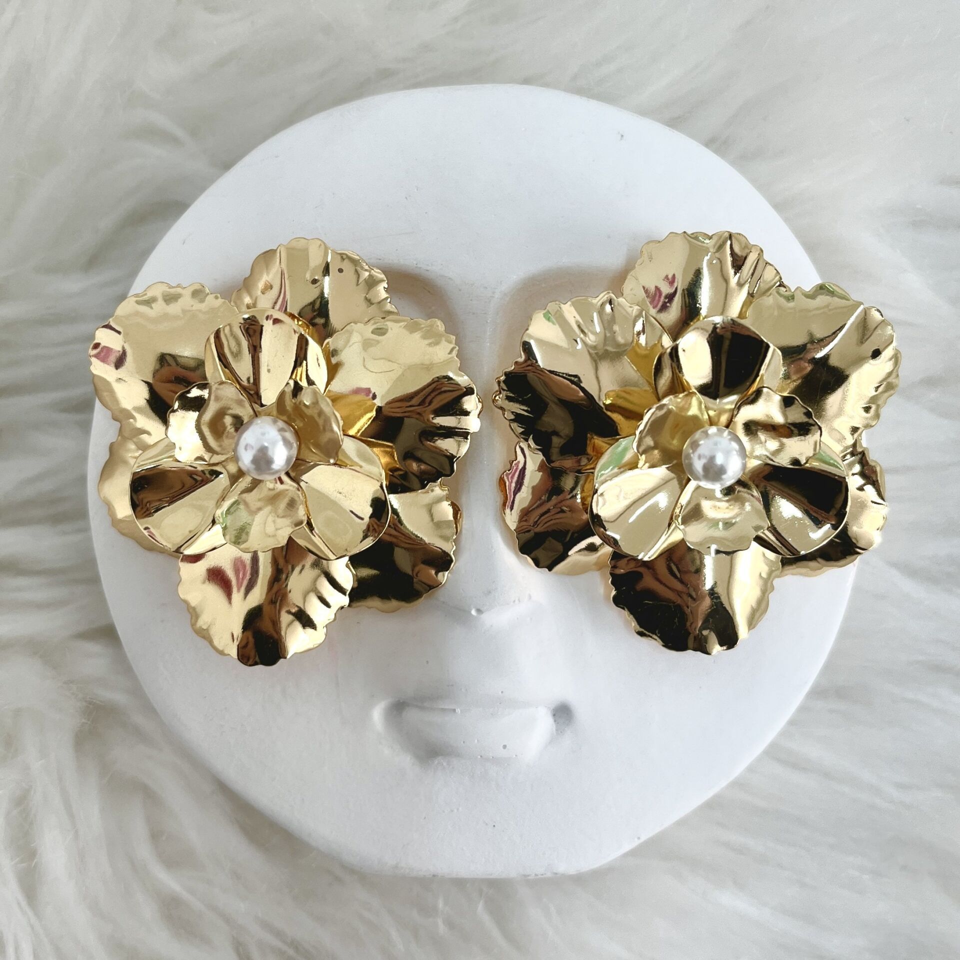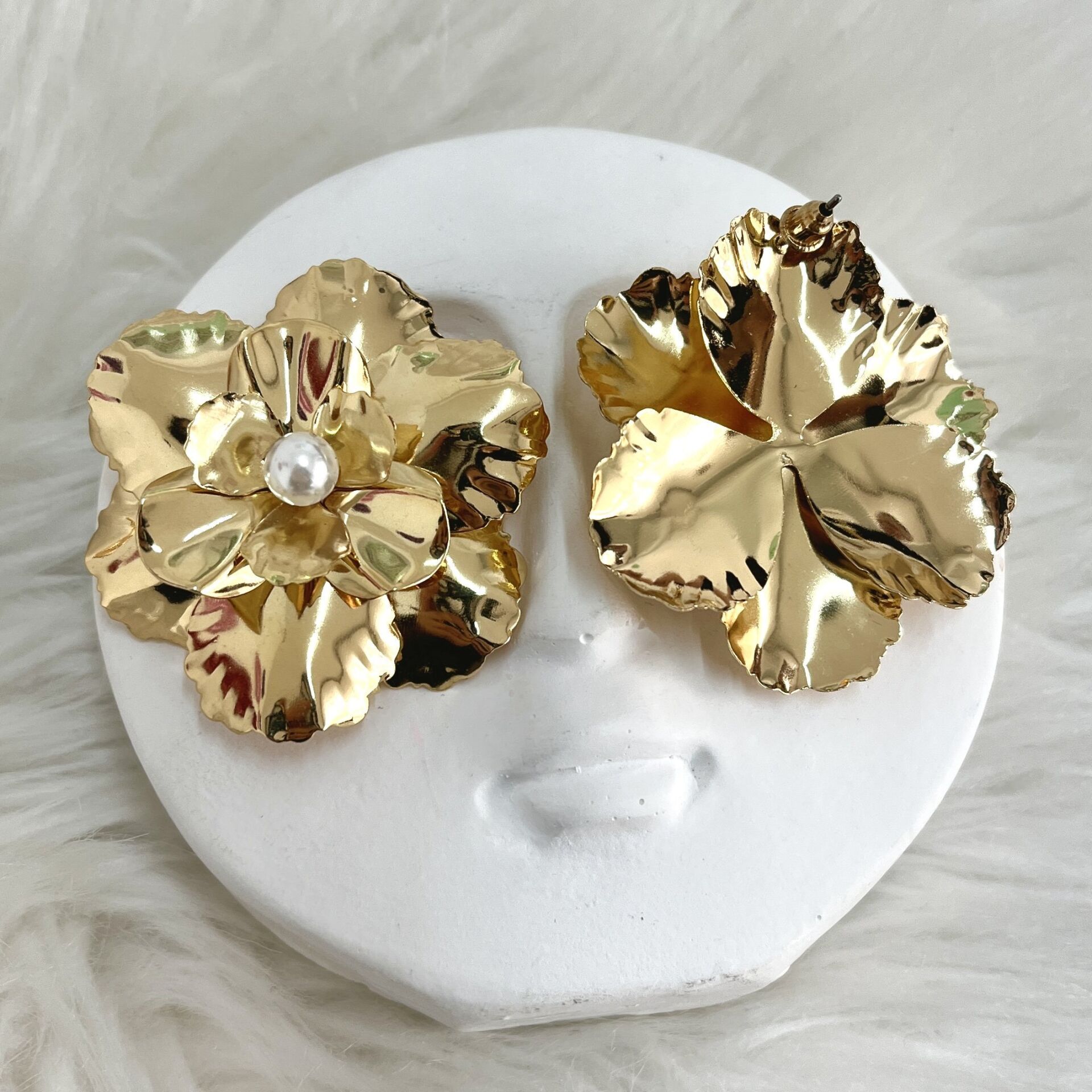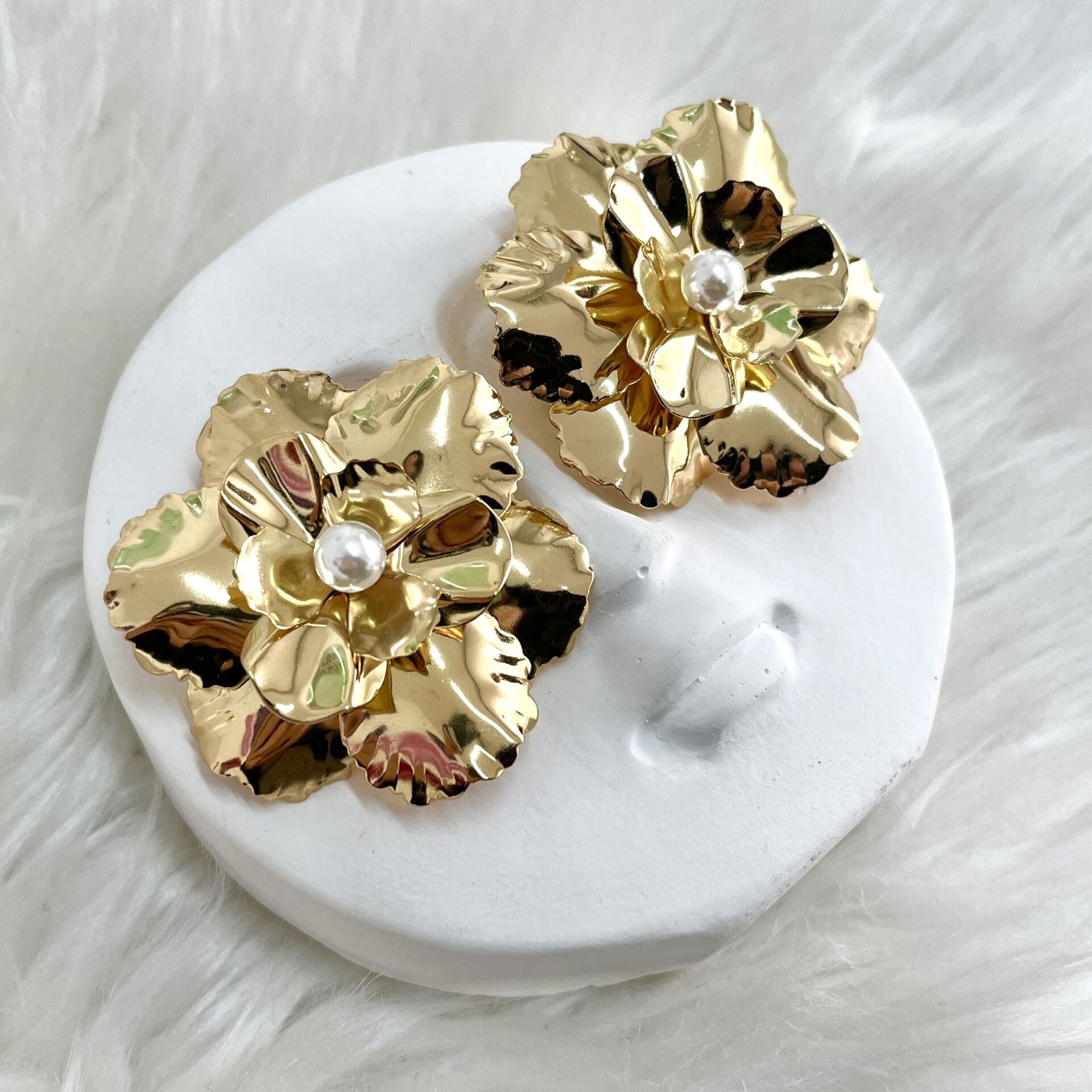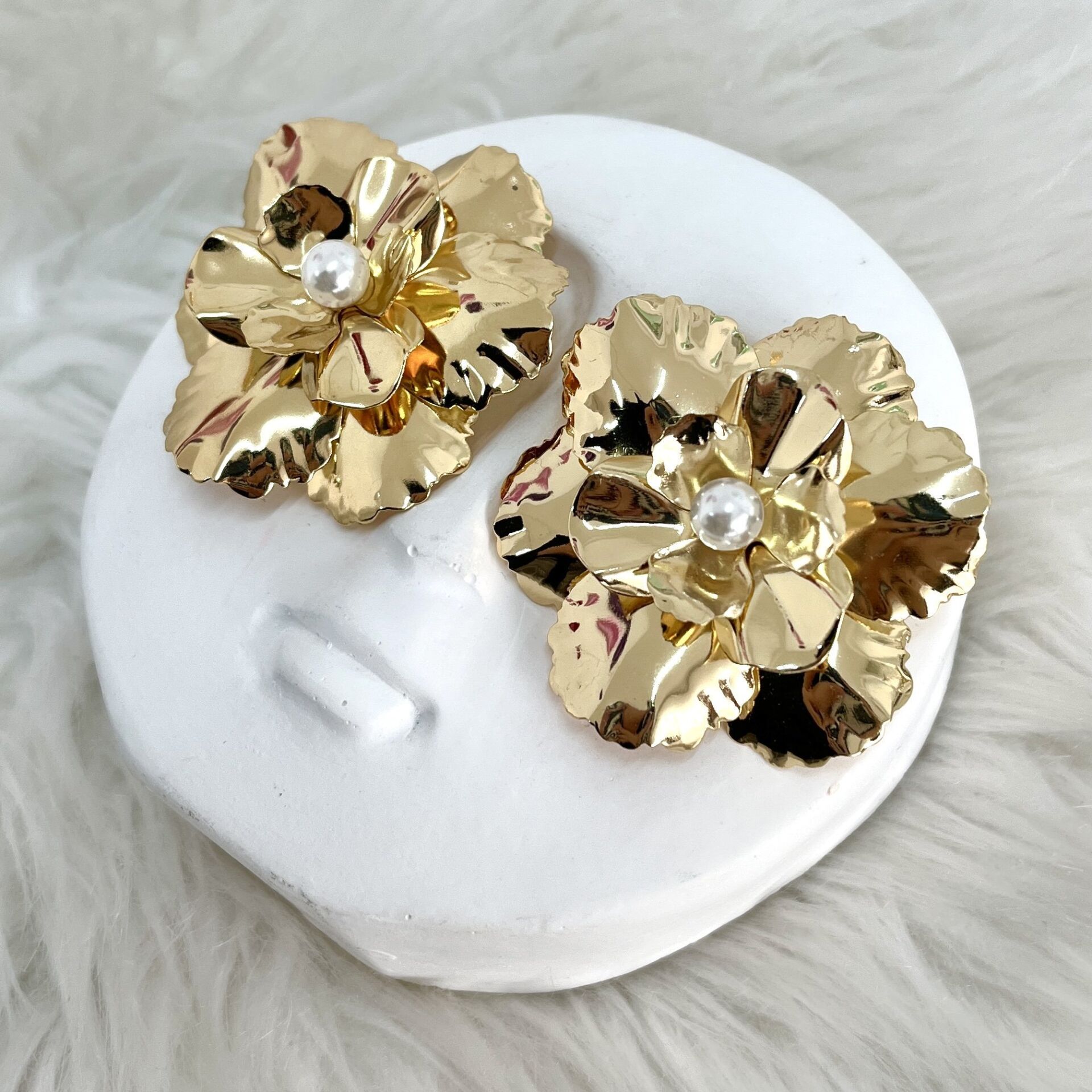İthal İnci Detay Çiçek Vip Küpe (Gold)