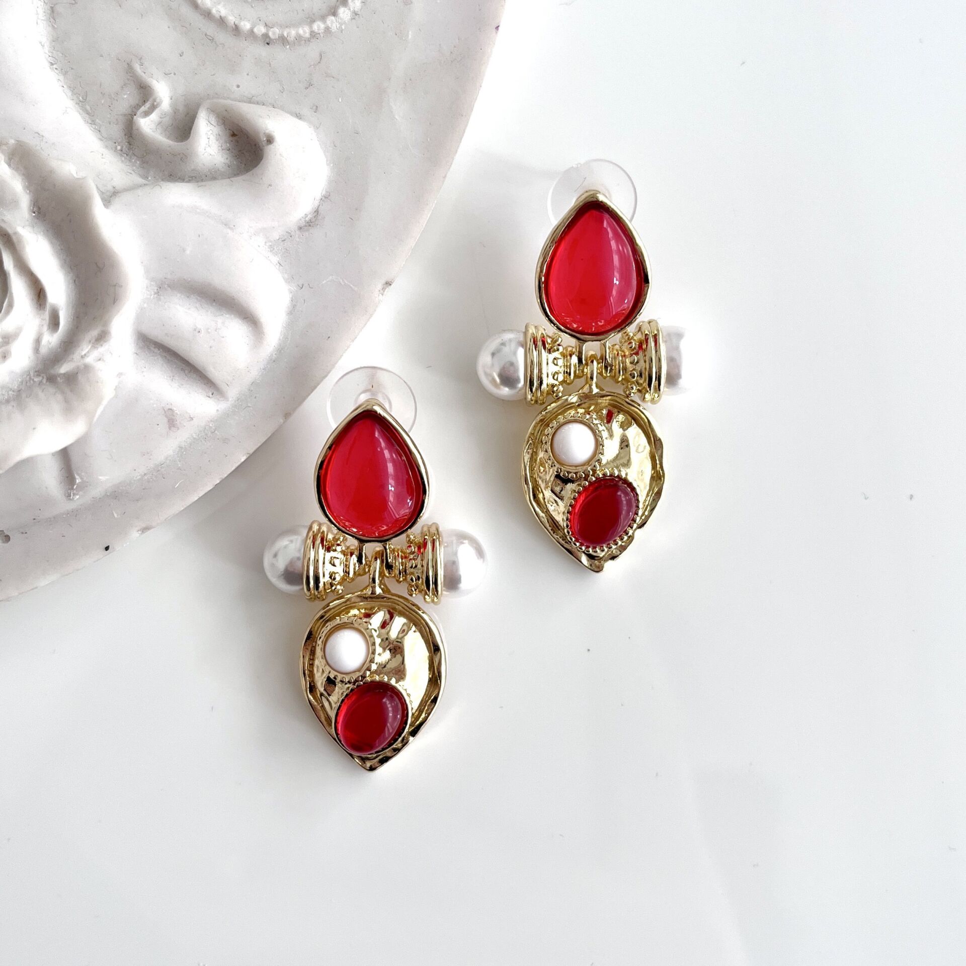 İthal İnci Detay Kırmızı Küpe