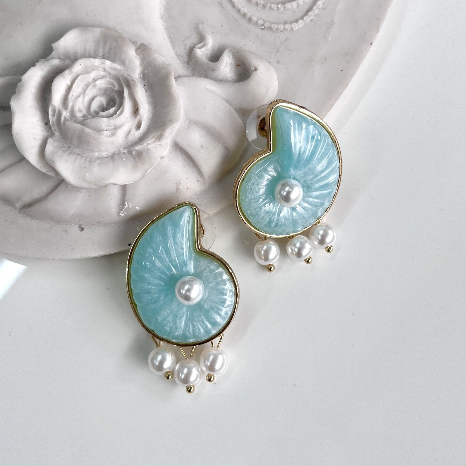 İthal İnci Detay Salyangoz Küpe