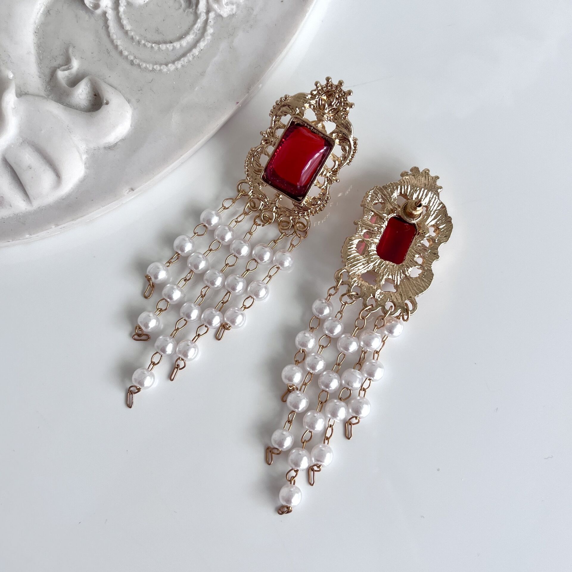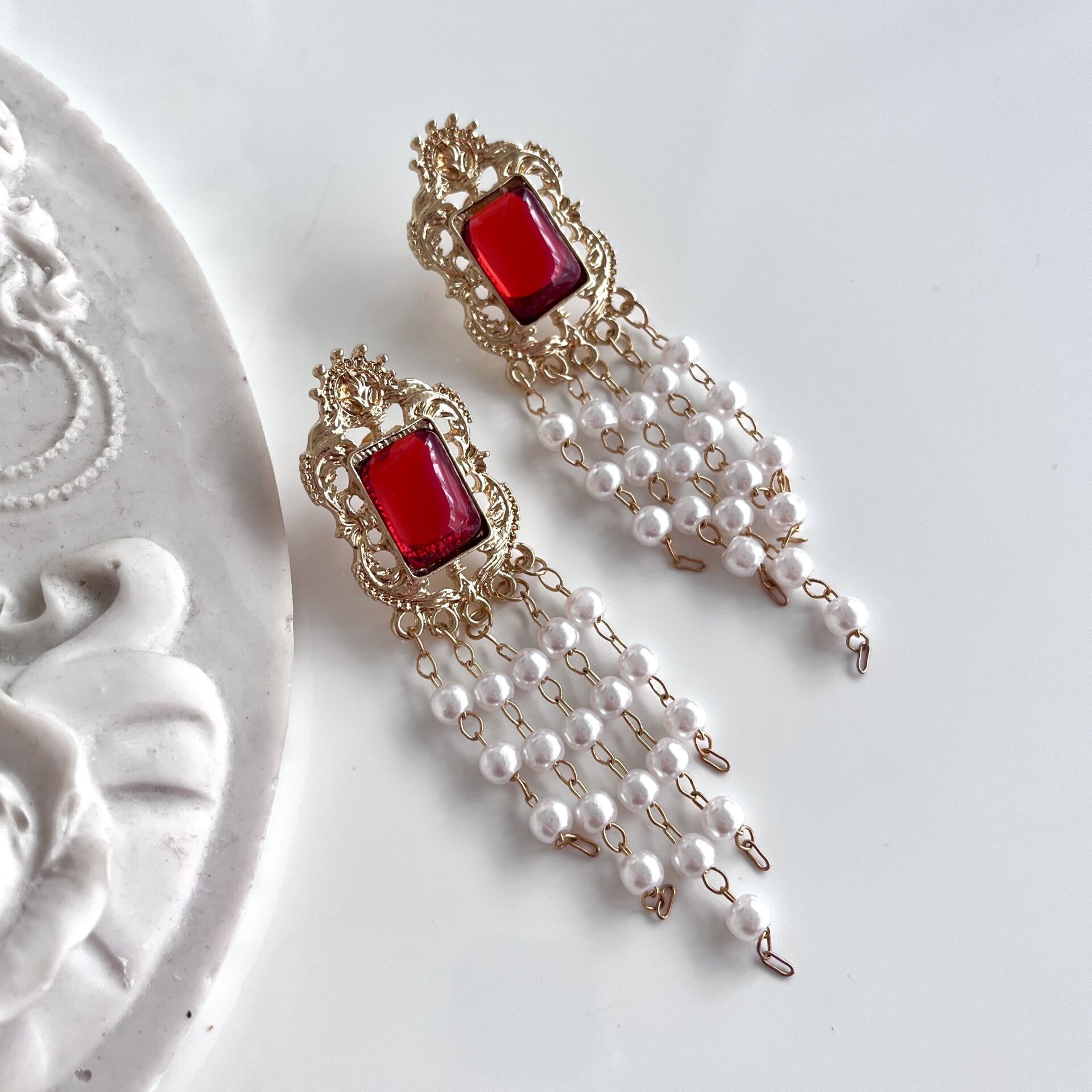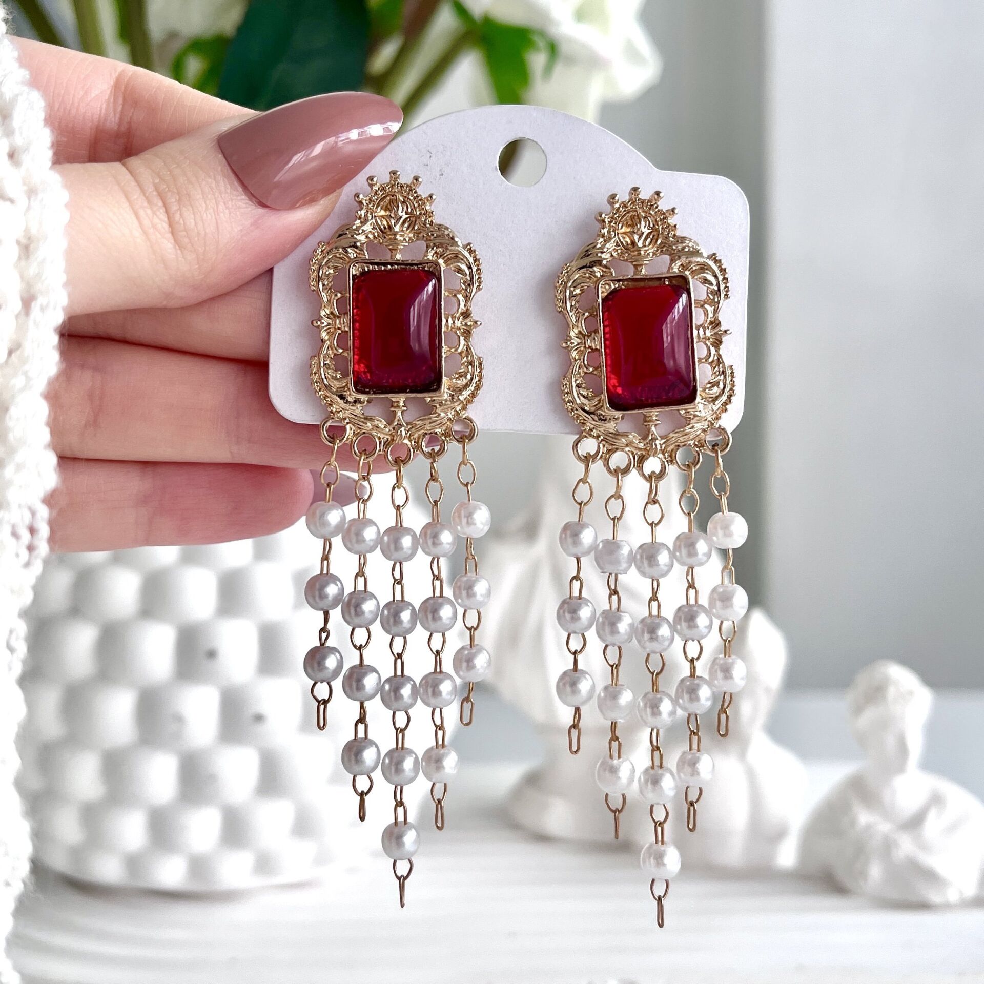 İthal İnci Sallantılı Bordo Küpe