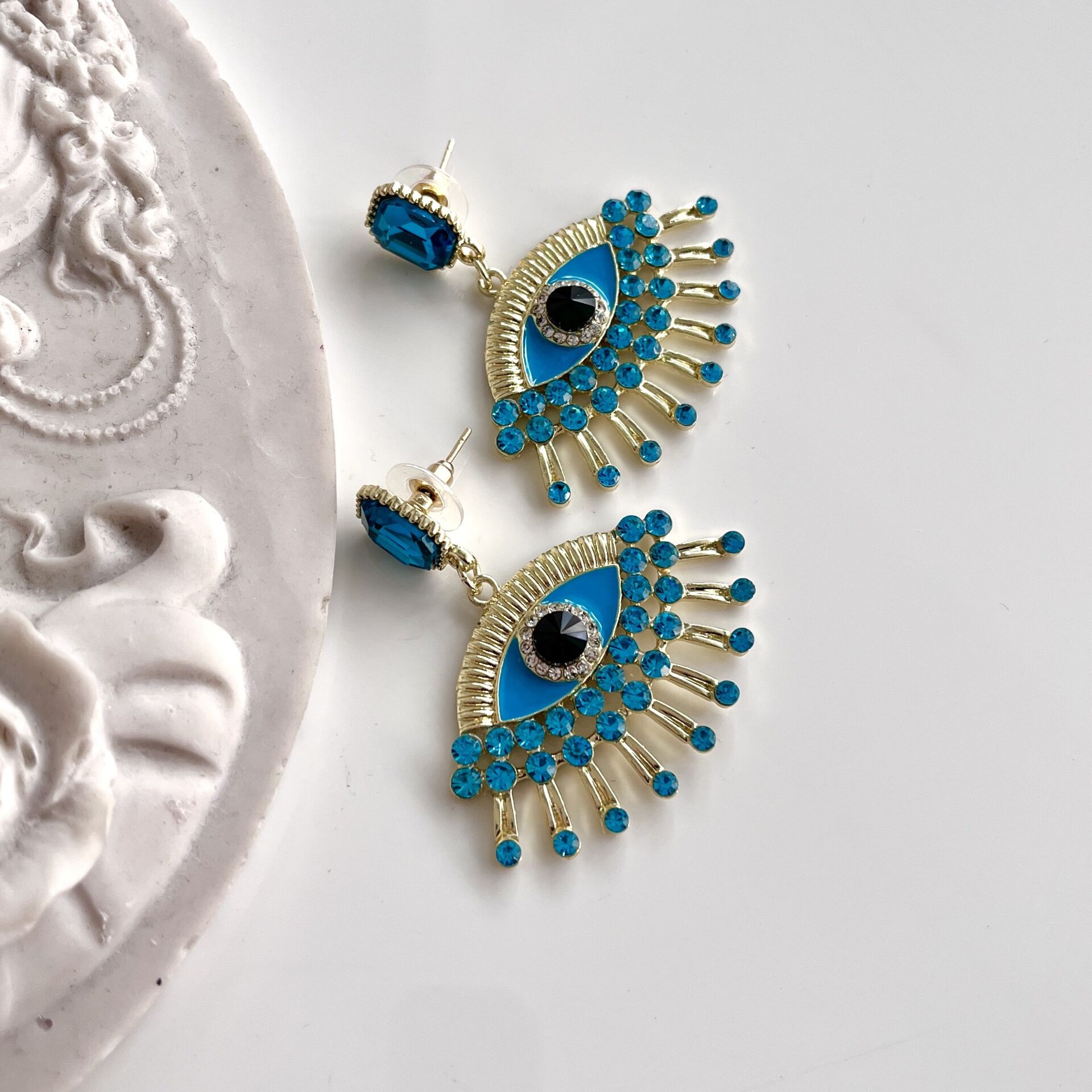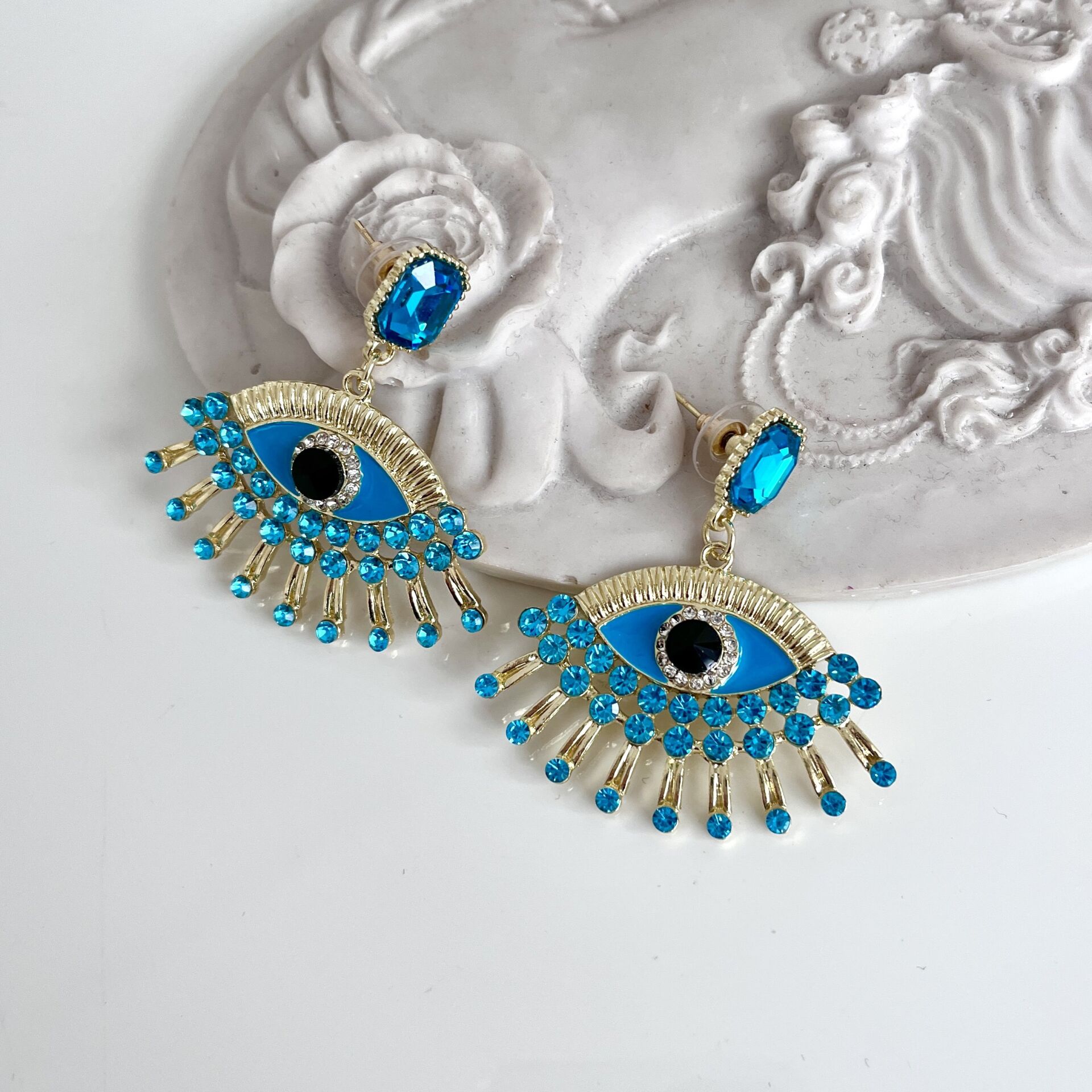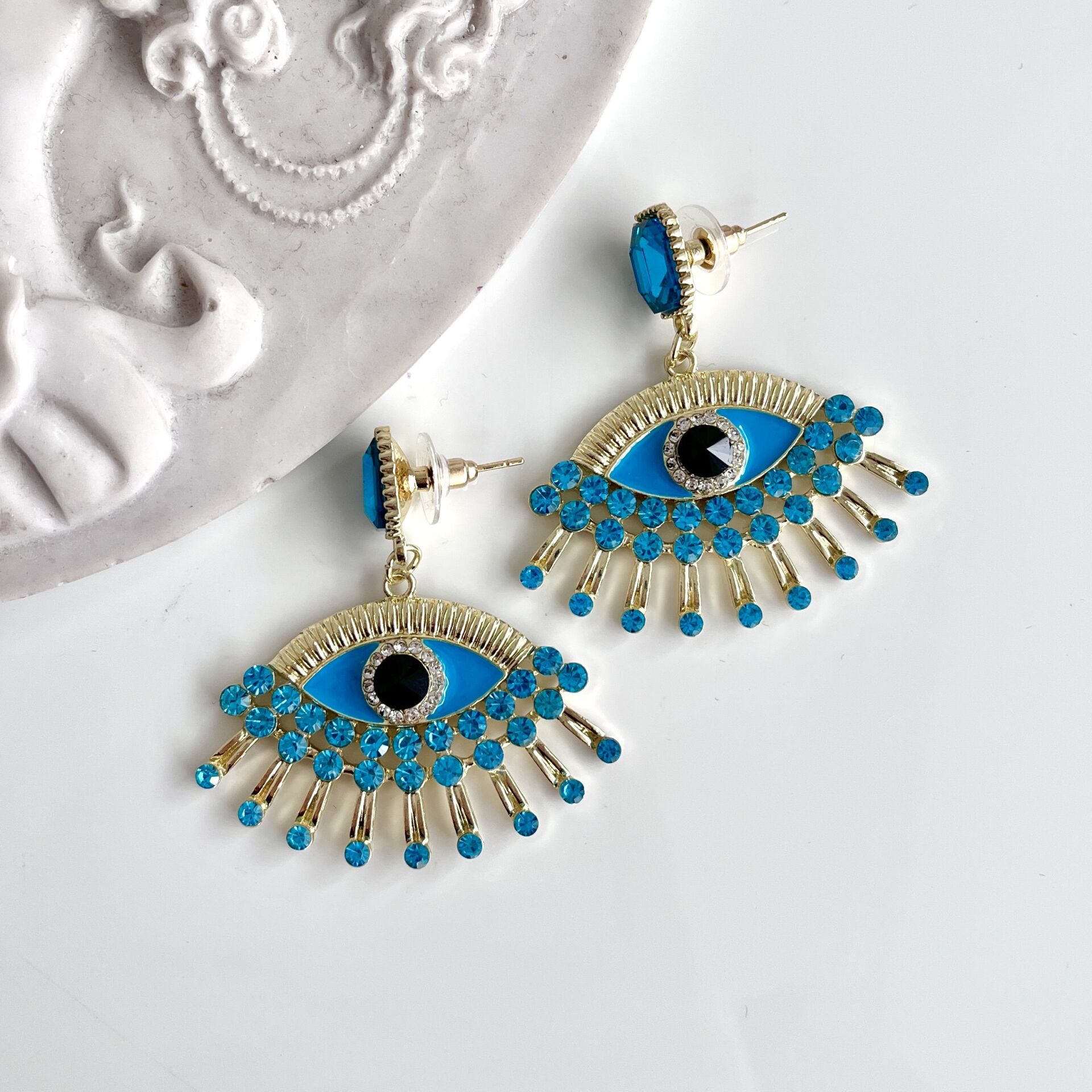 İthal Mavi Taşlı Göz Küpe